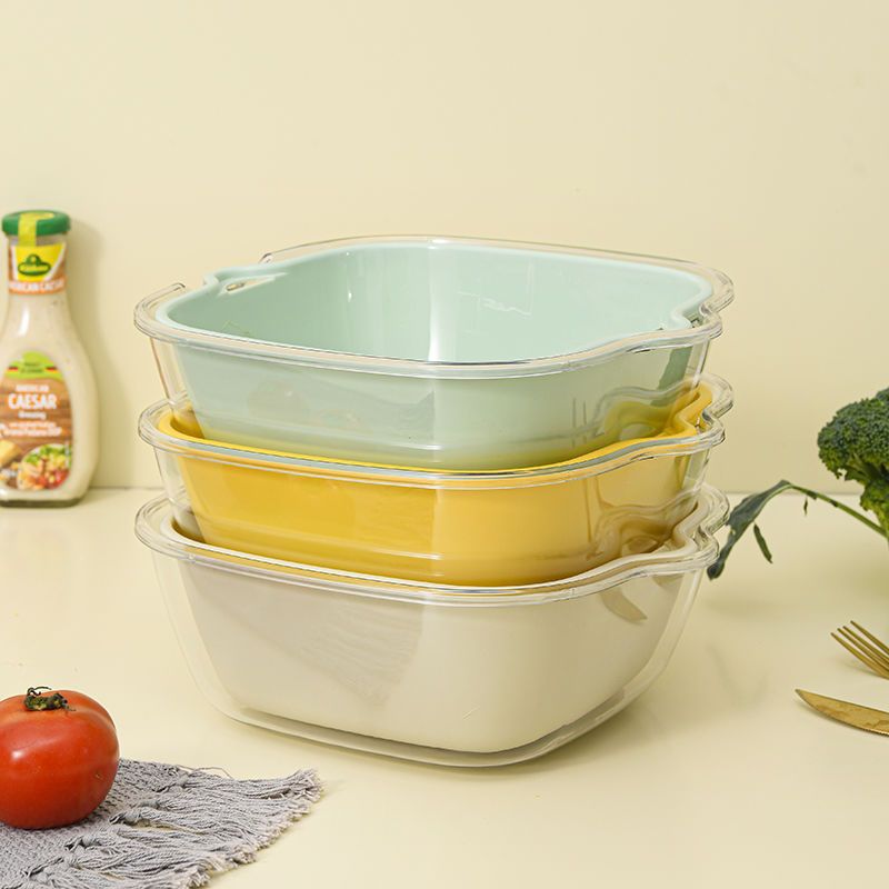 더블 레이어 애완 동물 야채 세척 분지 배수 바구니 주방 인공물 중간 높이 과일 세척을위한 다기능 거실 가정용 과일 플레이트