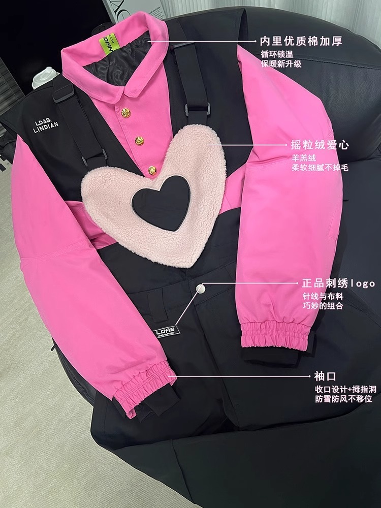 Kasheng 사랑 스키 세트 세트 여성 가을 겨울 2024 새로운 방풍 방수 스티칭 면화 패딩 재킷 오버볼