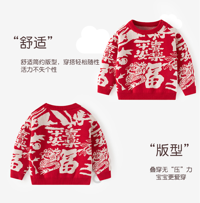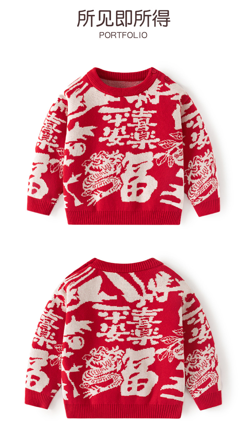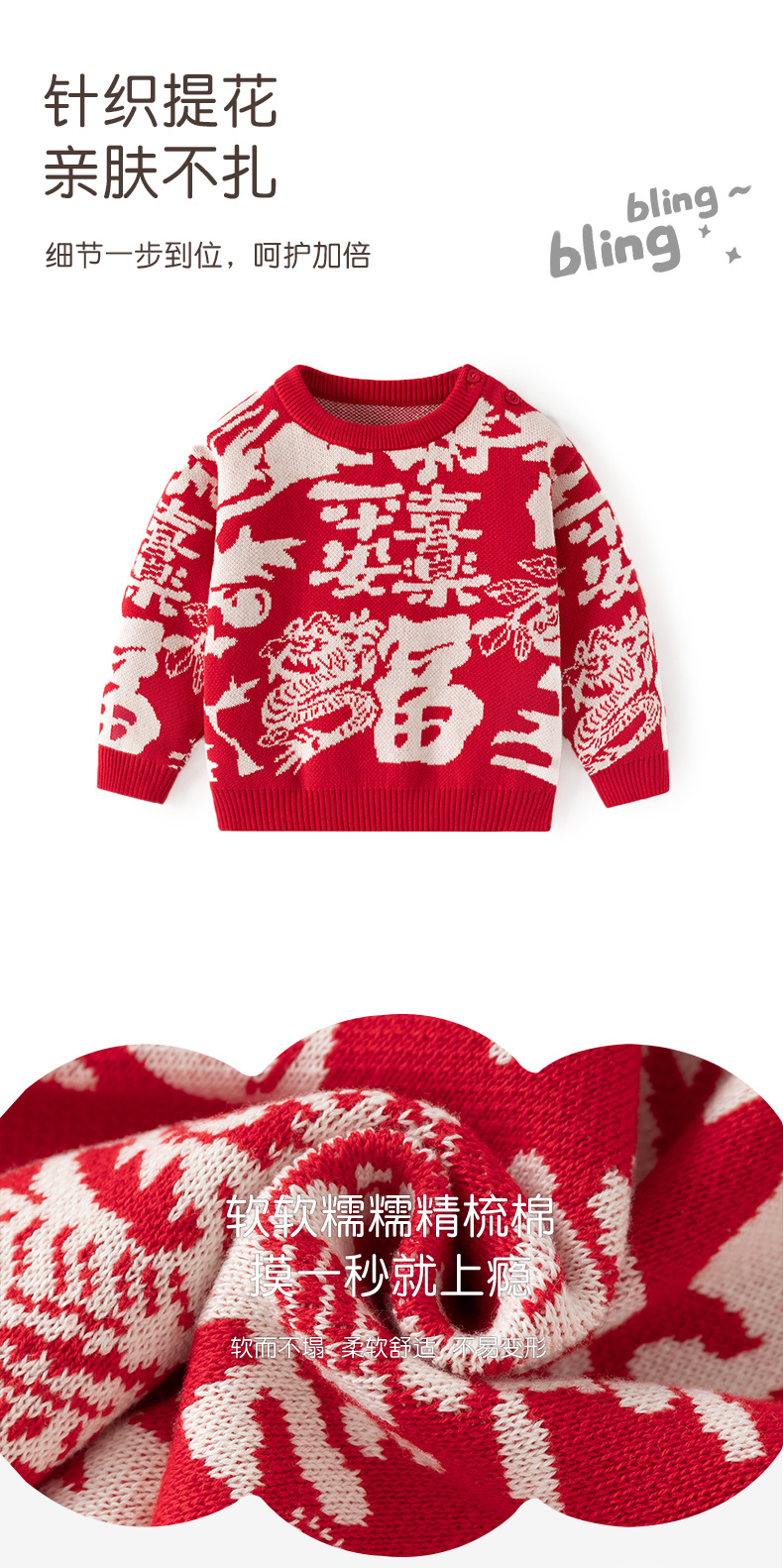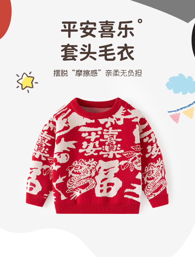 Ping An Joy 중국 스타일 순수한면 어린이 스웨터 카테고리 가을과 겨울 두꺼운 아기 년 착용 니트 베이비 스웨터