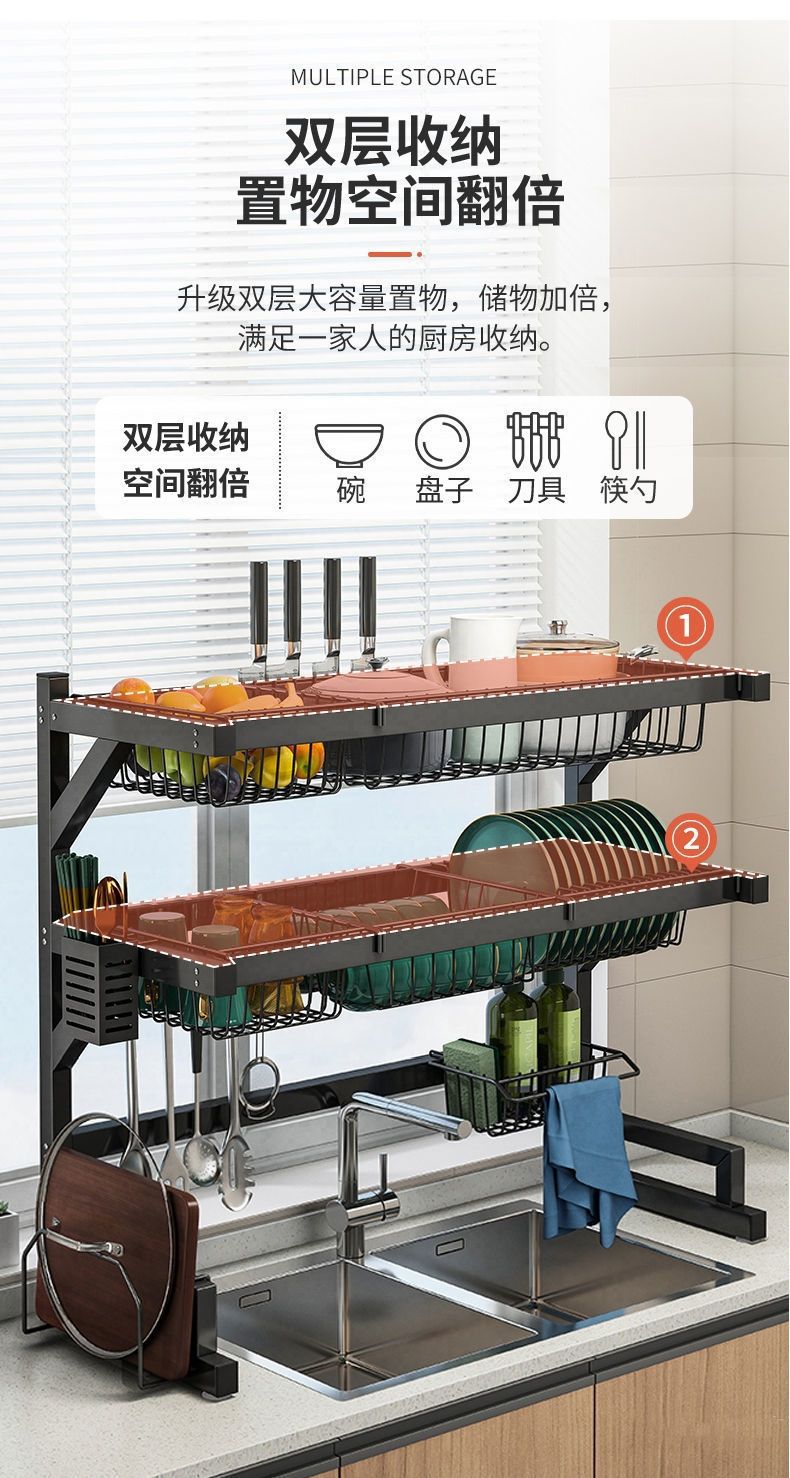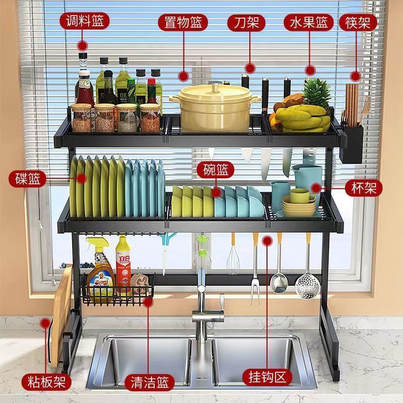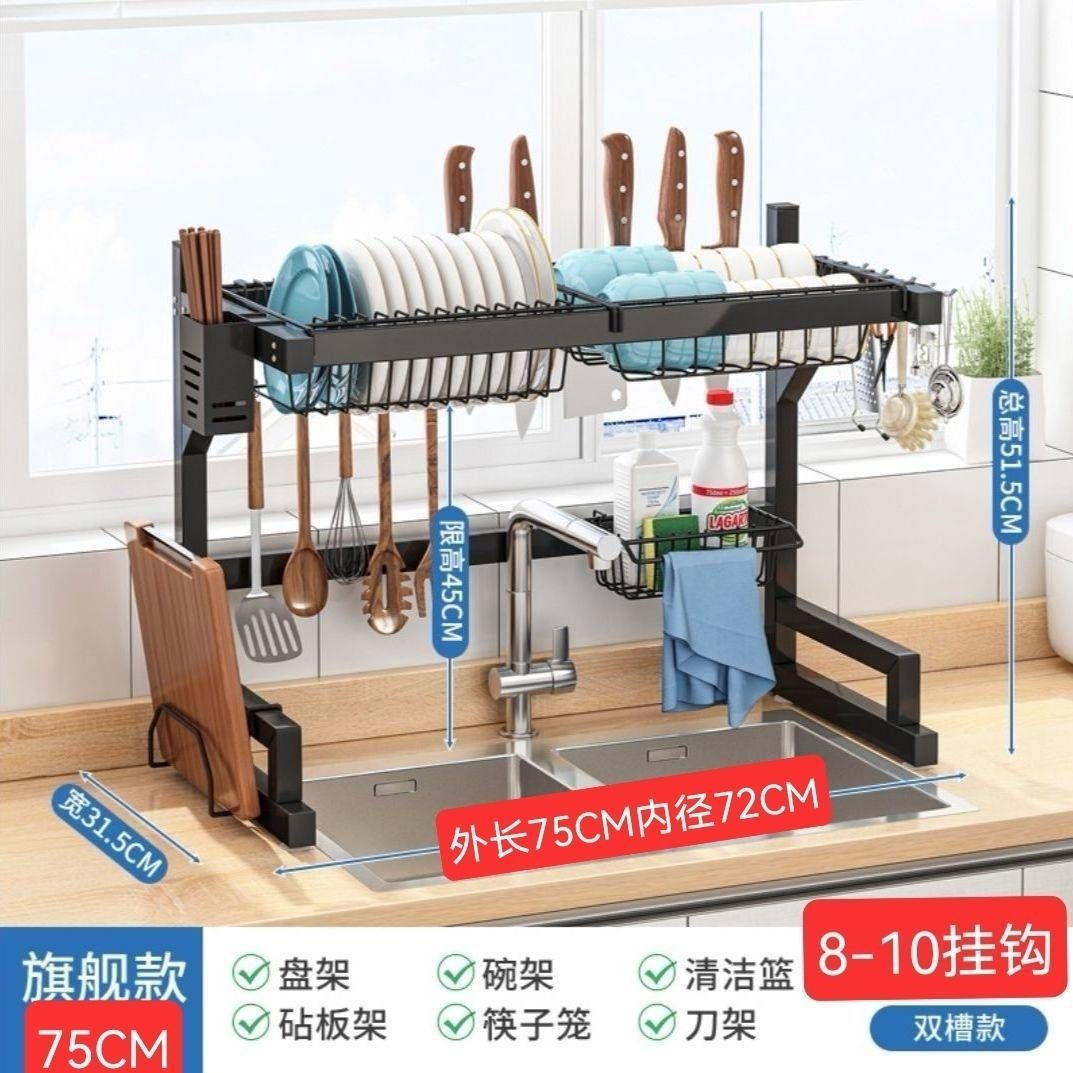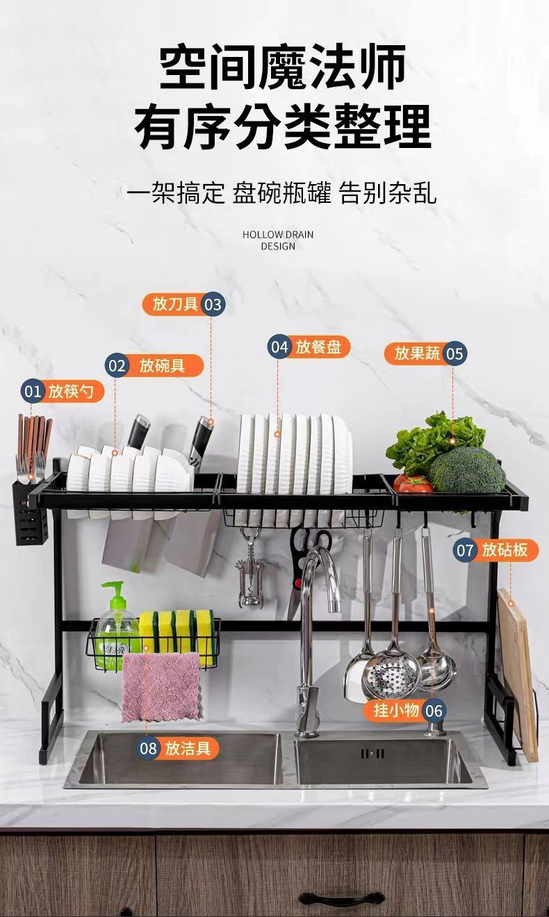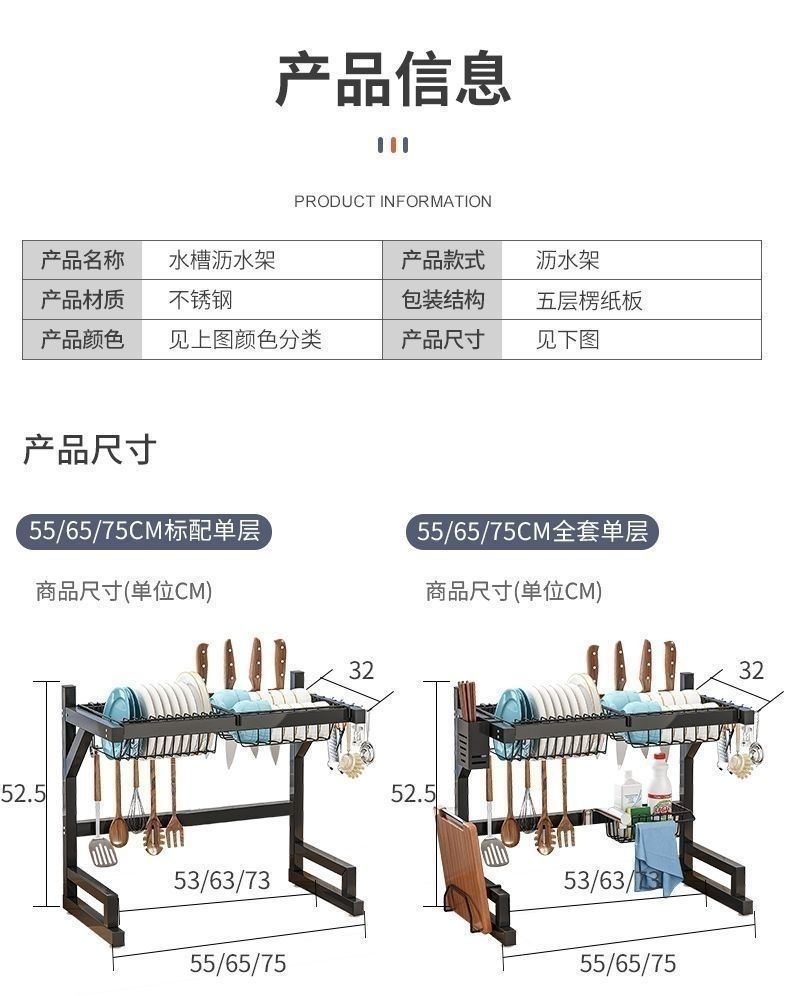 천공되지 않은 다기능 드레인 랙 주방 싱크 스토리지 랙 싱크 싱크 싱크대 조리대 요리 및 접시 저장 중간 높이스토어 가기