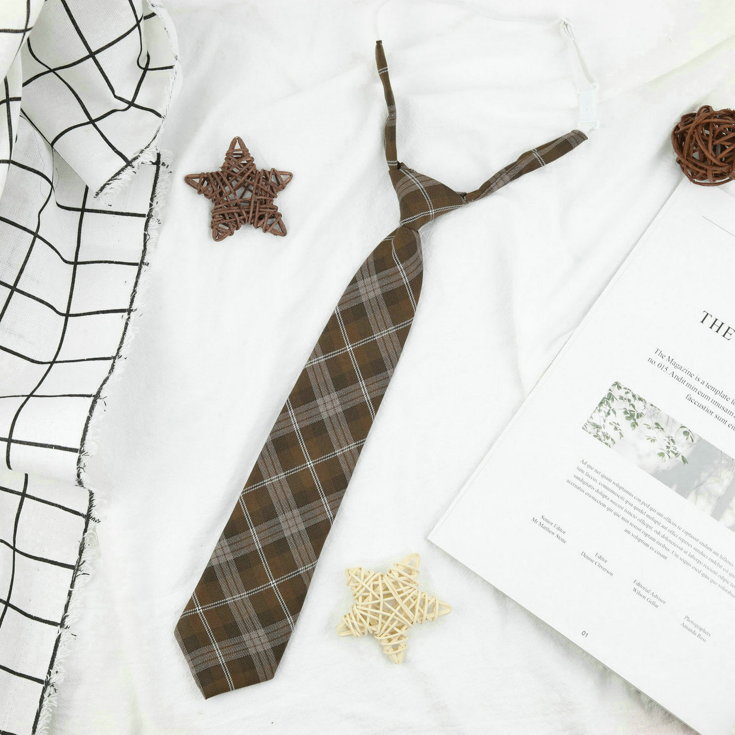 작은 넥타이 여성의 JK 일본식 격자 무늬 짧은 비 게으른 텐돈 넥타이 조정 가능한 학교 유니폼 대학 스타일 학생스토어 가기