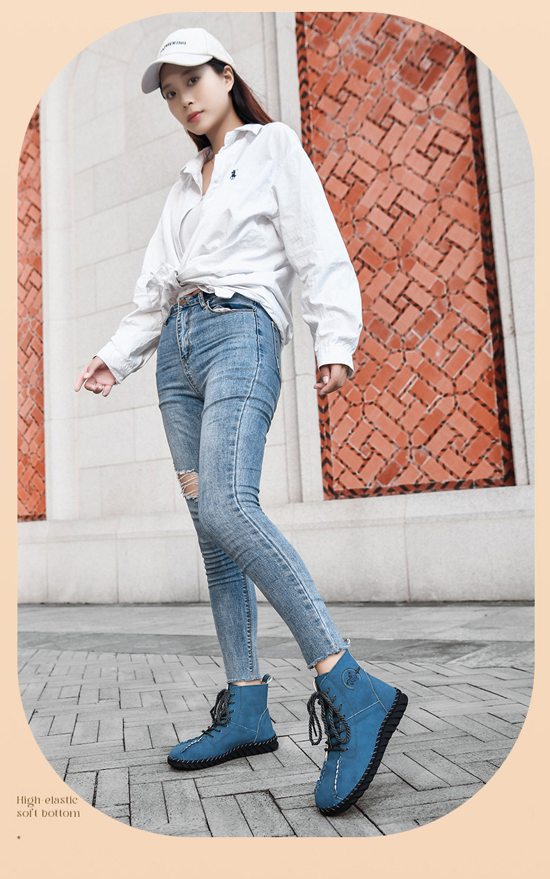 2024 여름 새로운 손으로 꿰매는 여성 신발 크로스 보더 부드러운 가죽 복고풍 레이스 업 발가락 크로스 보더 플러스 사이즈 부츠 도매스토어 가기