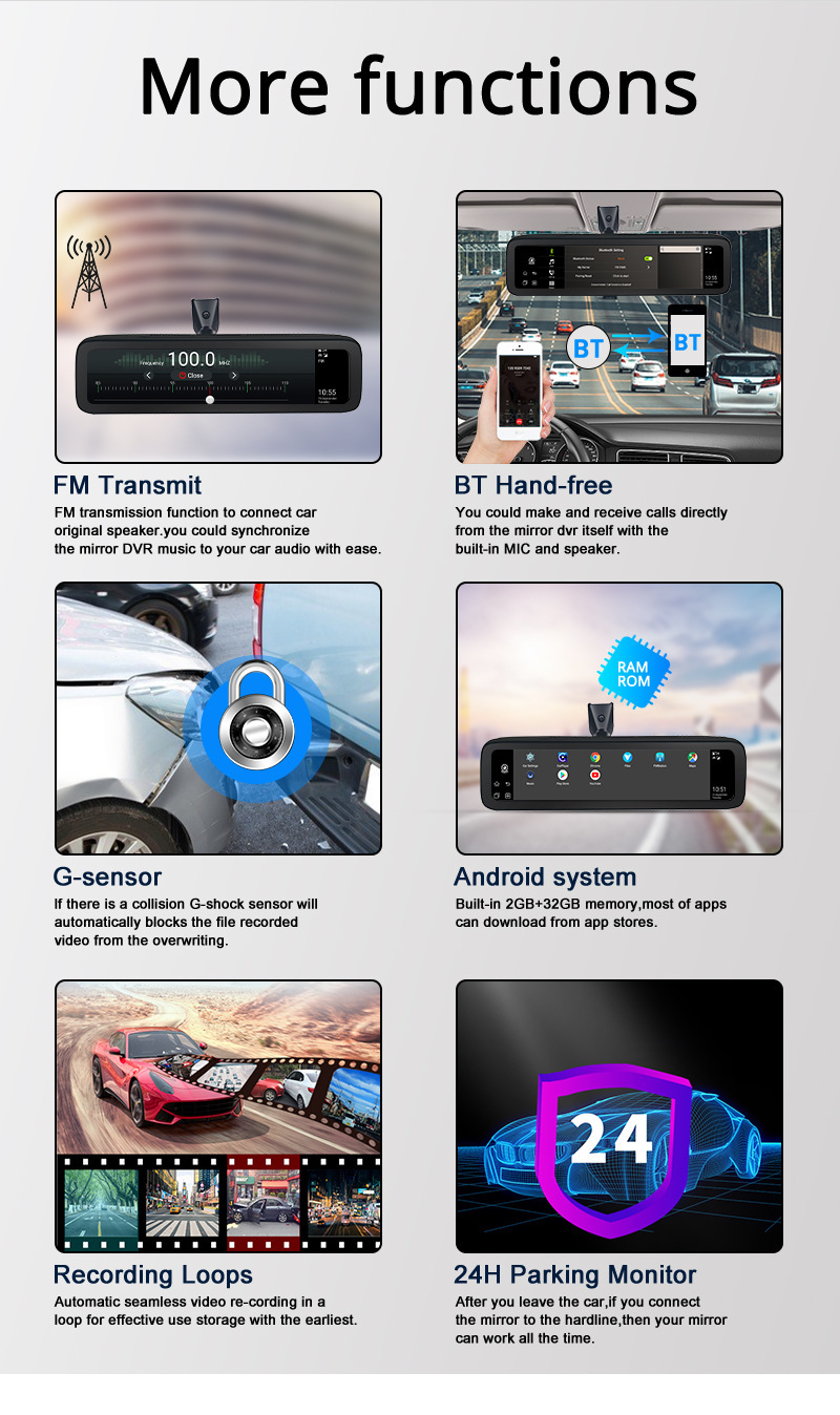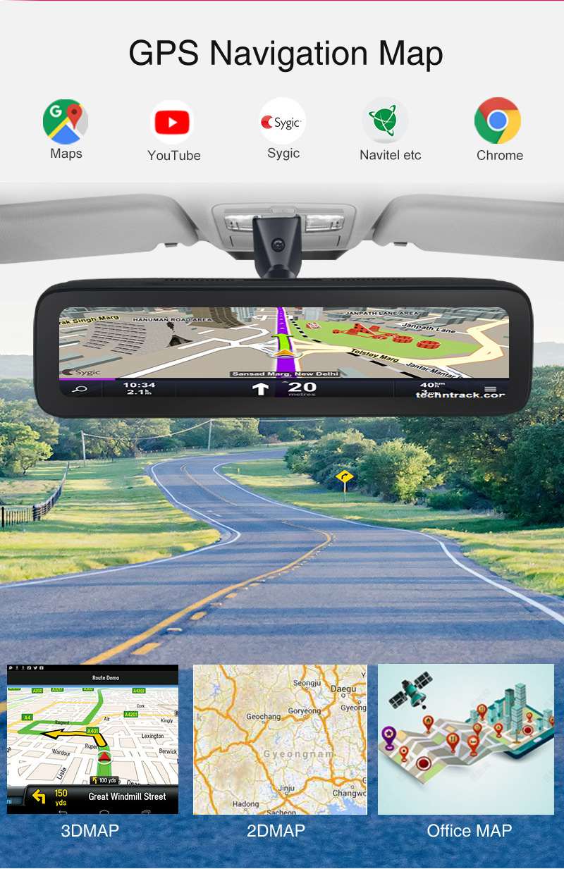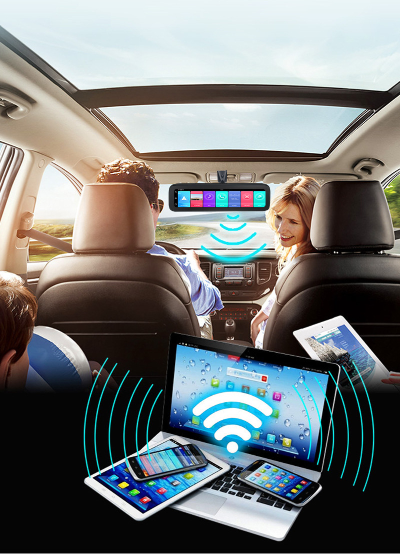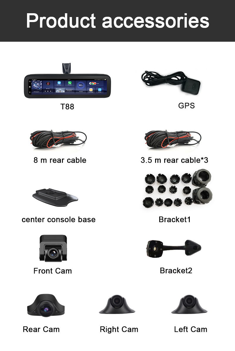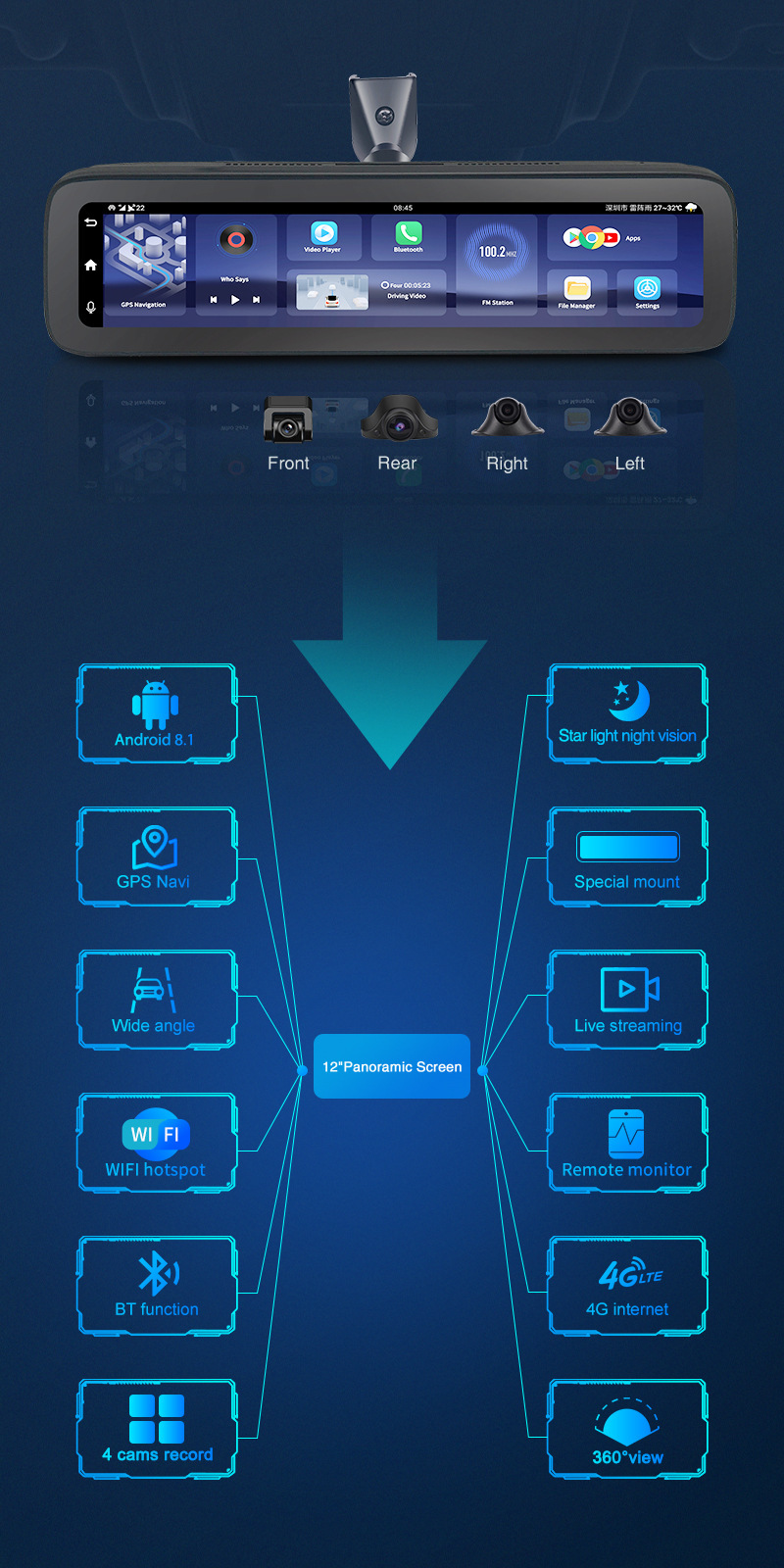 12 인치 4 기록 파노라마 주행 레코더 4G 안드로이드 10 내비게이션 블루투스 원격 모니터링 4-기록 동시 디스플레이