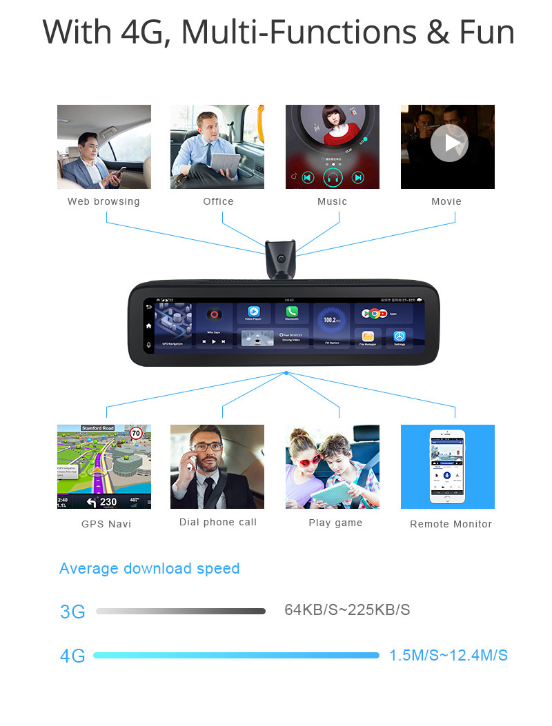 12 인치 4 기록 파노라마 주행 레코더 4G 안드로이드 10 내비게이션 블루투스 원격 모니터링 4-기록 동시 디스플레이스토어 가기