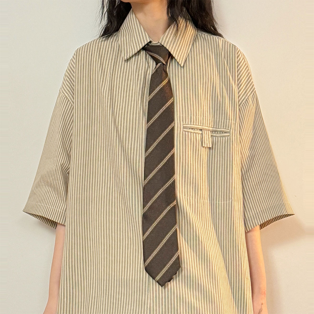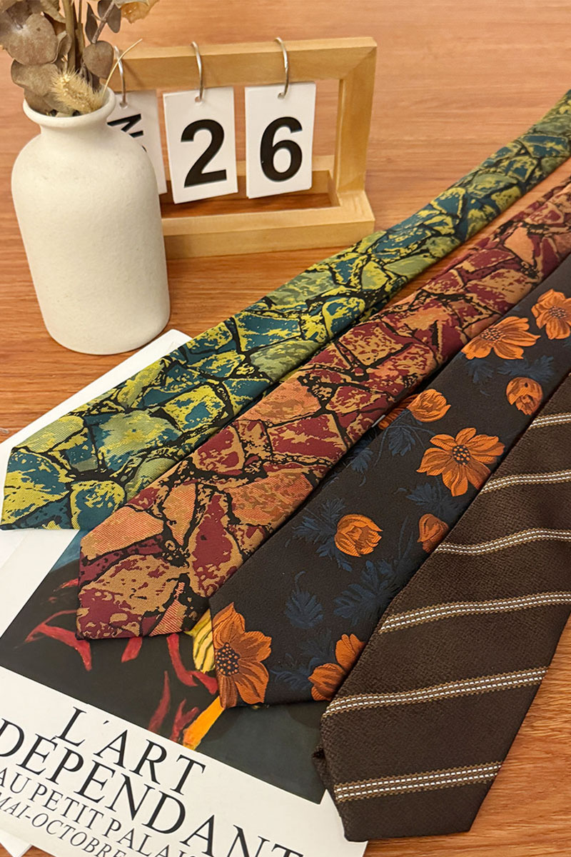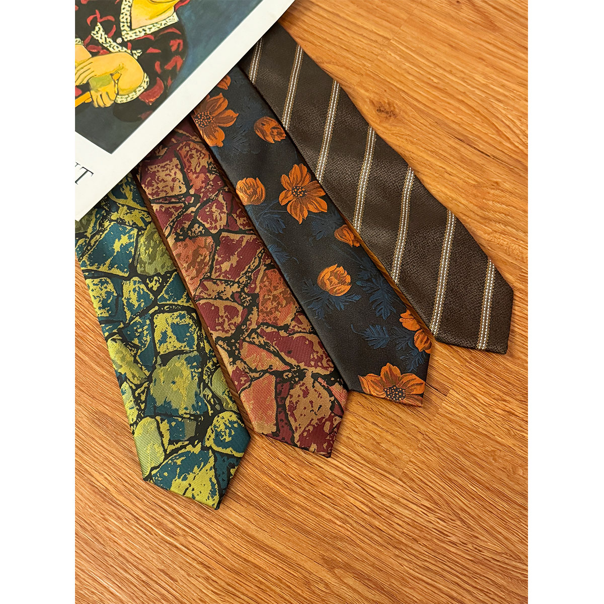 ECOK2024 새로운 미국 스타일 레트로 대학 스타일 패션 브랜드 전체 인쇄 스트라이프 모든 경기 넥타이 남녀 커플