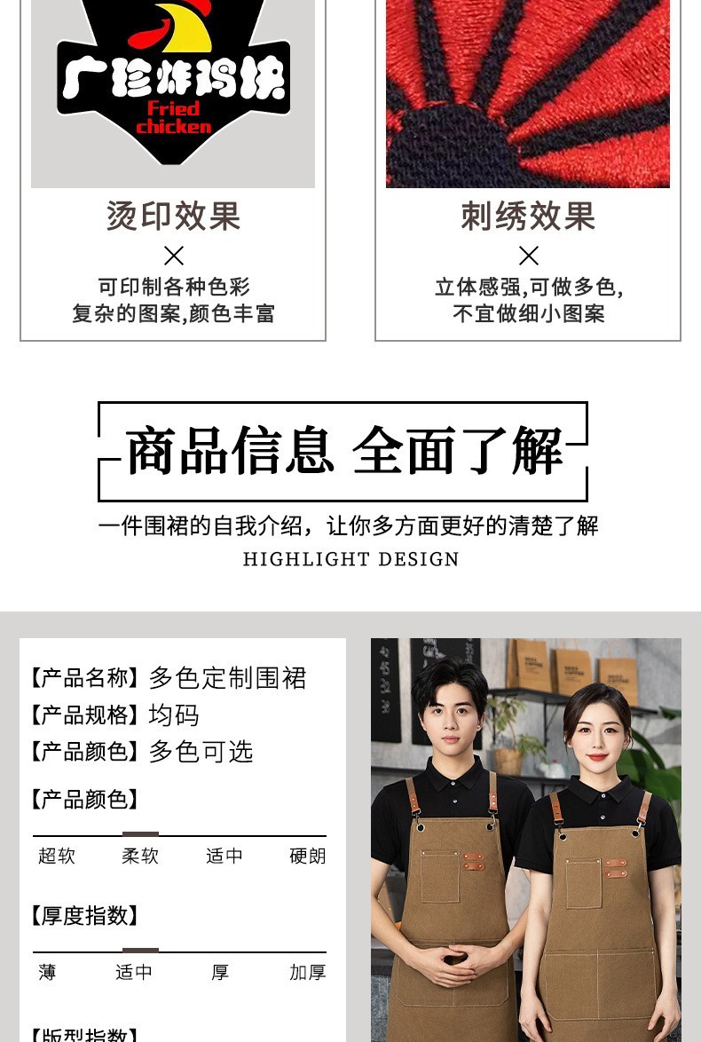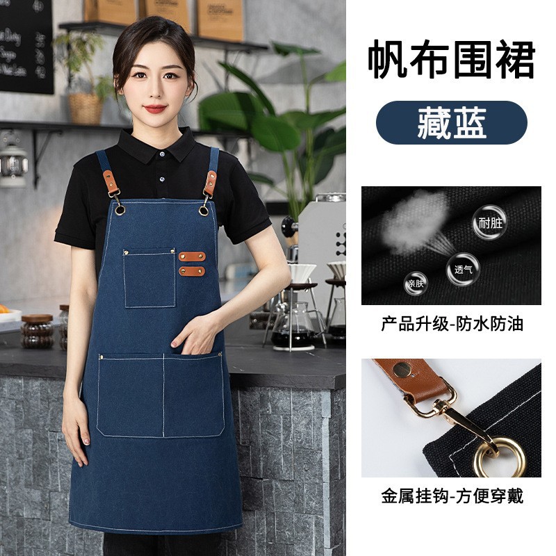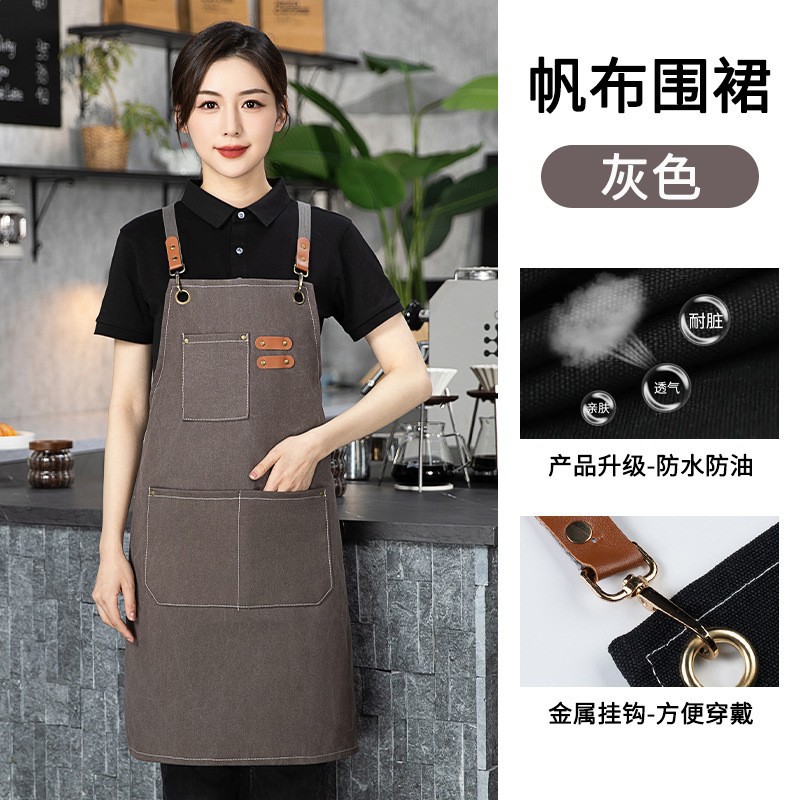 도매 기름 방지 캔버스 앞치마 홈 우유 차 커피 숍 주방 원예 작업복 얼룩 방지 인쇄