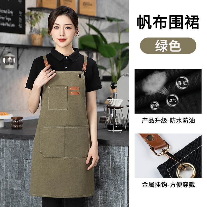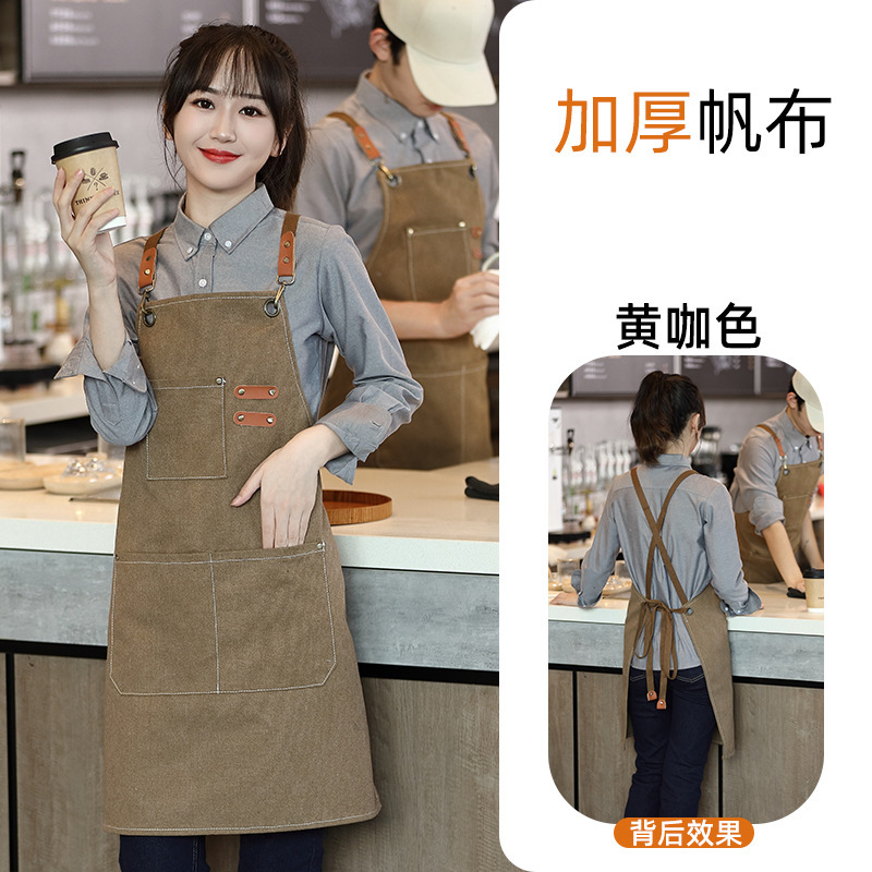 도매 기름 방지 캔버스 앞치마 홈 우유 차 커피 숍 주방 원예 작업복 얼룩 방지 인쇄스토어 가기