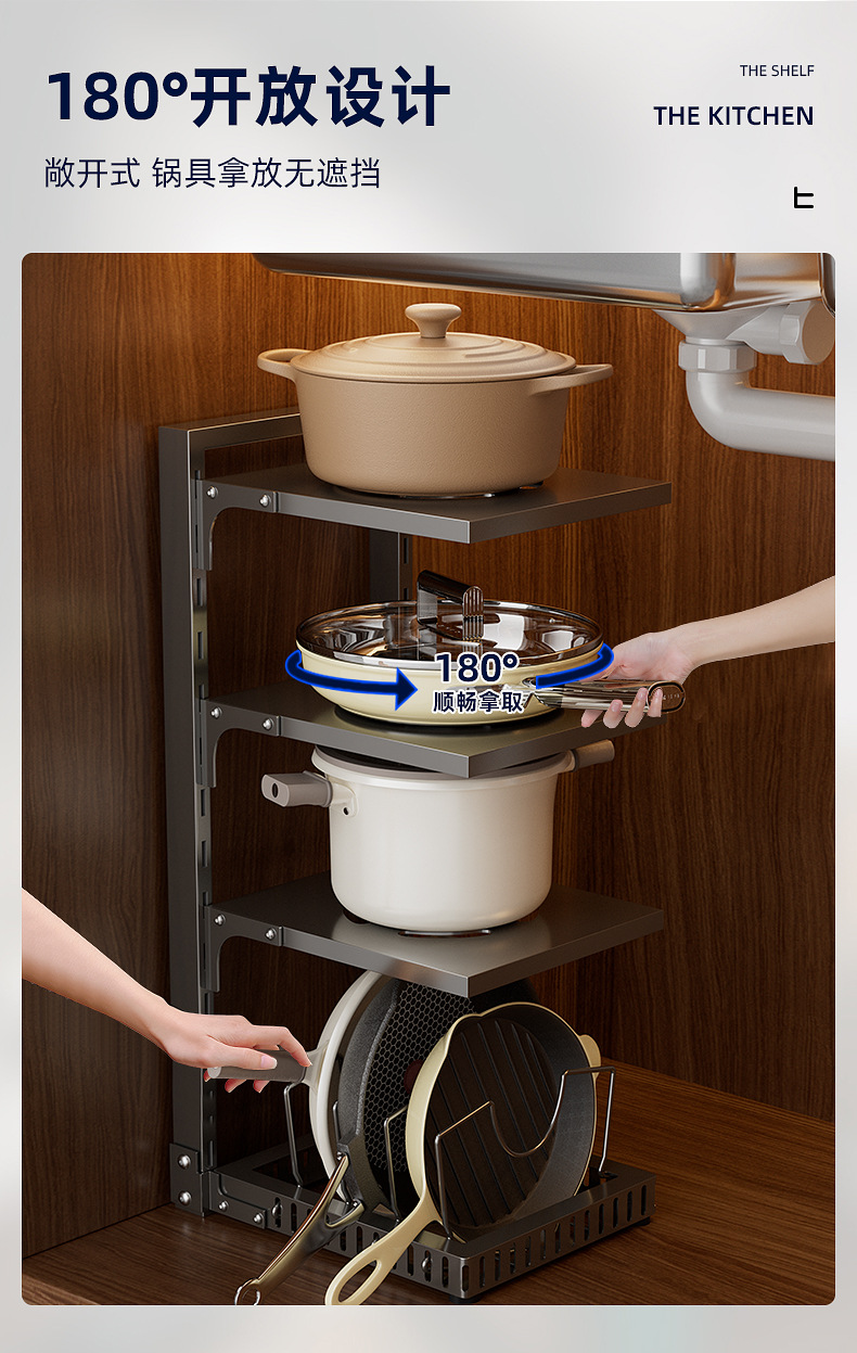 주방 다기능 스토리지 랙 주방 캐비닛 쿠커 멀티 레이어 스토리지 랙 조정 가능한 낮은 싱크 레이어 레이어 스토리지 랙