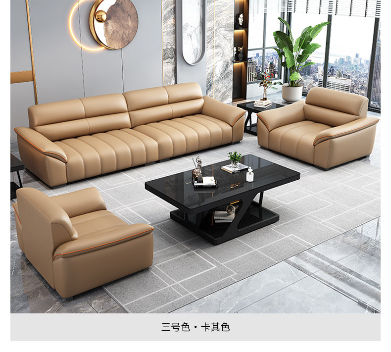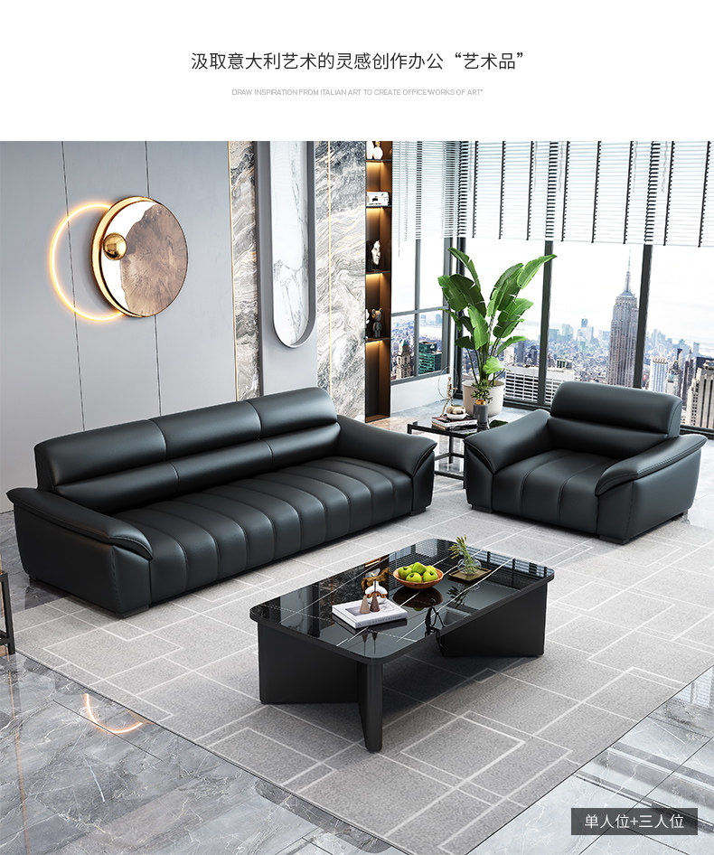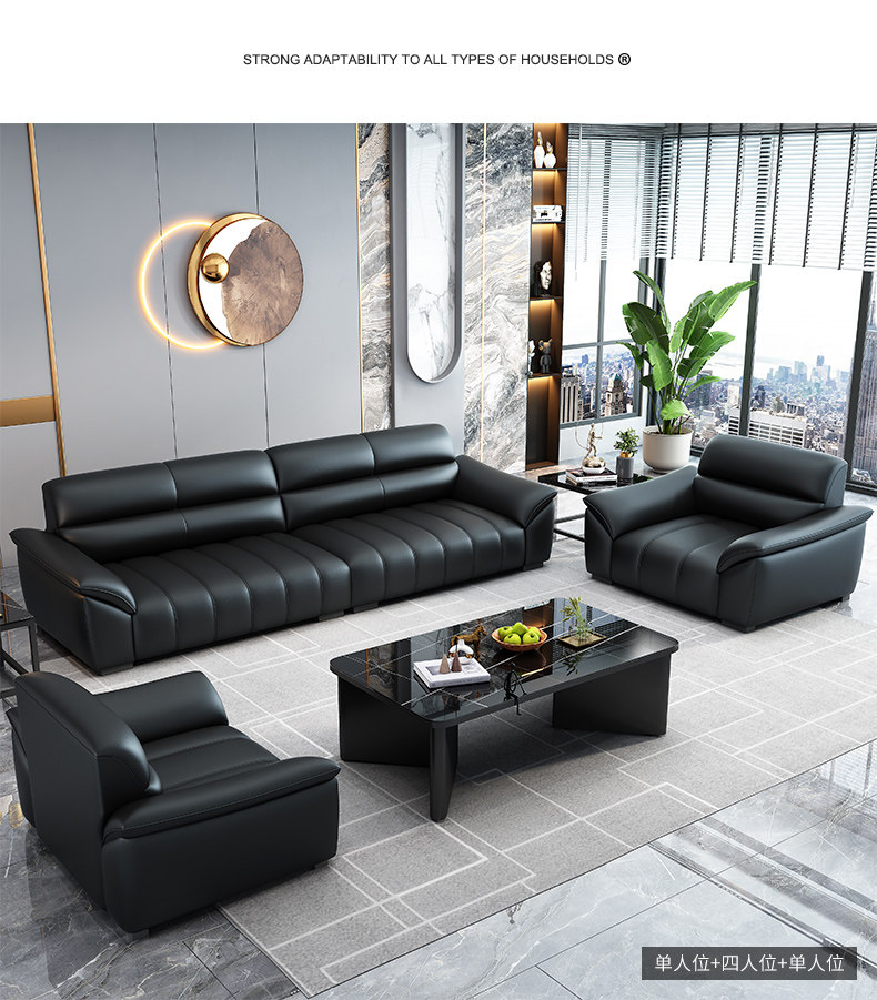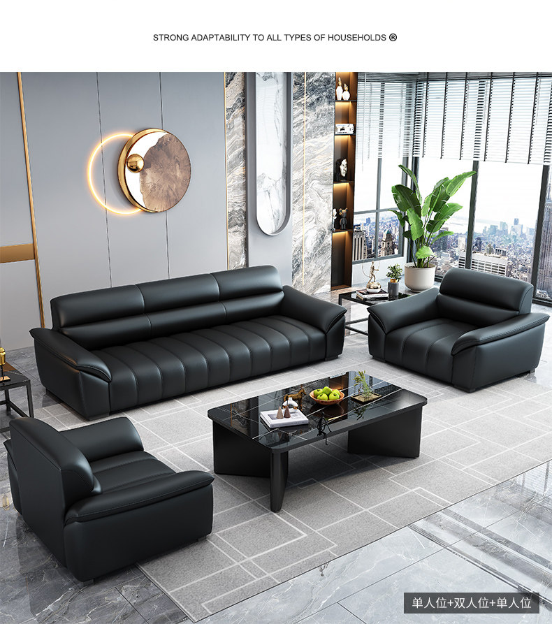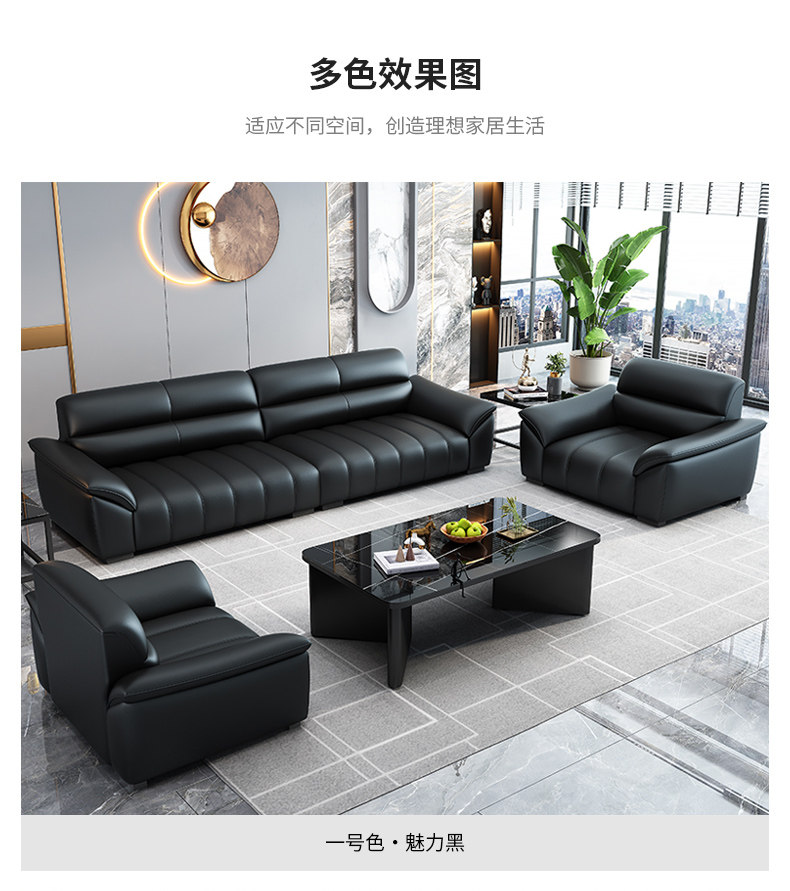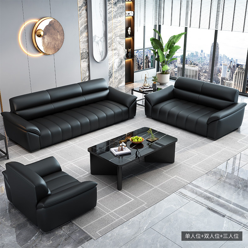 새로운 가죽 사무실 소파 현대 간단한 회의 3 인 사무실 비즈니스 리셉션 조합 커피 테이블 세트