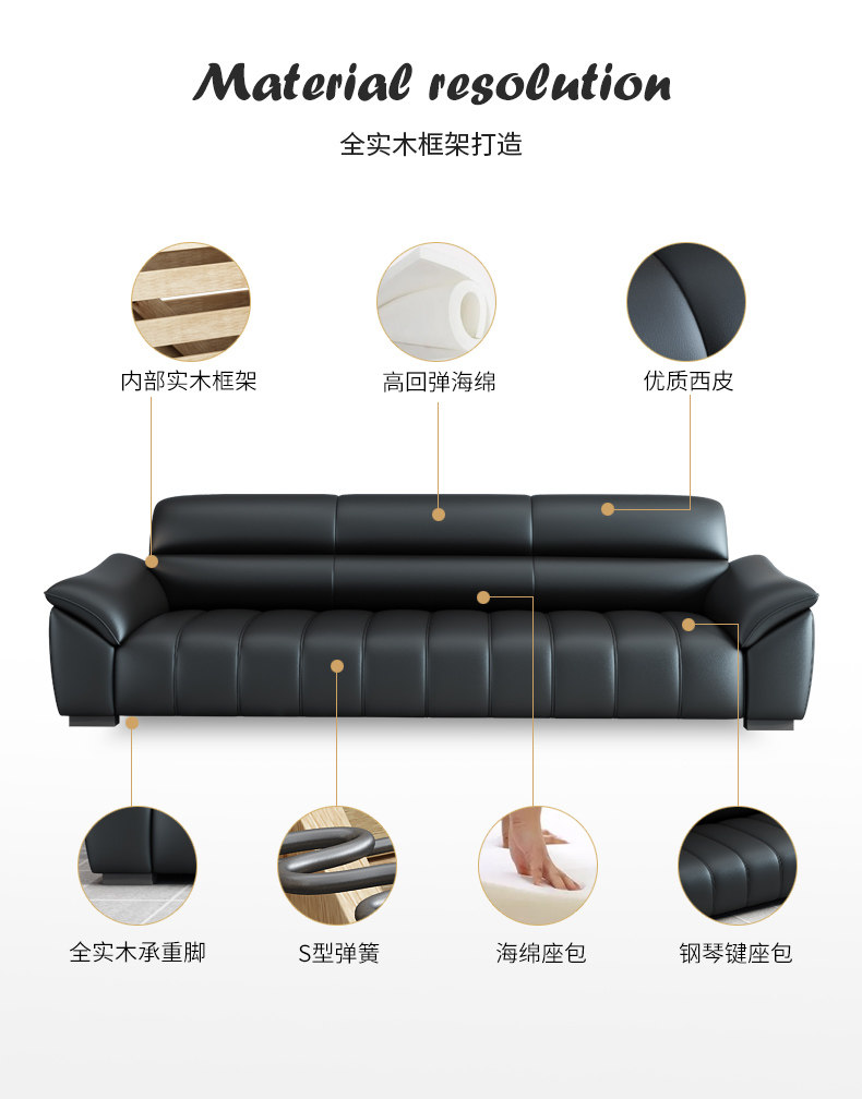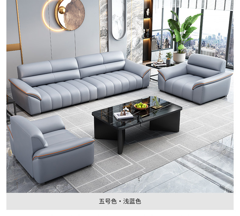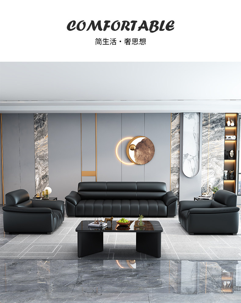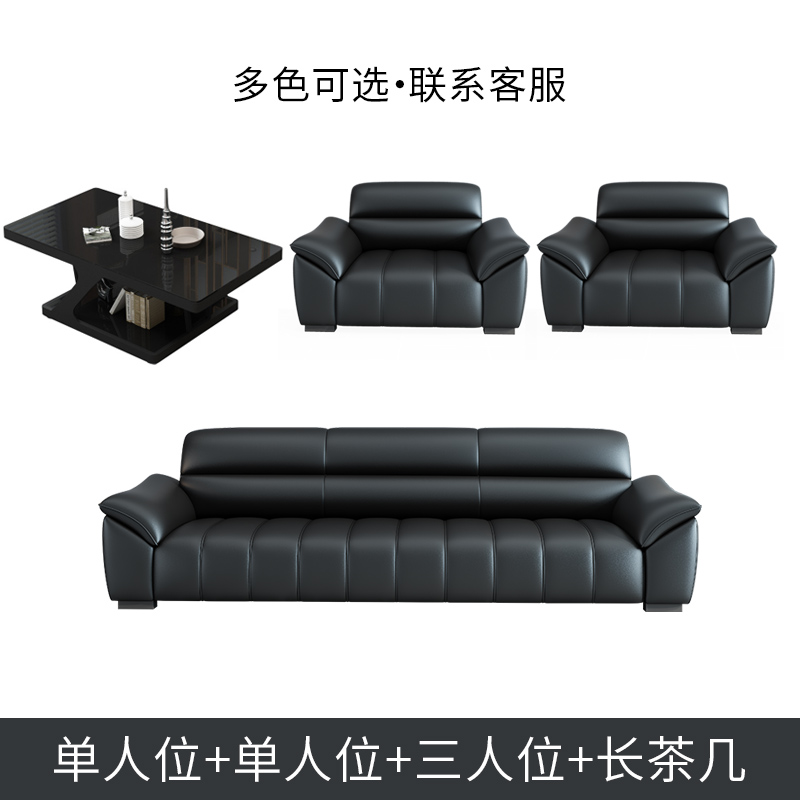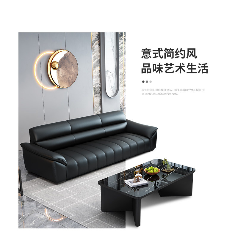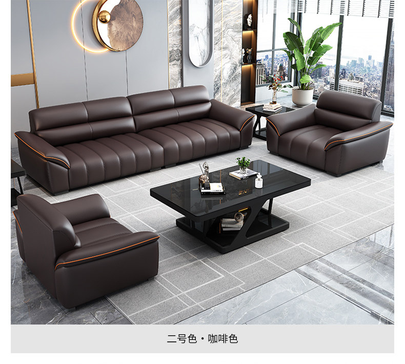 새로운 가죽 사무실 소파 현대 간단한 회의 3 인 사무실 비즈니스 리셉션 조합 커피 테이블 세트