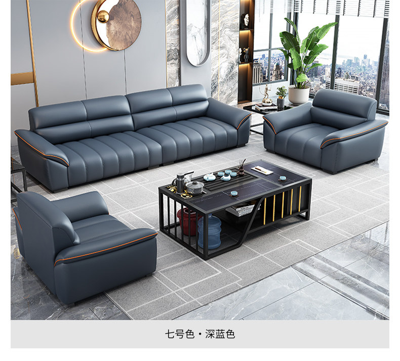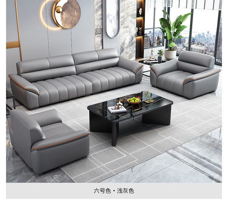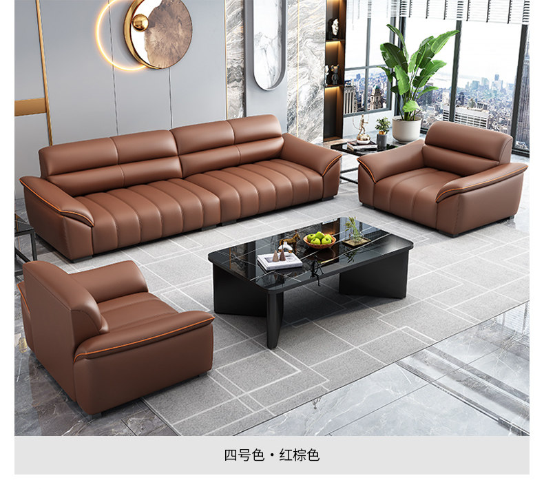 새로운 가죽 사무실 소파 현대 간단한 회의 3 인 사무실 비즈니스 리셉션 조합 커피 테이블 세트스토어 가기