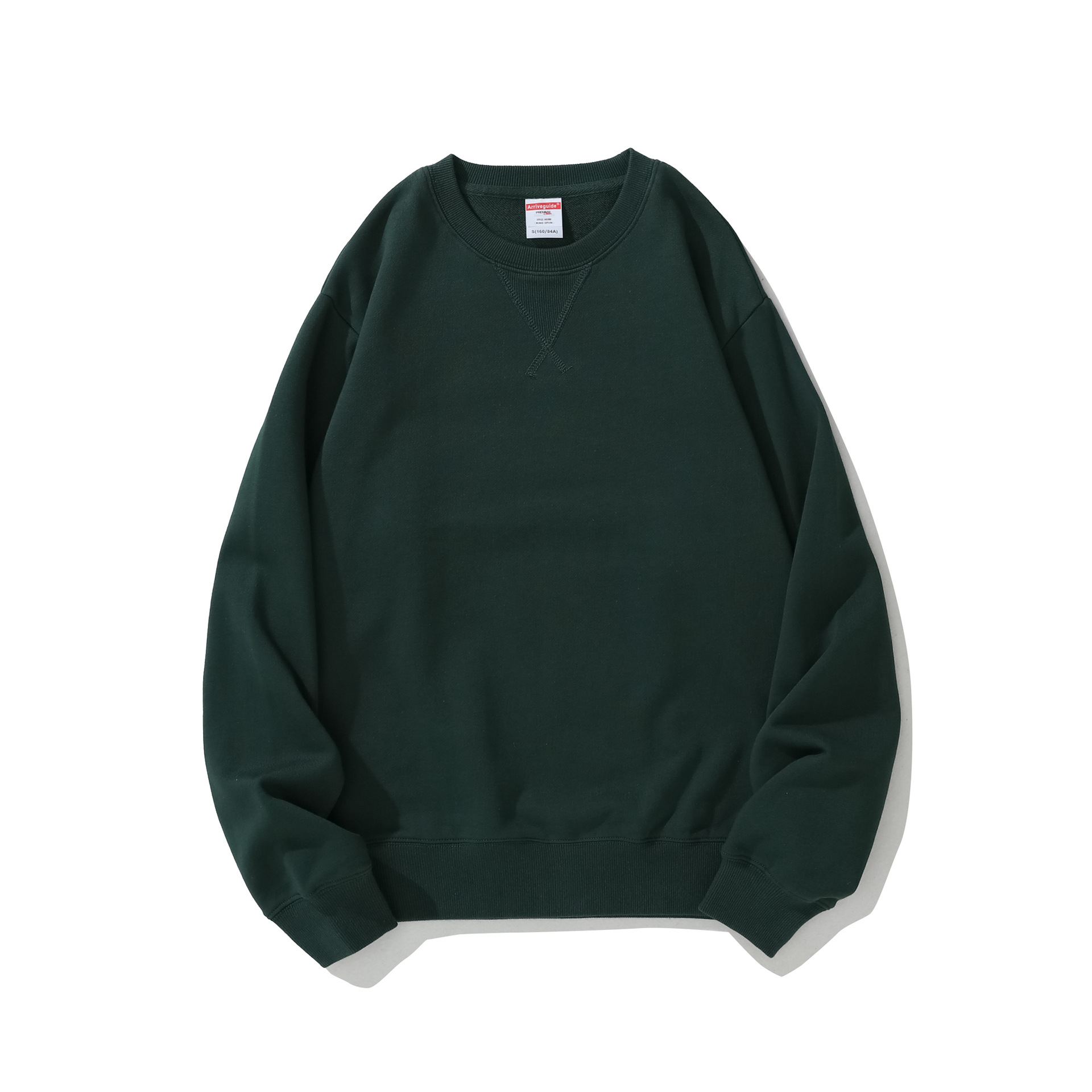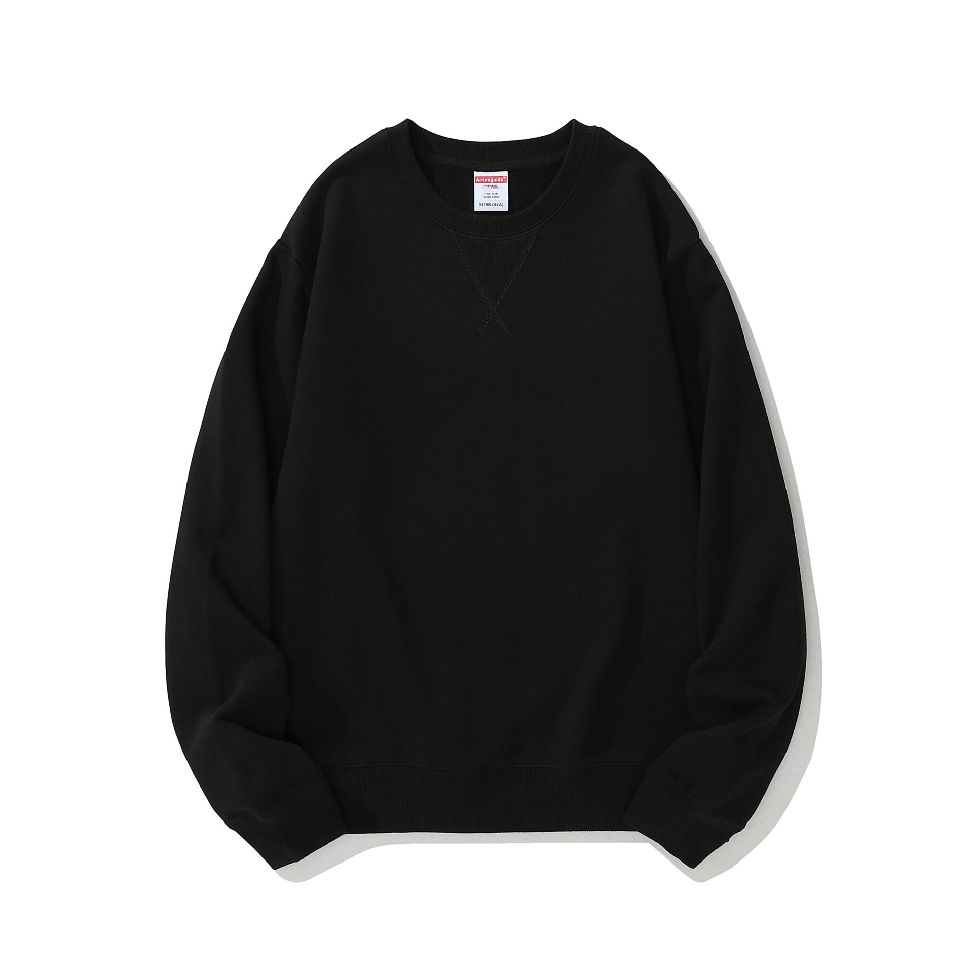 봄철 순면 헤비웨이트 AG380g 모직 테리 원컬러 긴팔 라운드넥 스웨트셔츠 남성용 루즈핏 아메리칸 스타일 트렌디 브랜드 프린팅스토어 가기