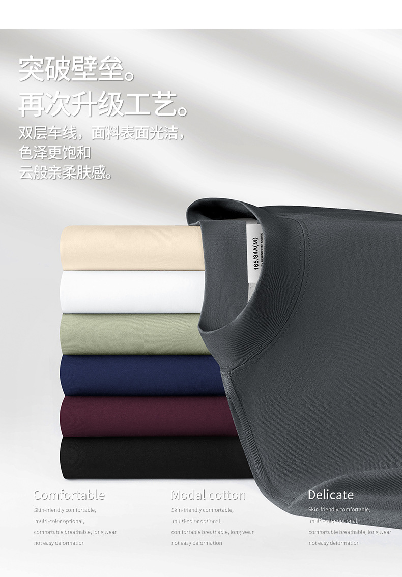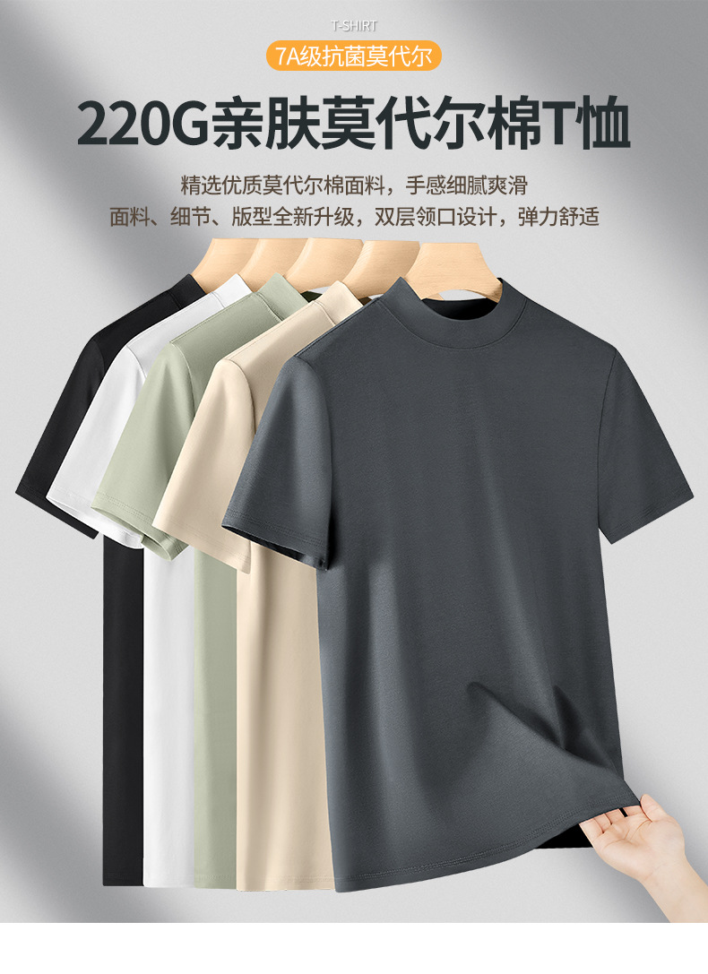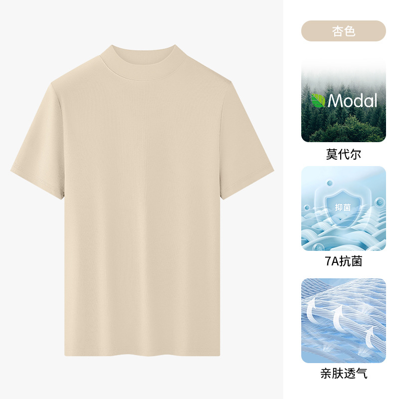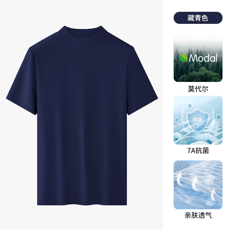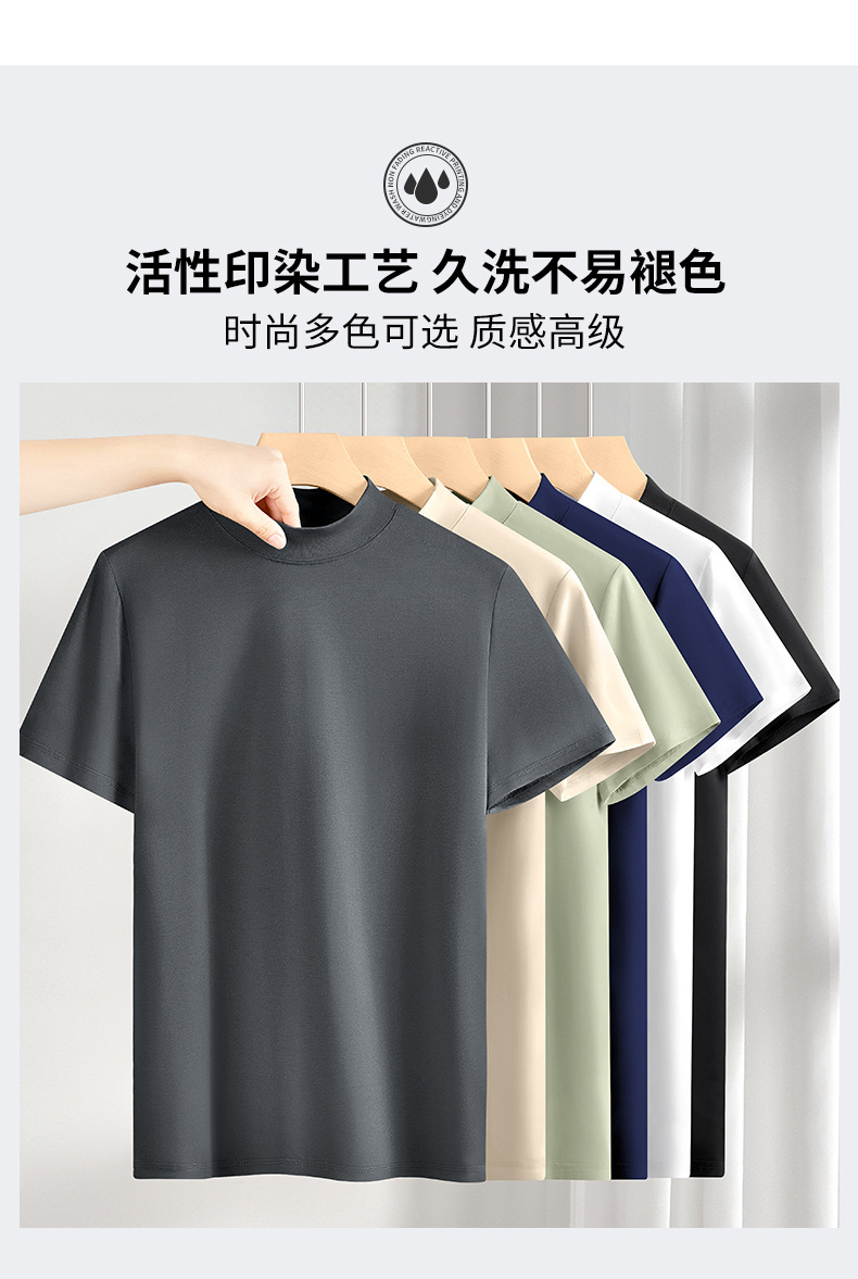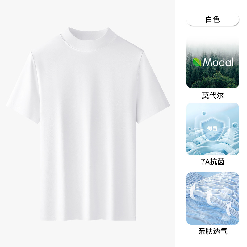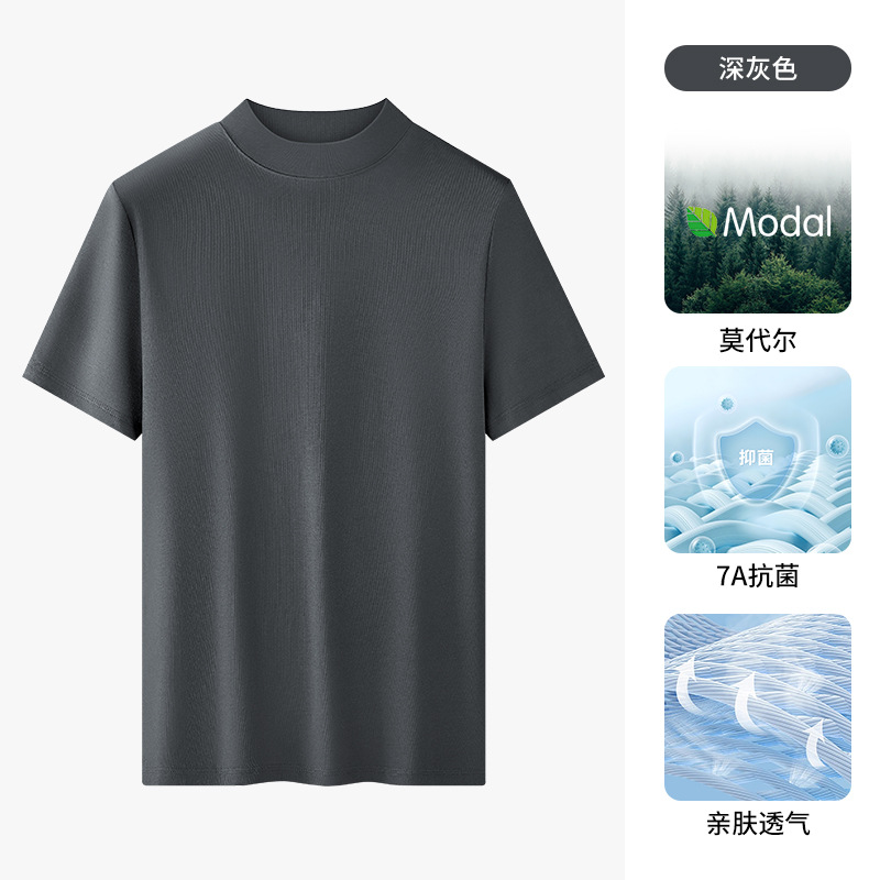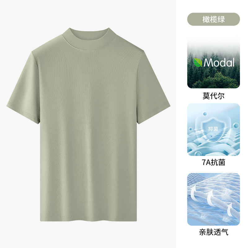 모달 하프 터틀넥 반팔 남성 티셔츠 머서라이즈 코튼 반팔 신형 항균 바닥 셔츠 남성용 미드 칼라 봄 여름 티셔츠