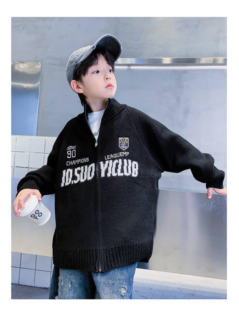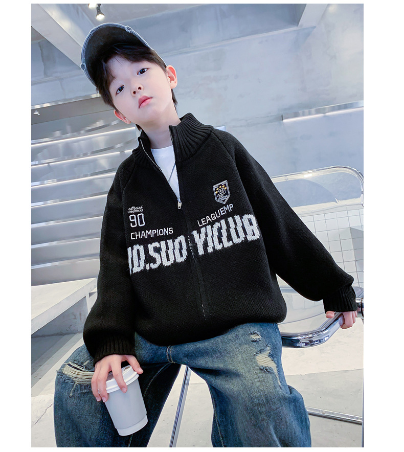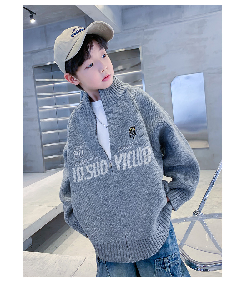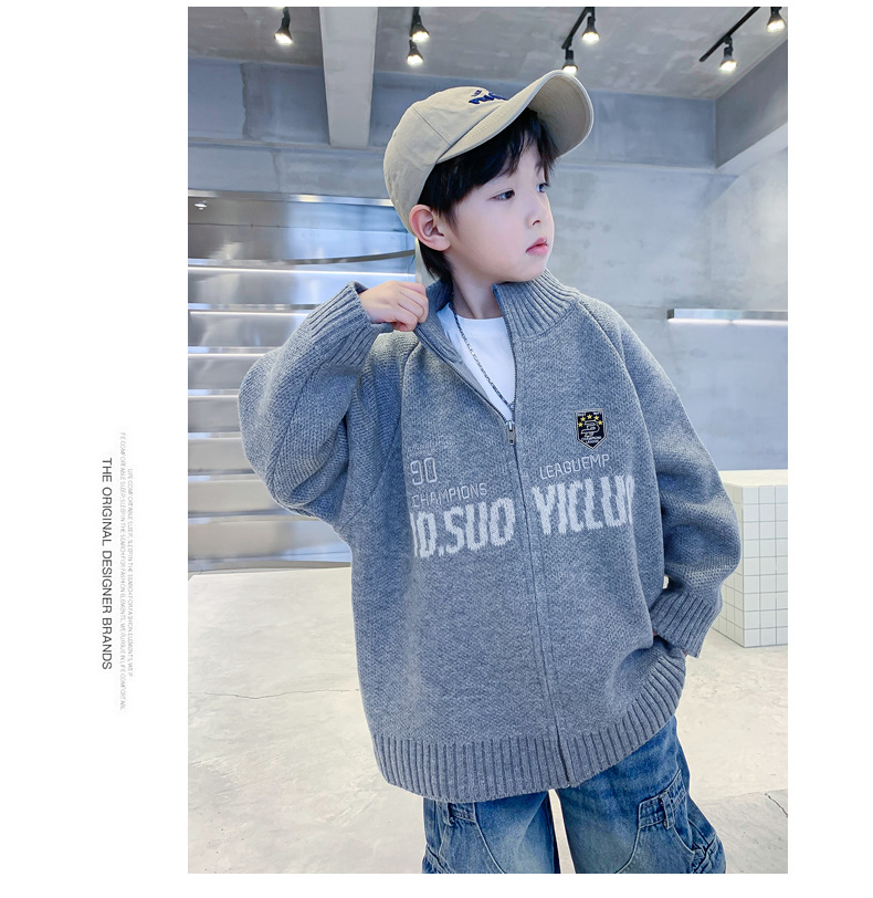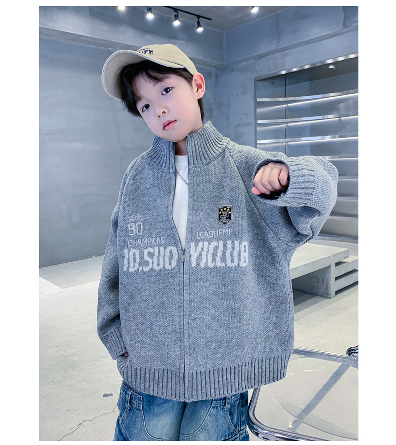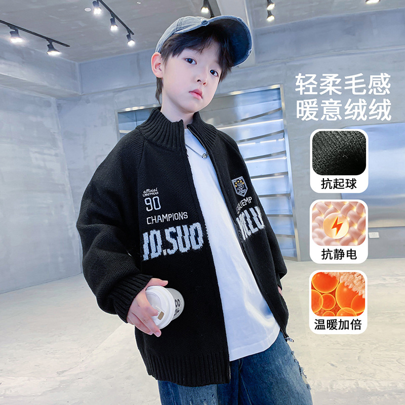 남학생 스웨터 카디건 가을과 겨울 2024 새로운 한국 어린이 스웨터 프라이드 스트리트 보이 코트 두꺼운 러피안 잘 생긴 스타일스토어 가기
