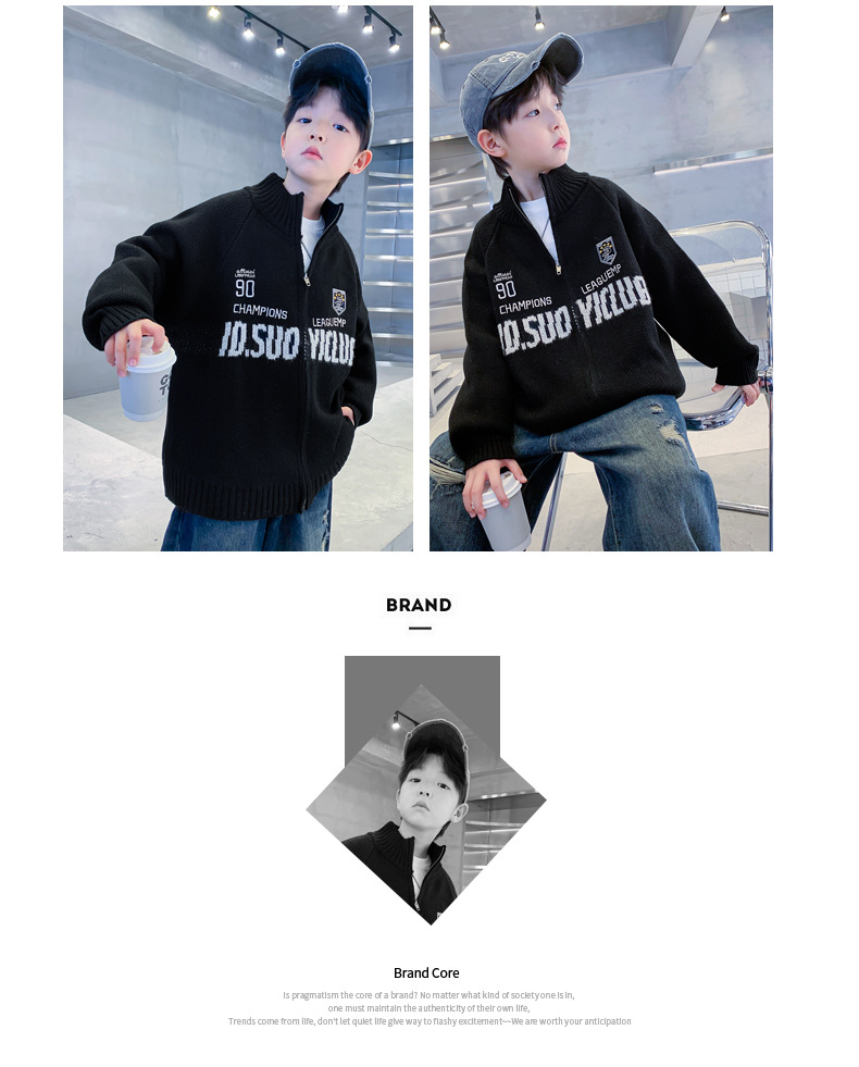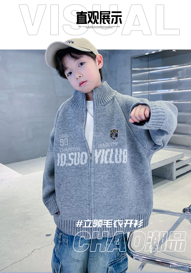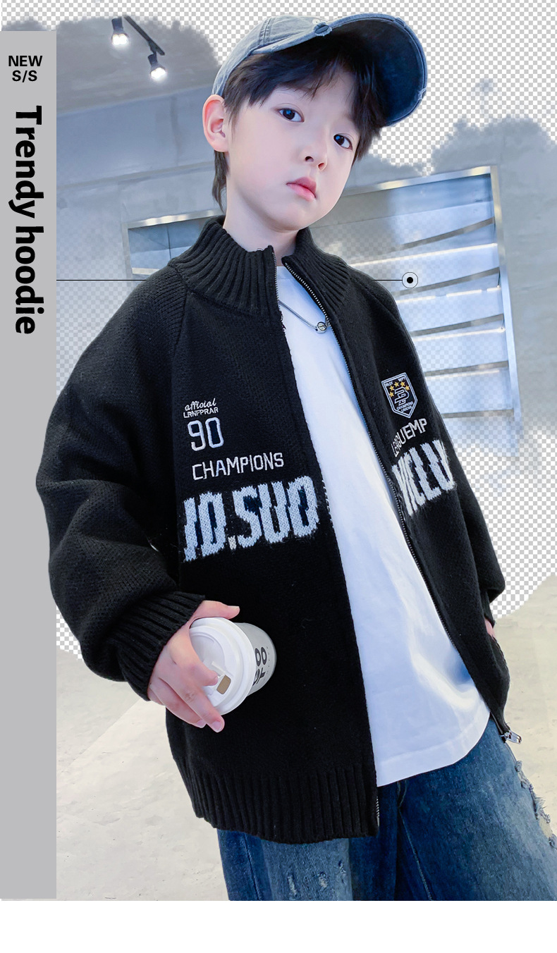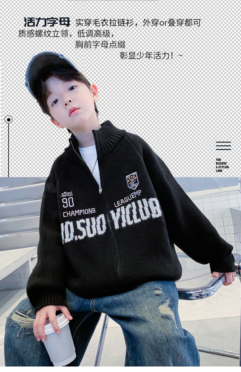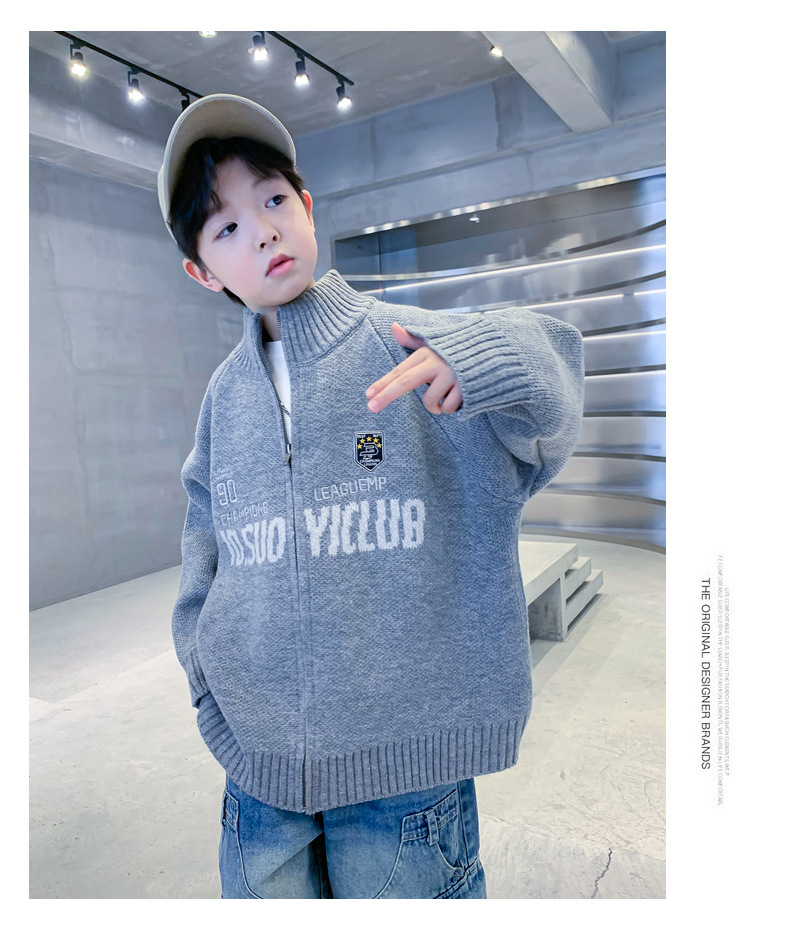 남학생 스웨터 카디건 가을과 겨울 2024 새로운 한국 어린이 스웨터 프라이드 스트리트 보이 코트 두꺼운 러피안 잘 생긴 스타일스토어 가기