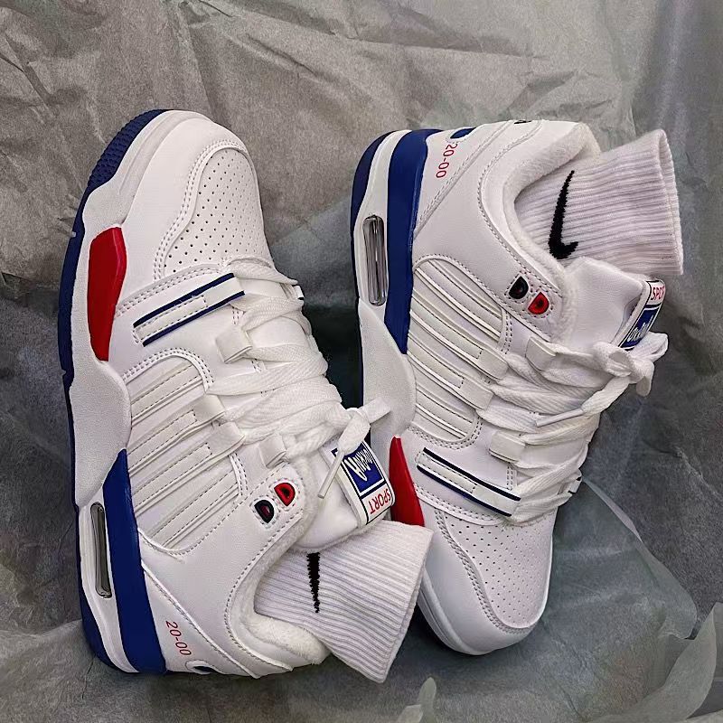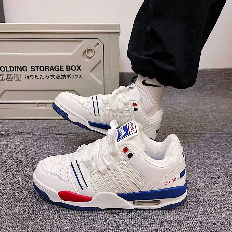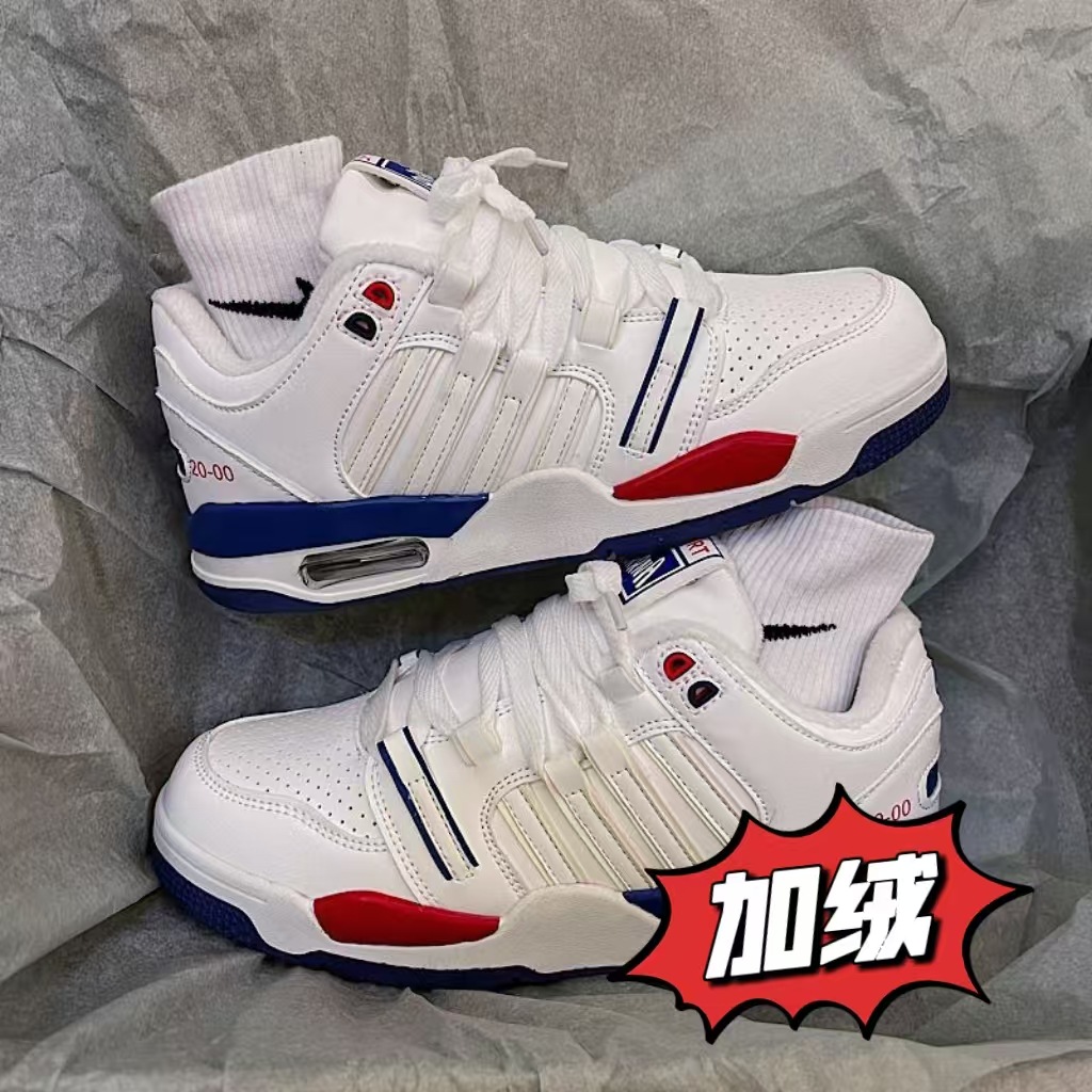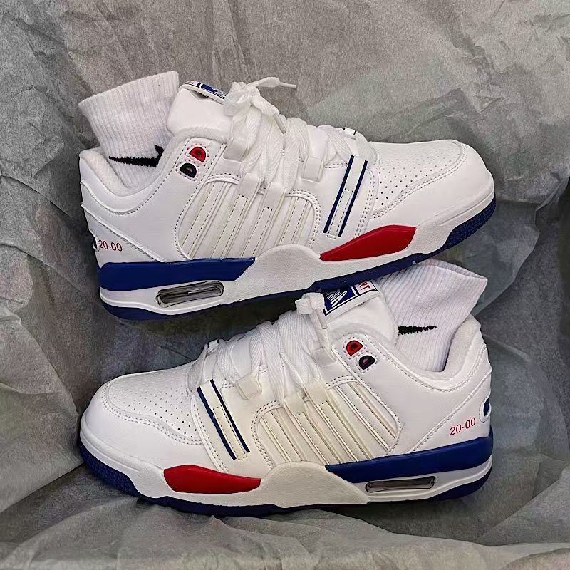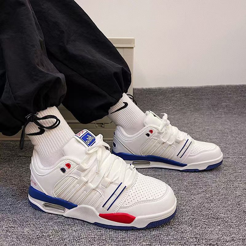 2024 스타일 틈새 화이트 블루 레드 클래식 캐주얼 에어 쿠션 보드 신발 여성 안녕하세요 올 매치 커플 스포츠 화이트 신발스토어 가기