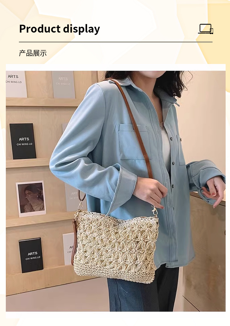 새로운 스타일 간단한 밀짚 짠 가방 여성 패션 중공 작은 사각형 가방 손 짠 가방 휴대용 크로스 바디 가방 모든 경기 밀짚 가방스토어 가기