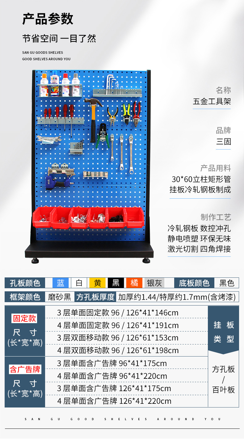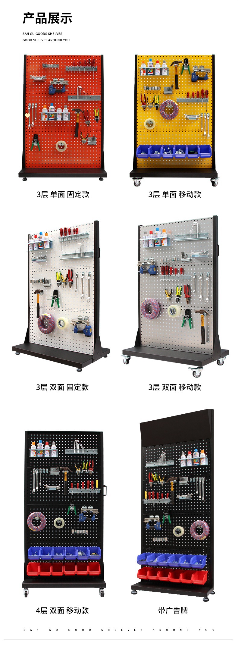 도구 선반 마감 랙 소재 랙 작업장 모바일 금속 홀 보드 선반 액세서리 교수형 보드 하드웨어 디스플레이 랙스토어 가기