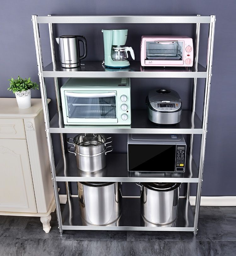 스테인레스 스틸 스토리지 랙 5 층 주방 바닥 스탠드 스토리지 랙 갭 멀티 레이어 전체 가정용 캐비닛 찬장 높이