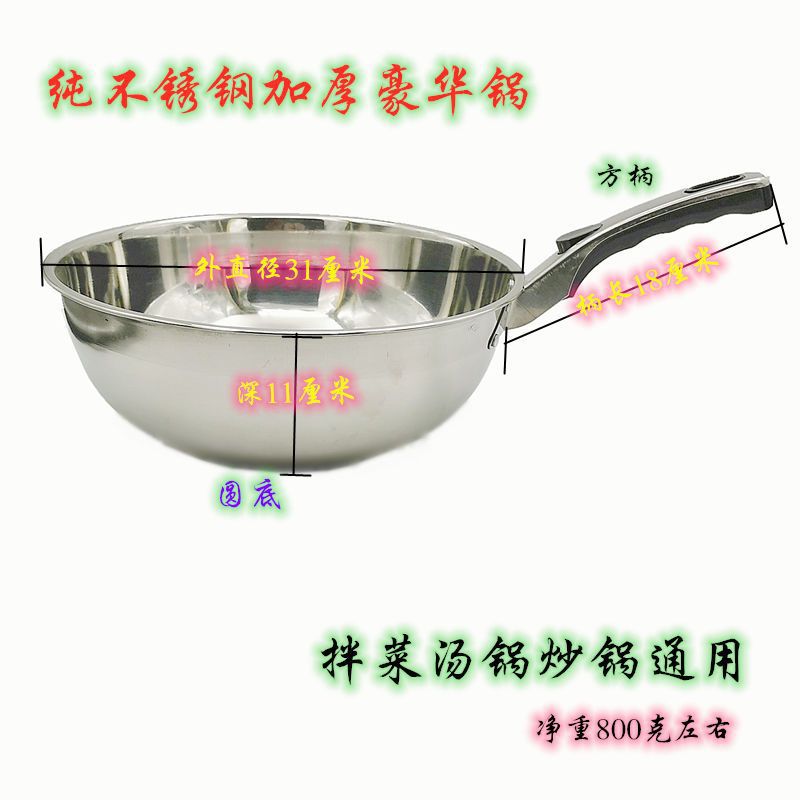 두꺼운 304 스테인레스 스틸 상업용 혼합 냄비 둥근 바닥 혼합 야채 드레싱 냄비 국수 혼합 야채 스푼 혼합 야채 스푼 물 숟가락 중간 및 높이스토어 가기