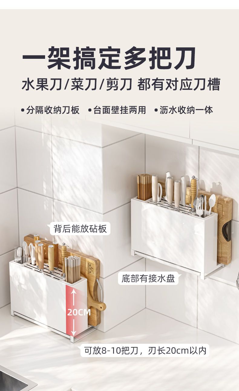 테이블 나이프 홀더 벽에 장착 된 주방 젓가락 케이지 통합 주방 칼 홀더 냄비 커버 보관 랙 나이프 도마 저장 매체 및 높이