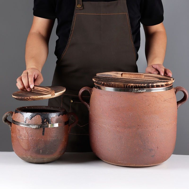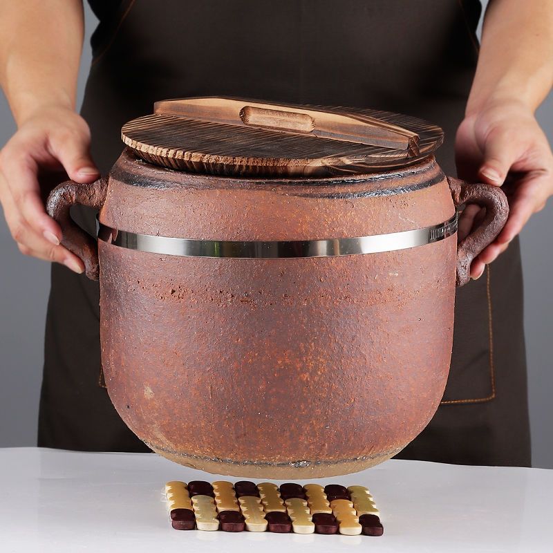 오래 된 거친 지구 캐서롤 죽 냄비 열린 화염에 끓인 고기 전통 타일 지구 걸이 가정용 대형 고온 스튜 중간 고온 저항성 수프