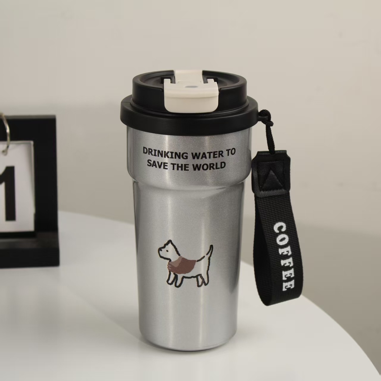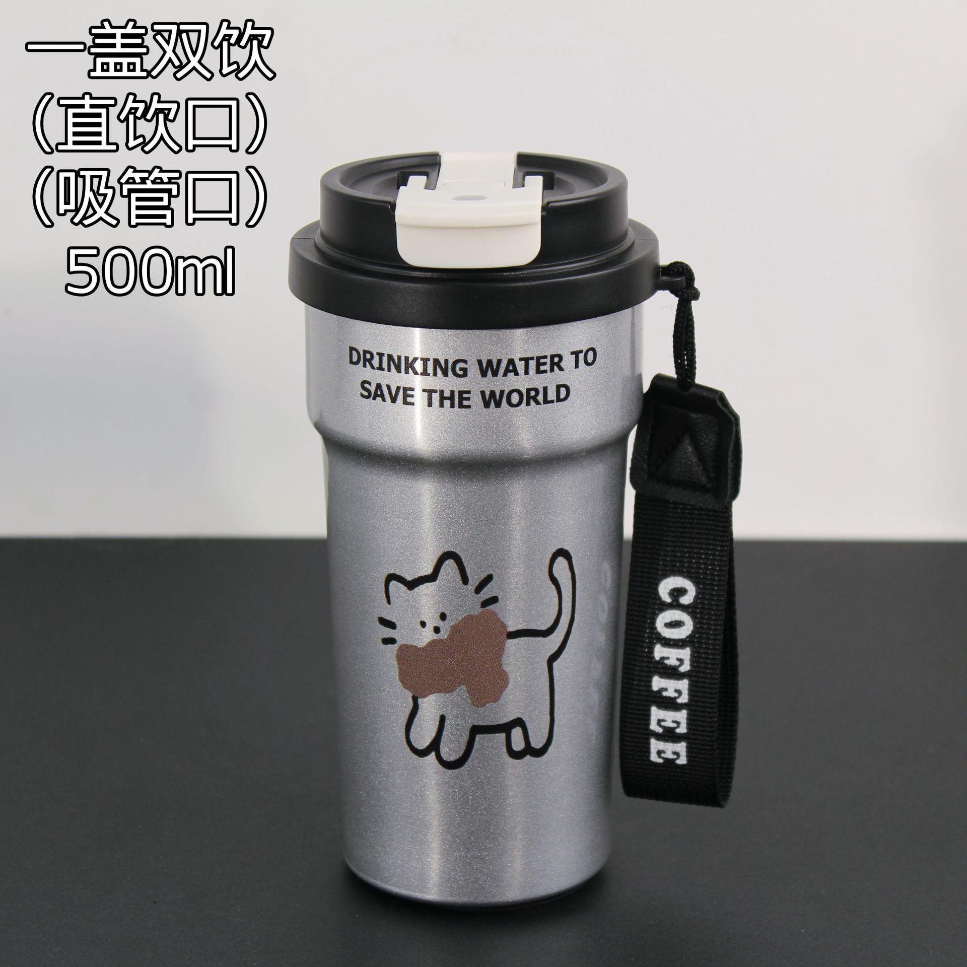 만화 고양이 316 스테인레스 스틸 보온병 컵 소년과 소녀를위한 대용량 고급스러운 홈 컵과 밀짚 커피 컵