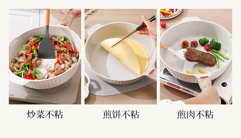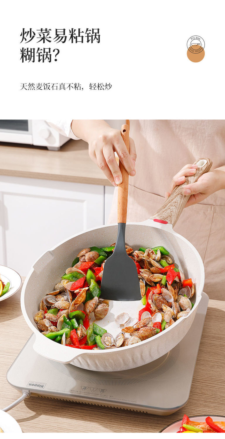 HLK Maifan 스톤 비 스틱 팬 프라이팬 가정용 유도 쿠커 가스 스토브 수프 냄비 볶음 팬 플랫 중형스토어 가기