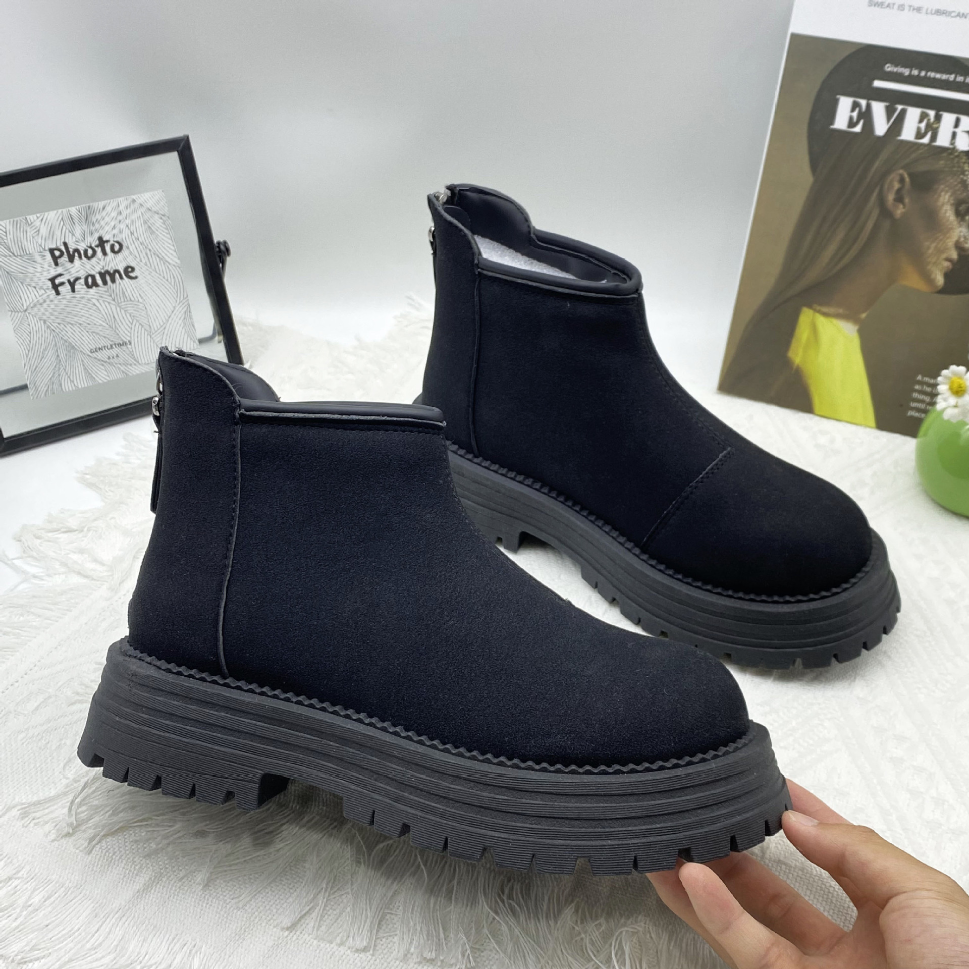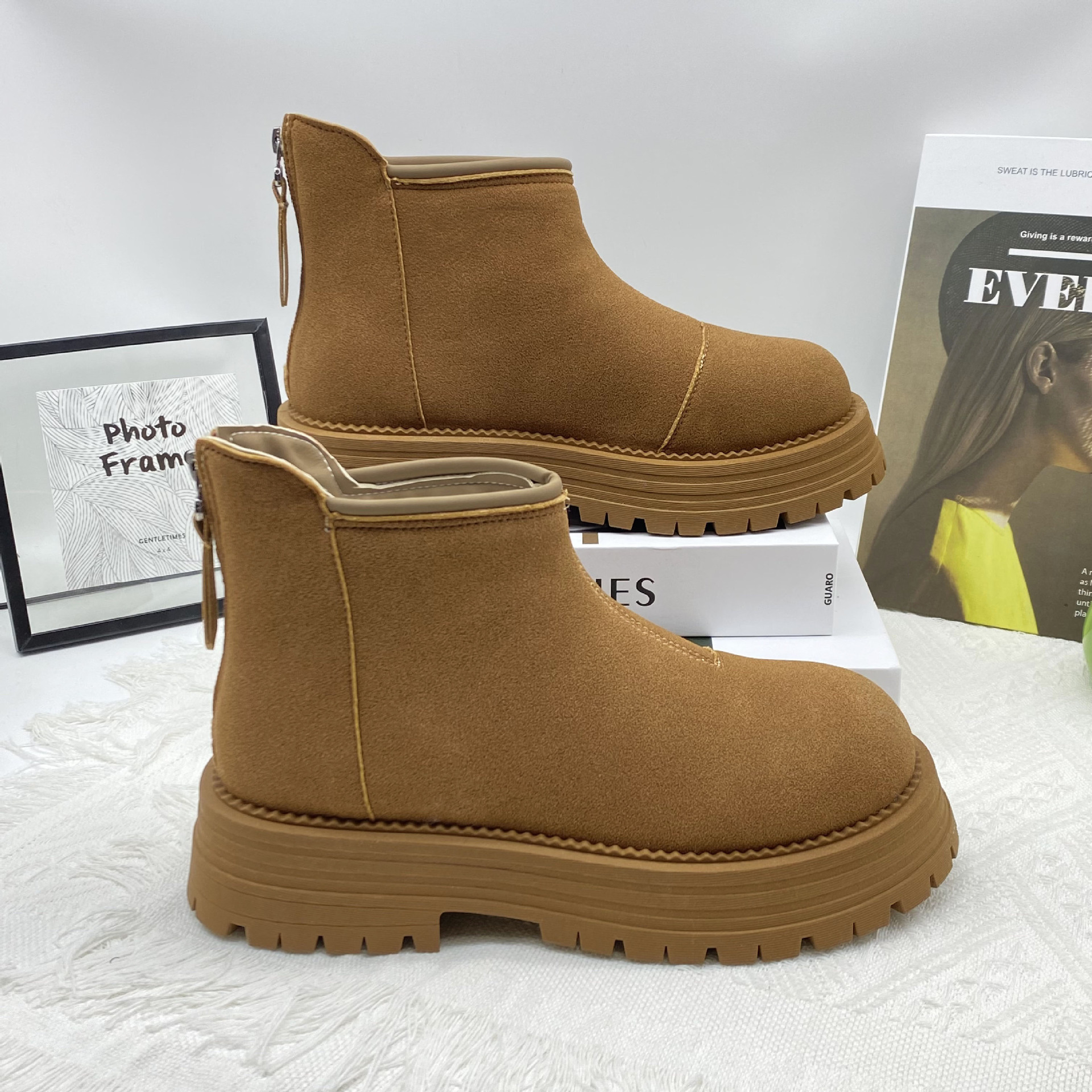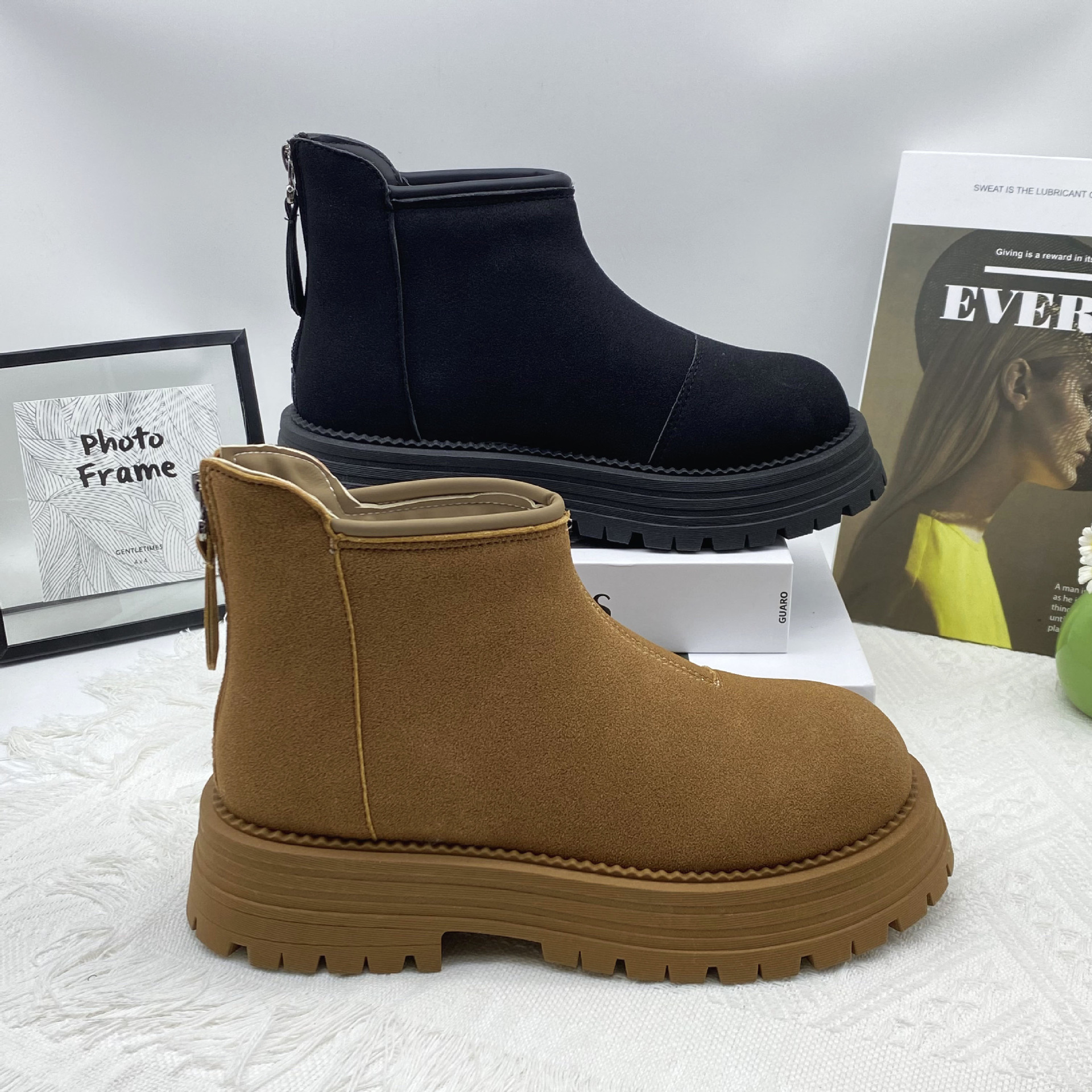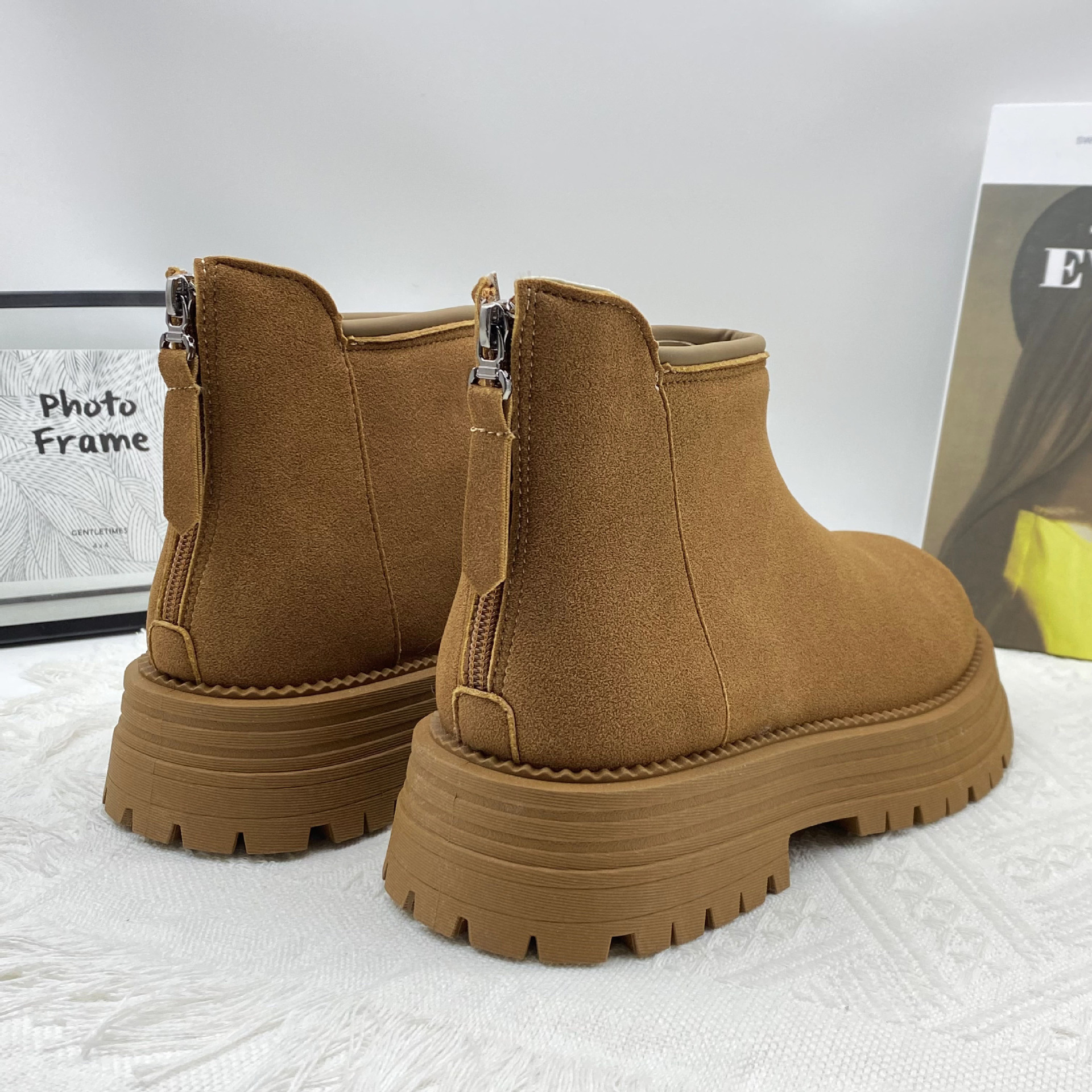 다크 브라운 두꺼운 바닥 패션 부츠 얇은 부츠 2024 따뜻한 캐주얼 빈티지 두꺼운 하단 짧은 부츠 여성용 부츠 짧은 부츠 기모스토어 가기