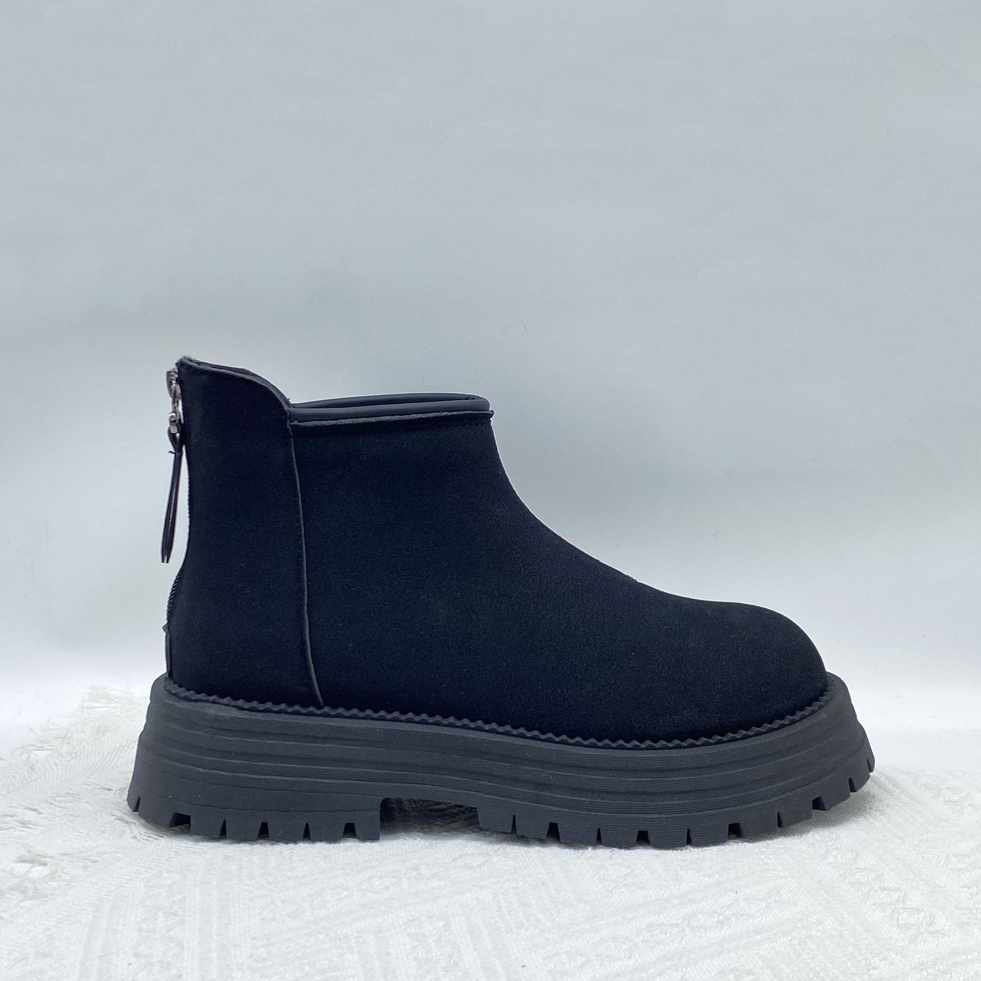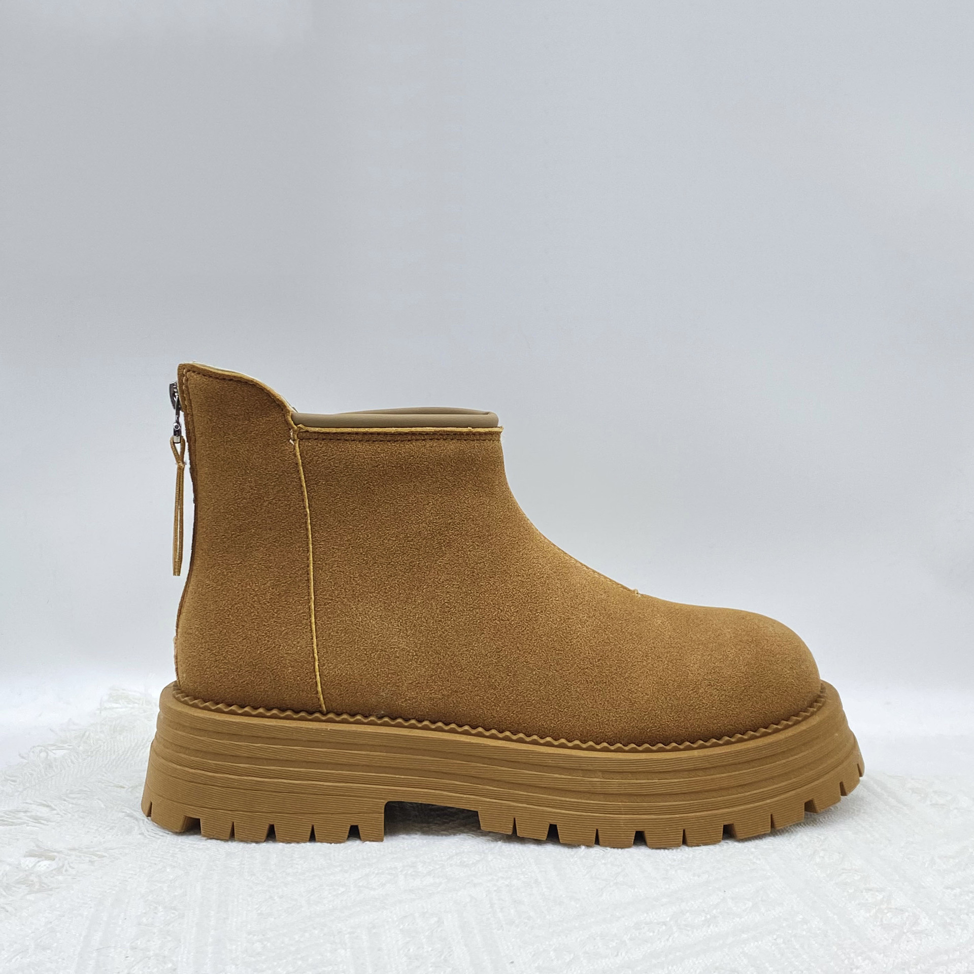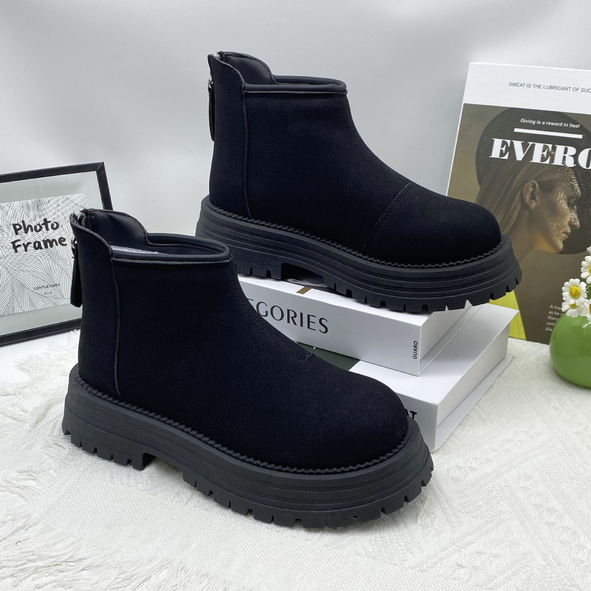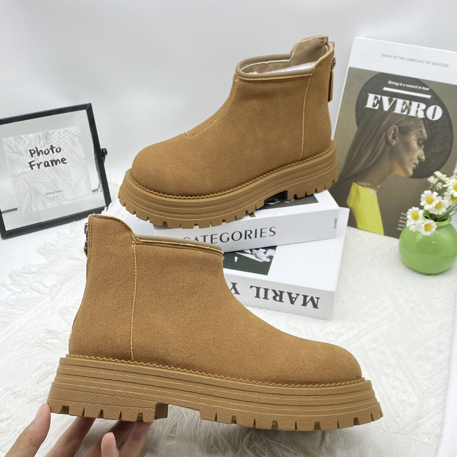 다크 브라운 두꺼운 바닥 패션 부츠 얇은 부츠 2024 따뜻한 캐주얼 빈티지 두꺼운 하단 짧은 부츠 여성용 부츠 짧은 부츠 기모스토어 가기