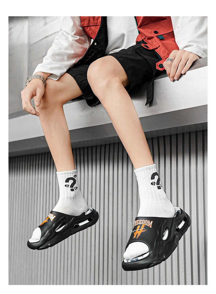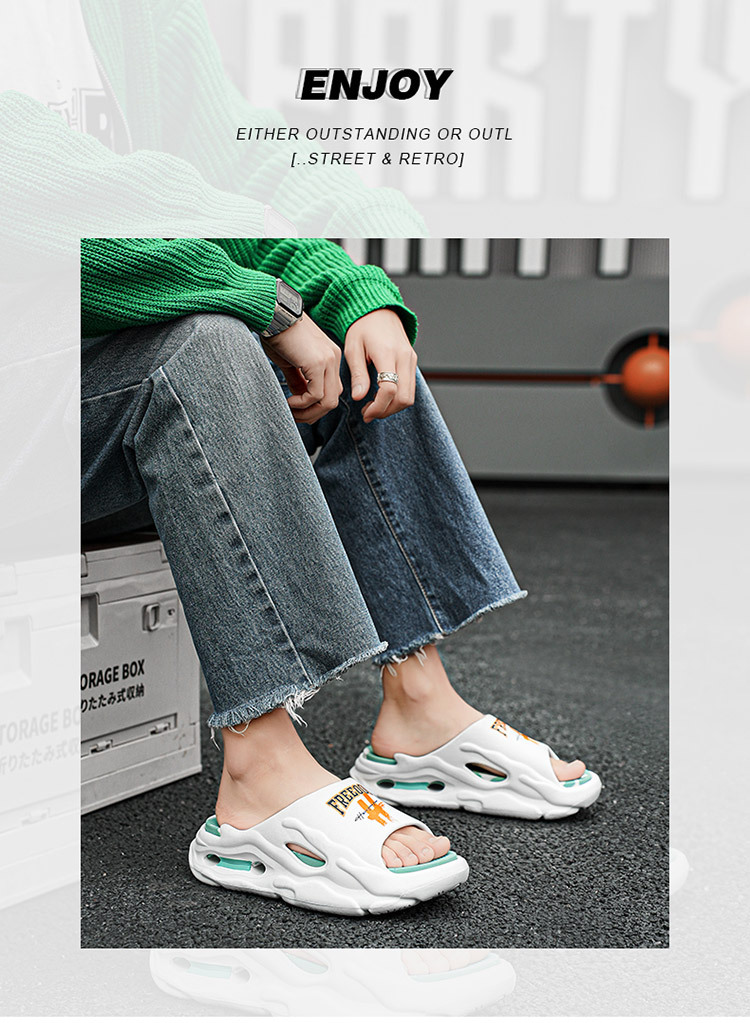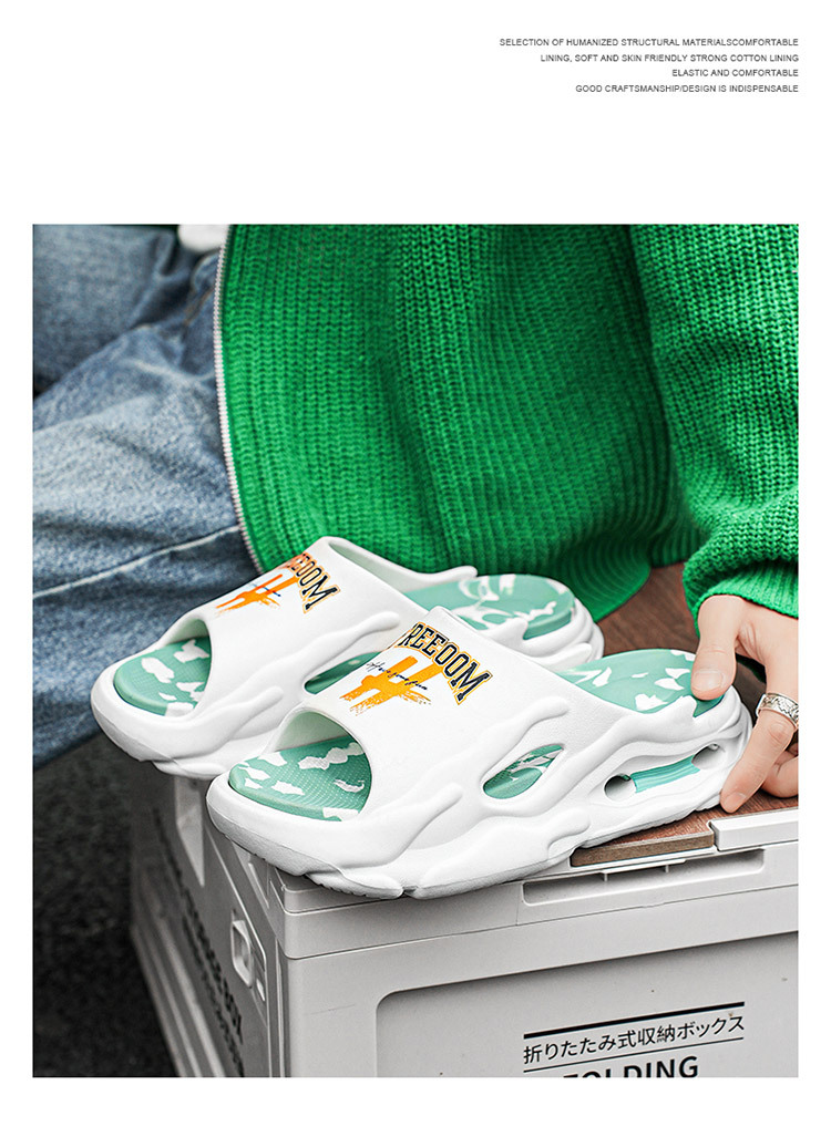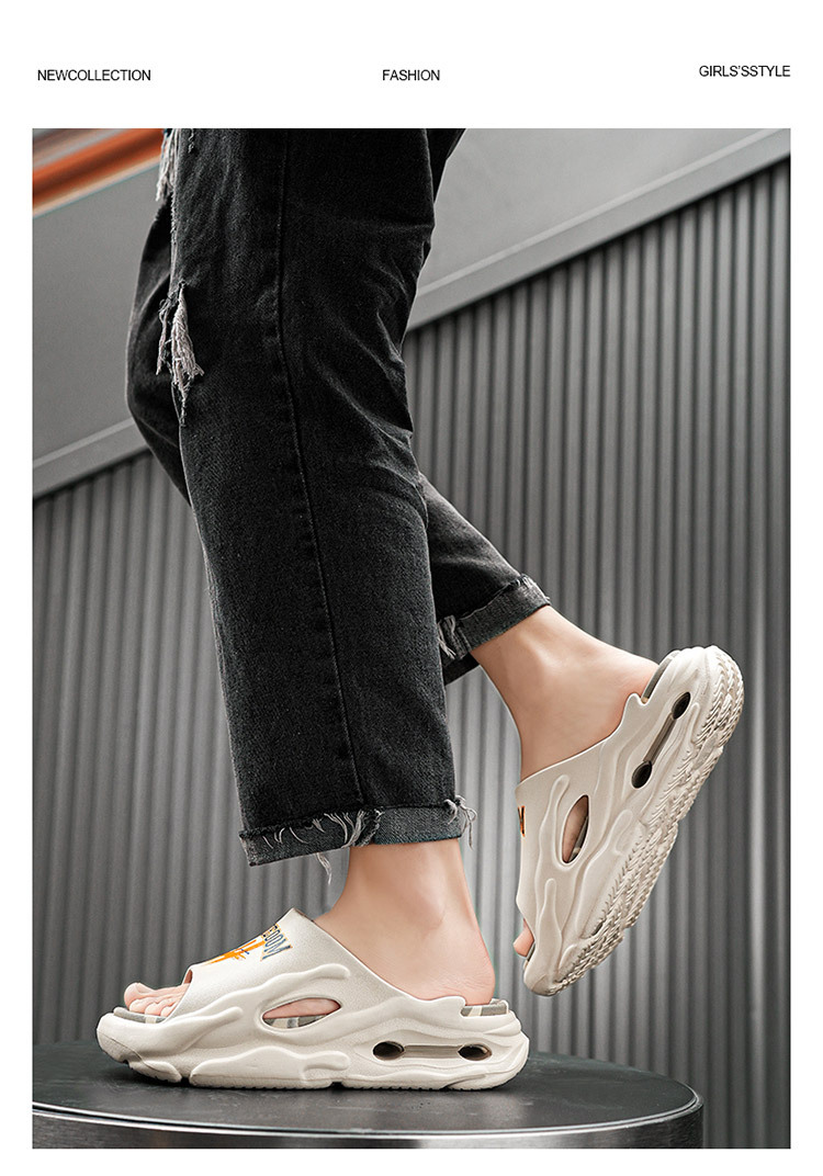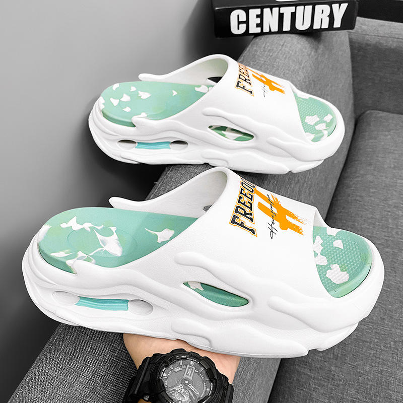 트렌디 한 브랜드 슬리퍼 남성 여름 십대들은 배설물을 밟는 것처럼 느낍니다. 스포츠 샌들 소년 두꺼운 밑창이없는 해변 샌들