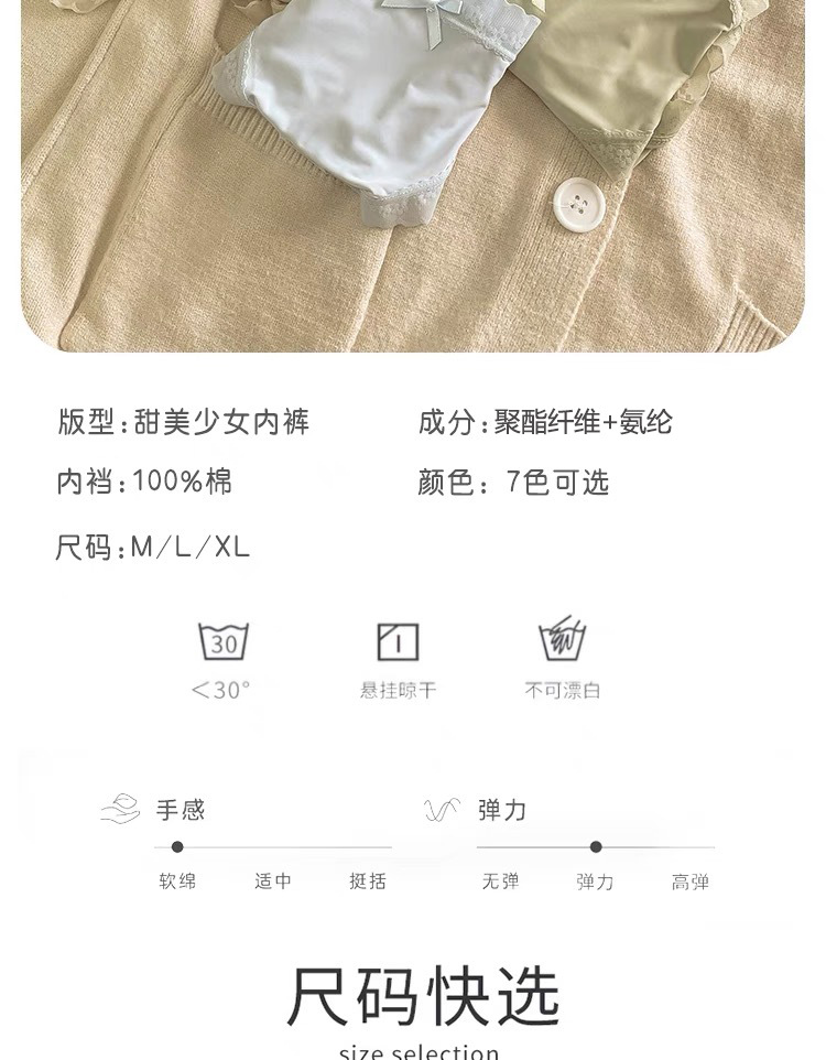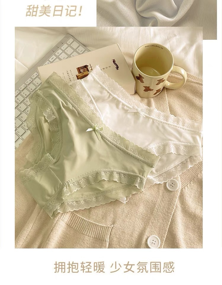 Polly Jia Hu "Cream Girl" 봄과 여름 단색 초박형 마스크 팬티 여성용 미드 웨이스트 코튼 크로치 트립 헤드스토어 가기