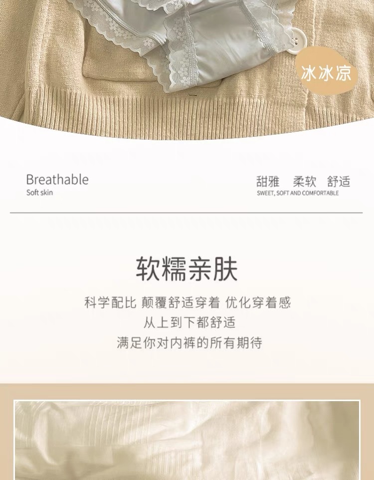 Polly Jia Hu "Cream Girl" 봄과 여름 단색 초박형 마스크 팬티 여성용 미드 웨이스트 코튼 크로치 트립 헤드