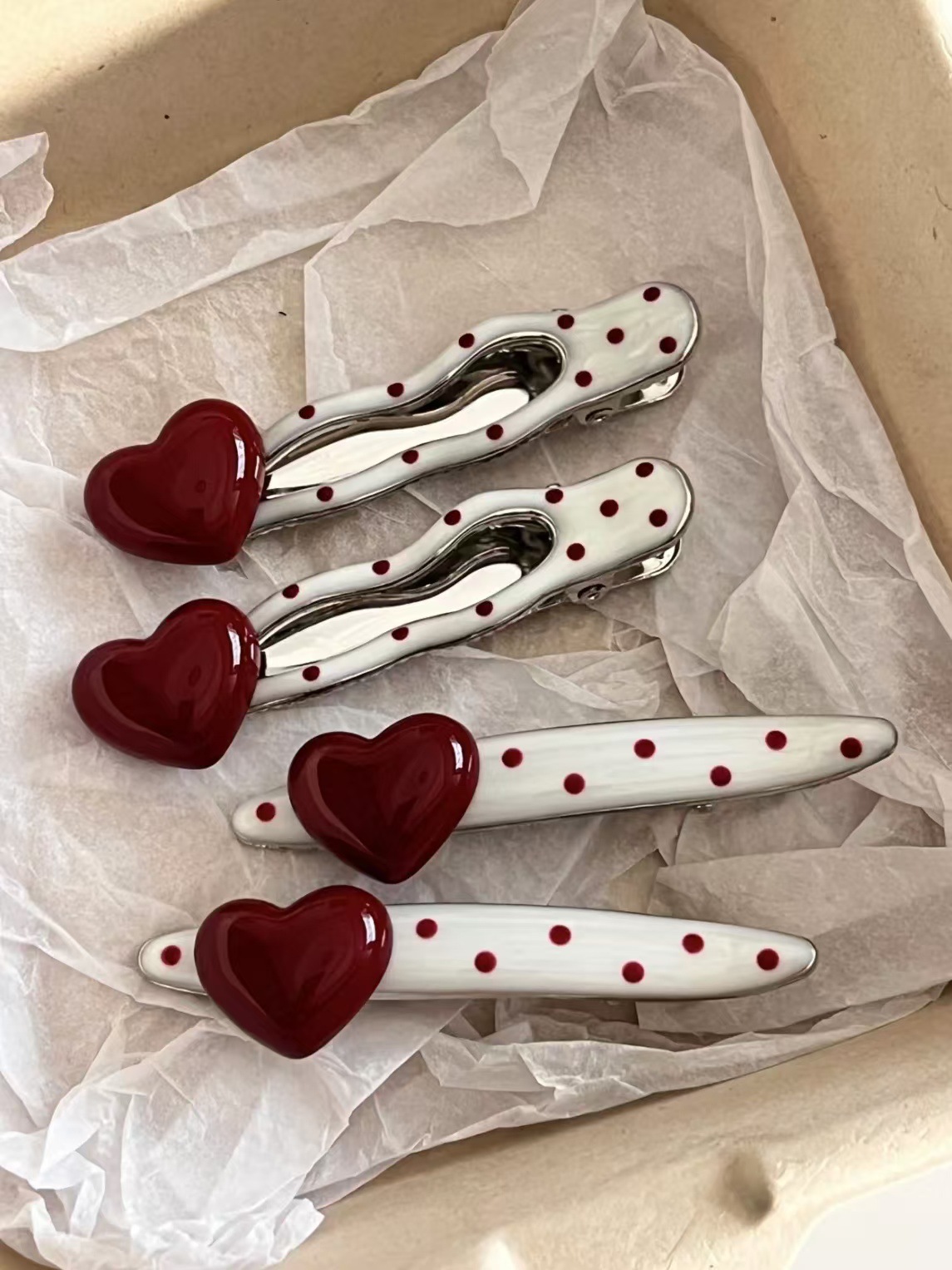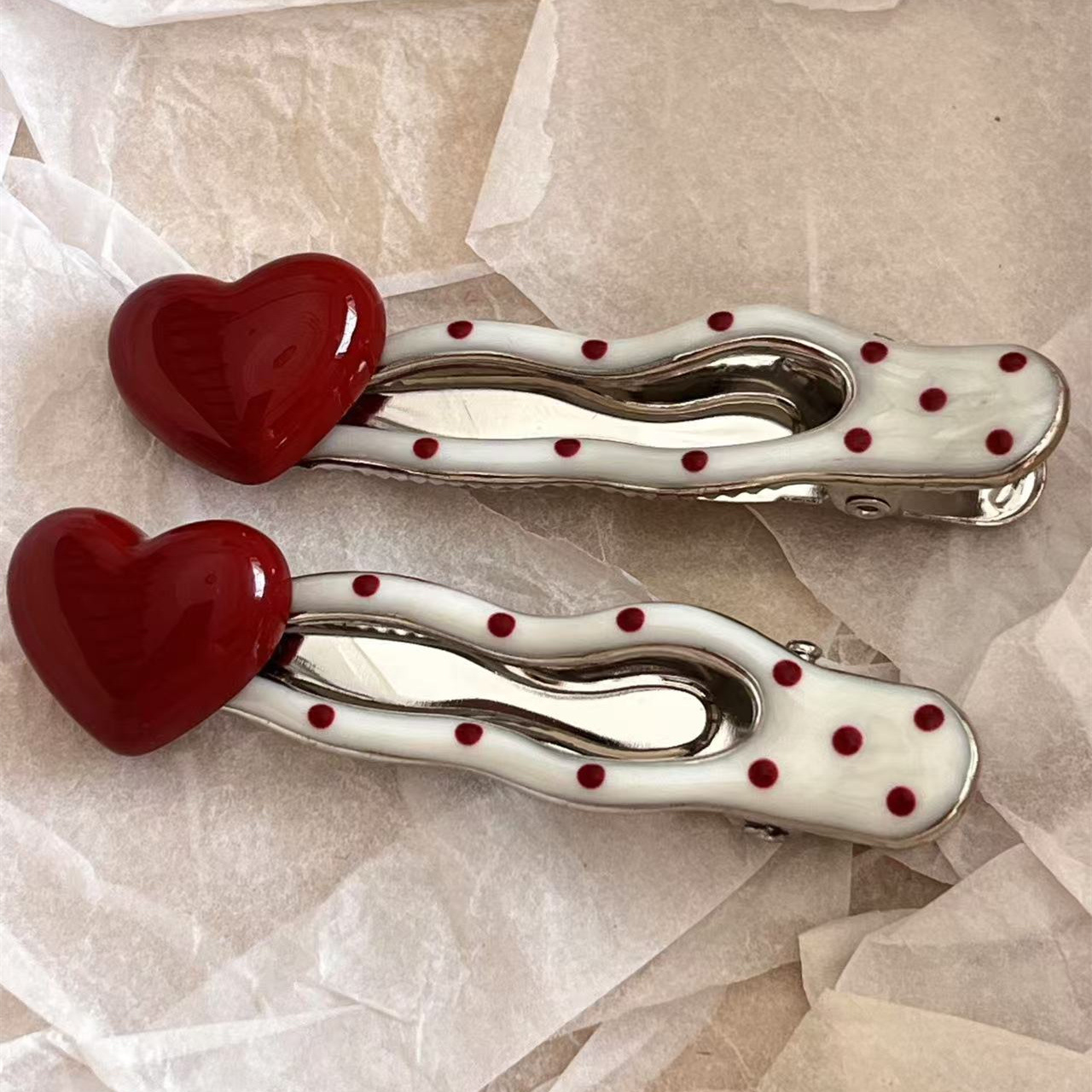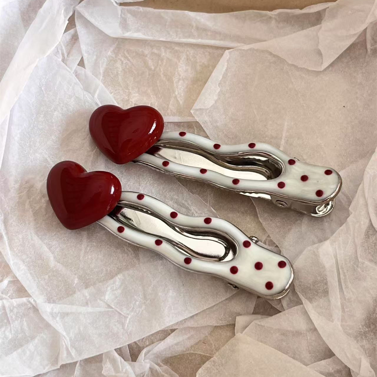 한국 새로운 안카라 레드 러브 체리 웨이브 포인트 헤어핀 여성을위한 달콤한 귀여운 사이드 클립 뱅 헤어 액세서리