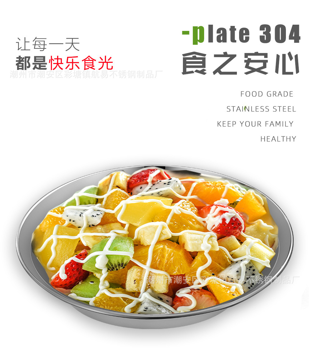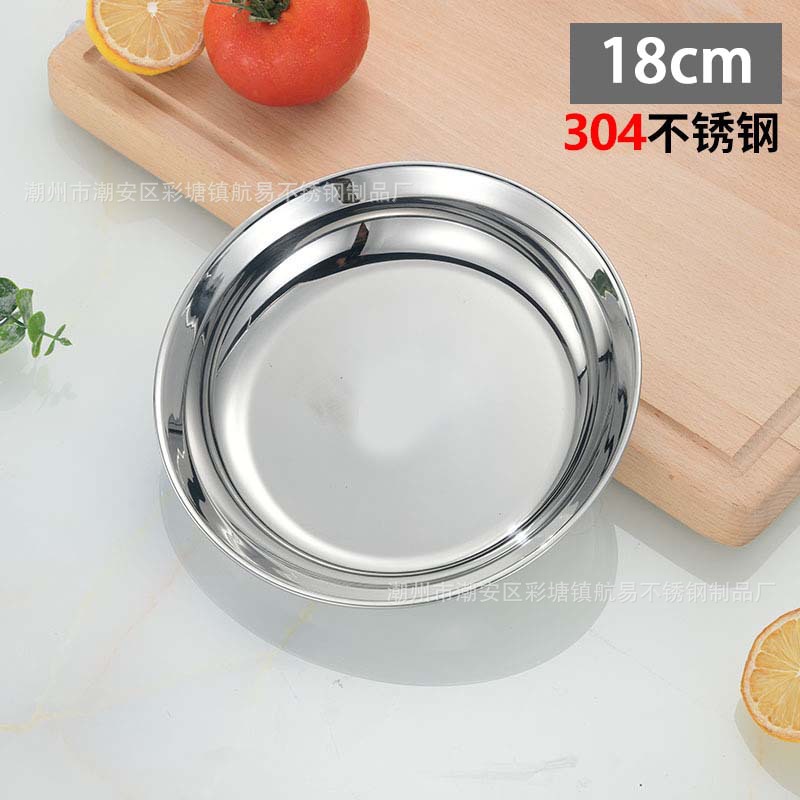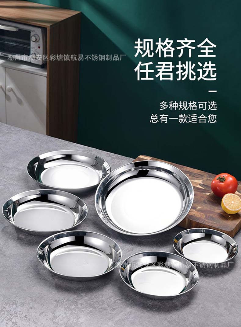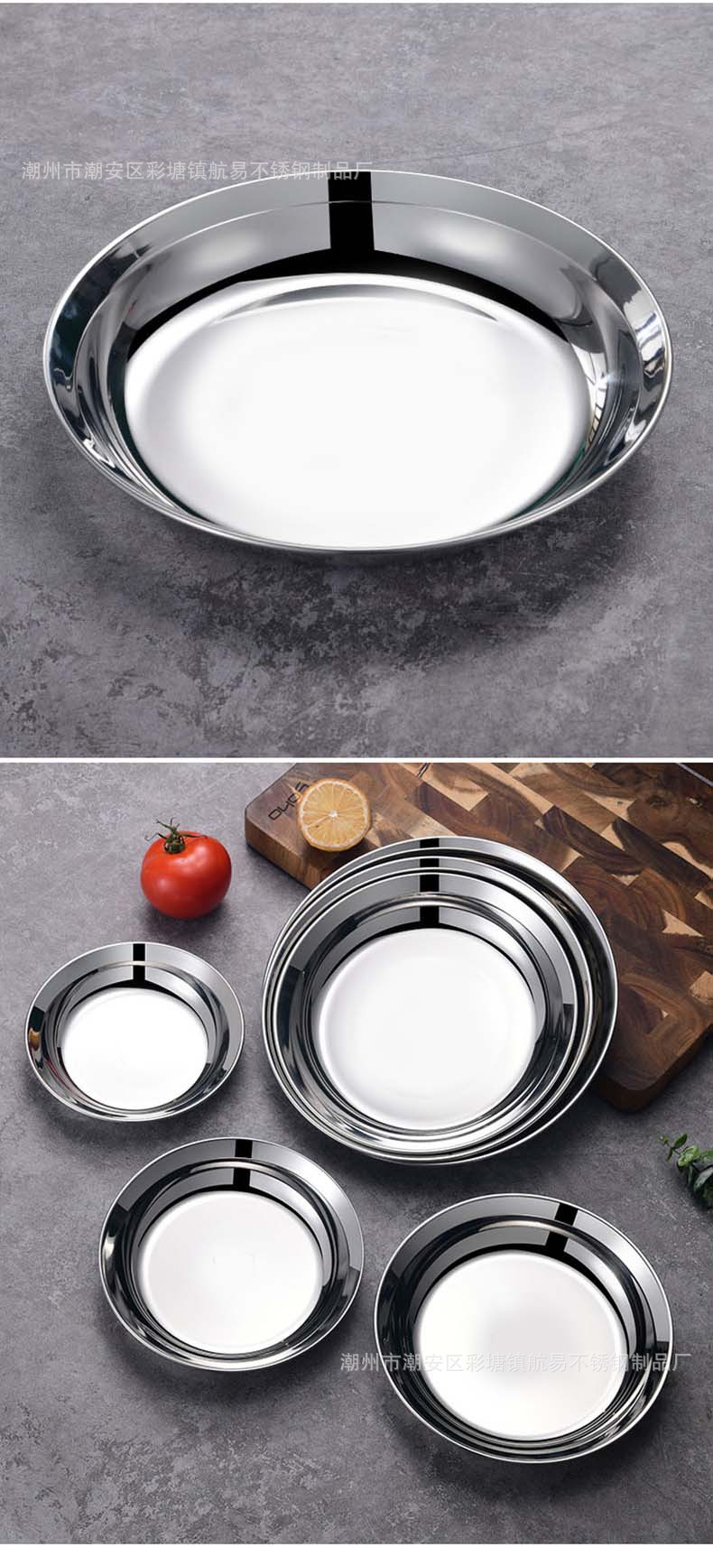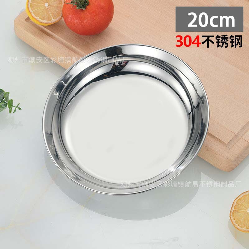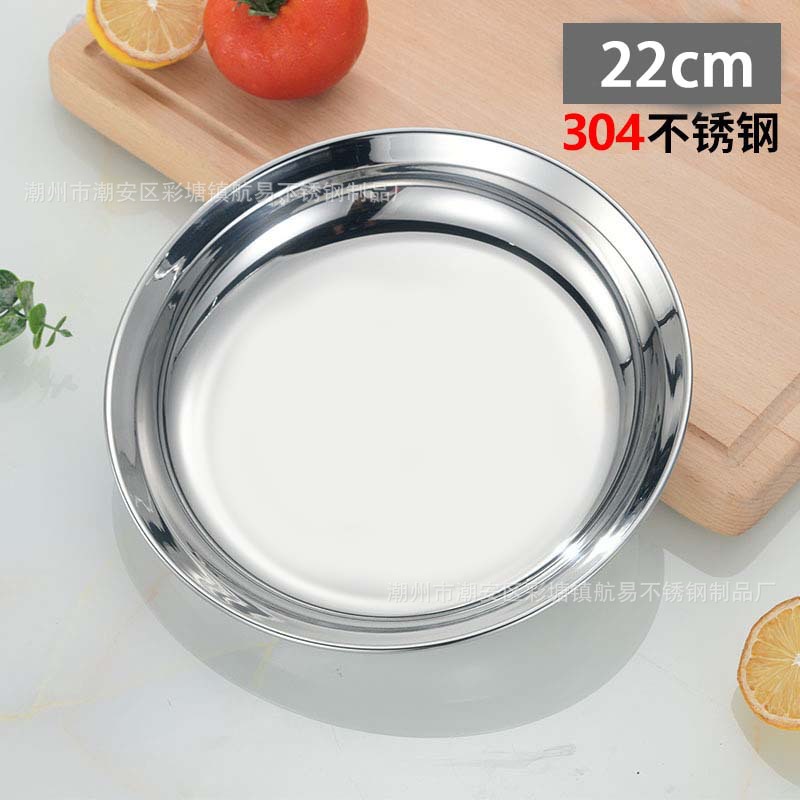 304 스테인레스 스틸 안티 오버플로 플레이트 라운드 두꺼운 살라 플레이트 가정용 조식 플레이트 베이킹 플레이트 얕은 플레이트 크로스 보더 스페셜