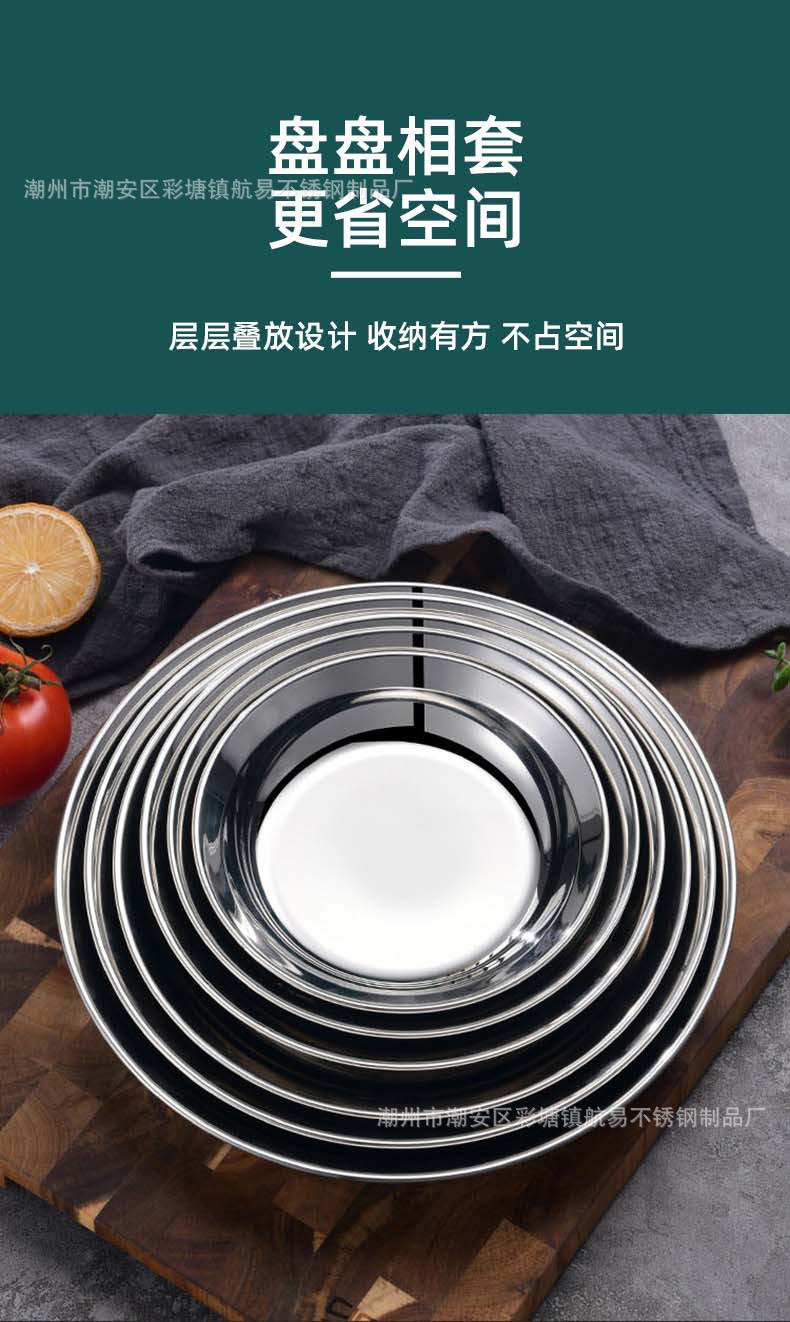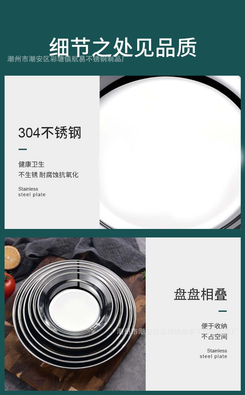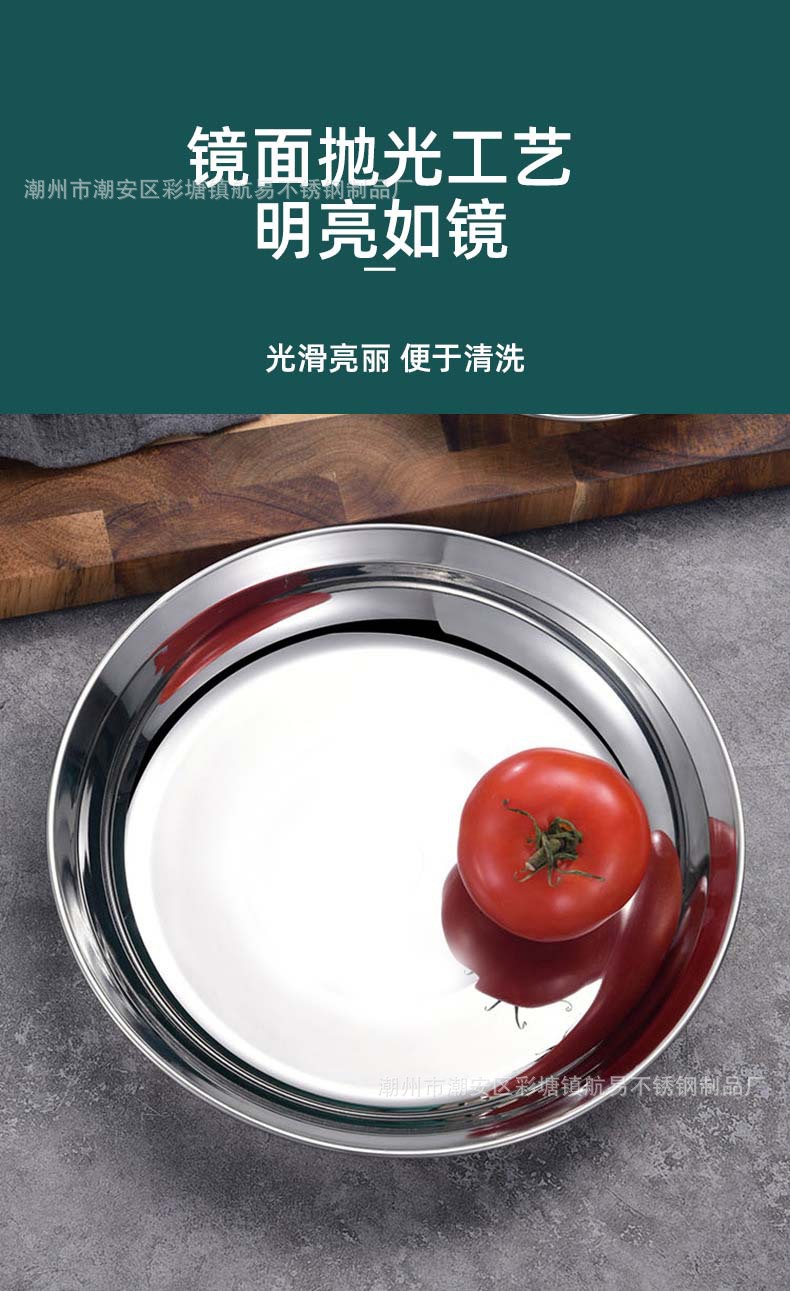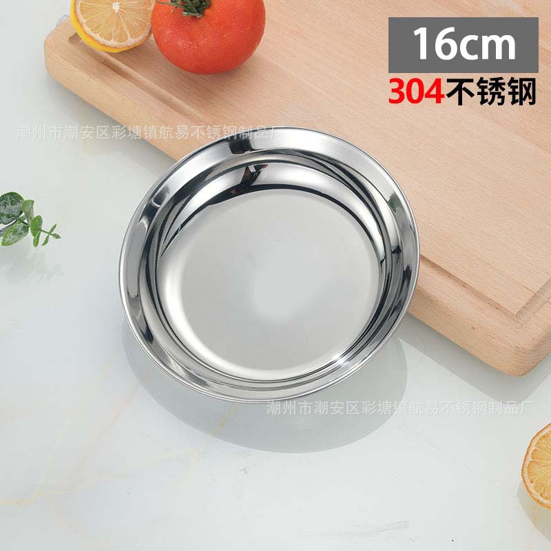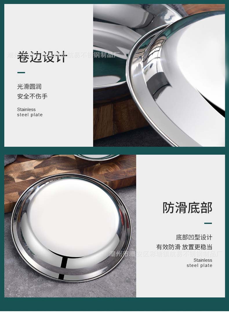 304 스테인레스 스틸 안티 오버플로 플레이트 라운드 두꺼운 살라 플레이트 가정용 조식 플레이트 베이킹 플레이트 얕은 플레이트 크로스 보더 스페셜