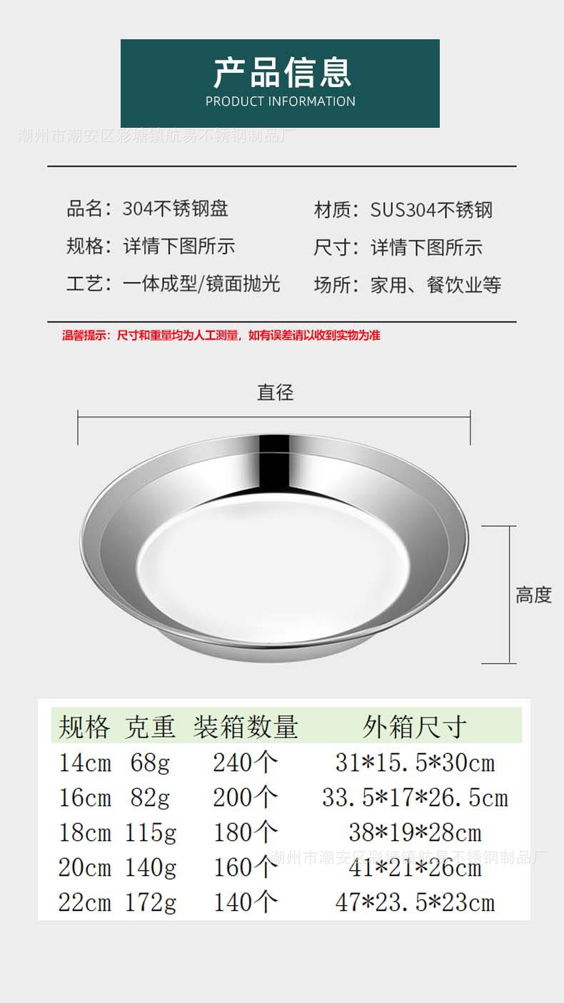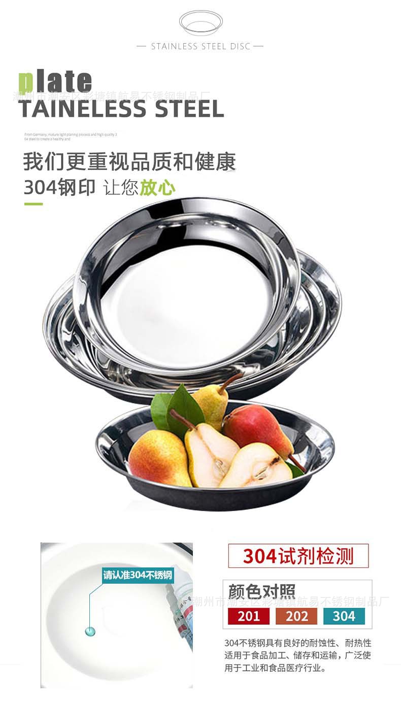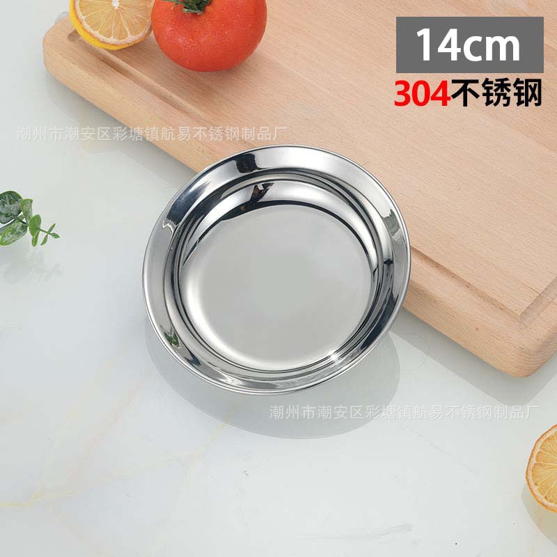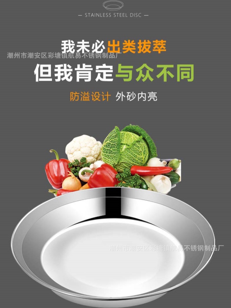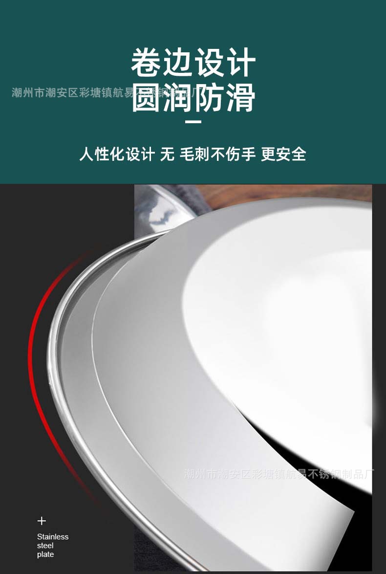 304 스테인레스 스틸 안티 오버플로 플레이트 라운드 두꺼운 살라 플레이트 가정용 조식 플레이트 베이킹 플레이트 얕은 플레이트 크로스 보더 스페셜