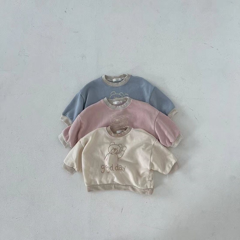 한국 아동복 어린이 긴팔 둥근 목 봄과 가을 만화 곰 스웨터 아기 면화 귀여운 소녀 탑 뉴스토어 가기