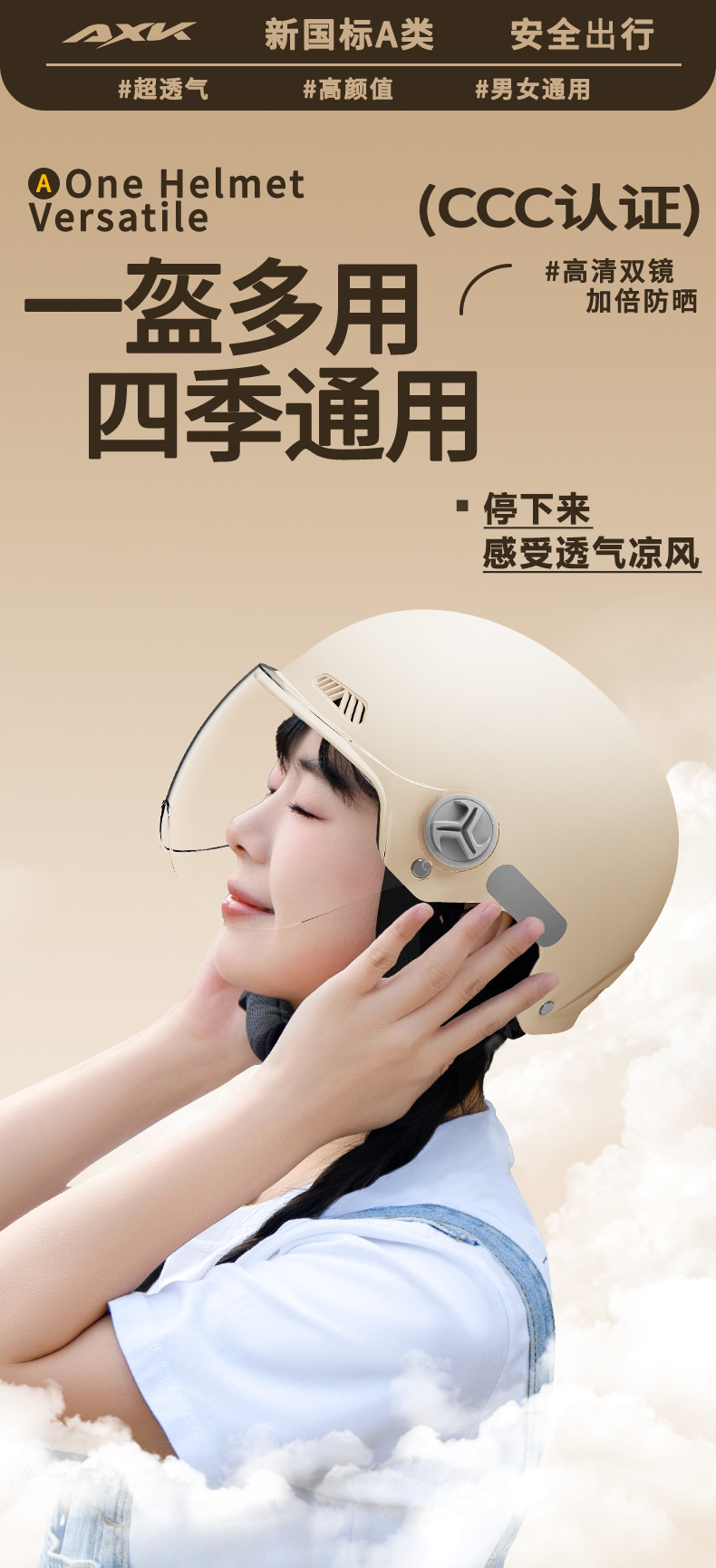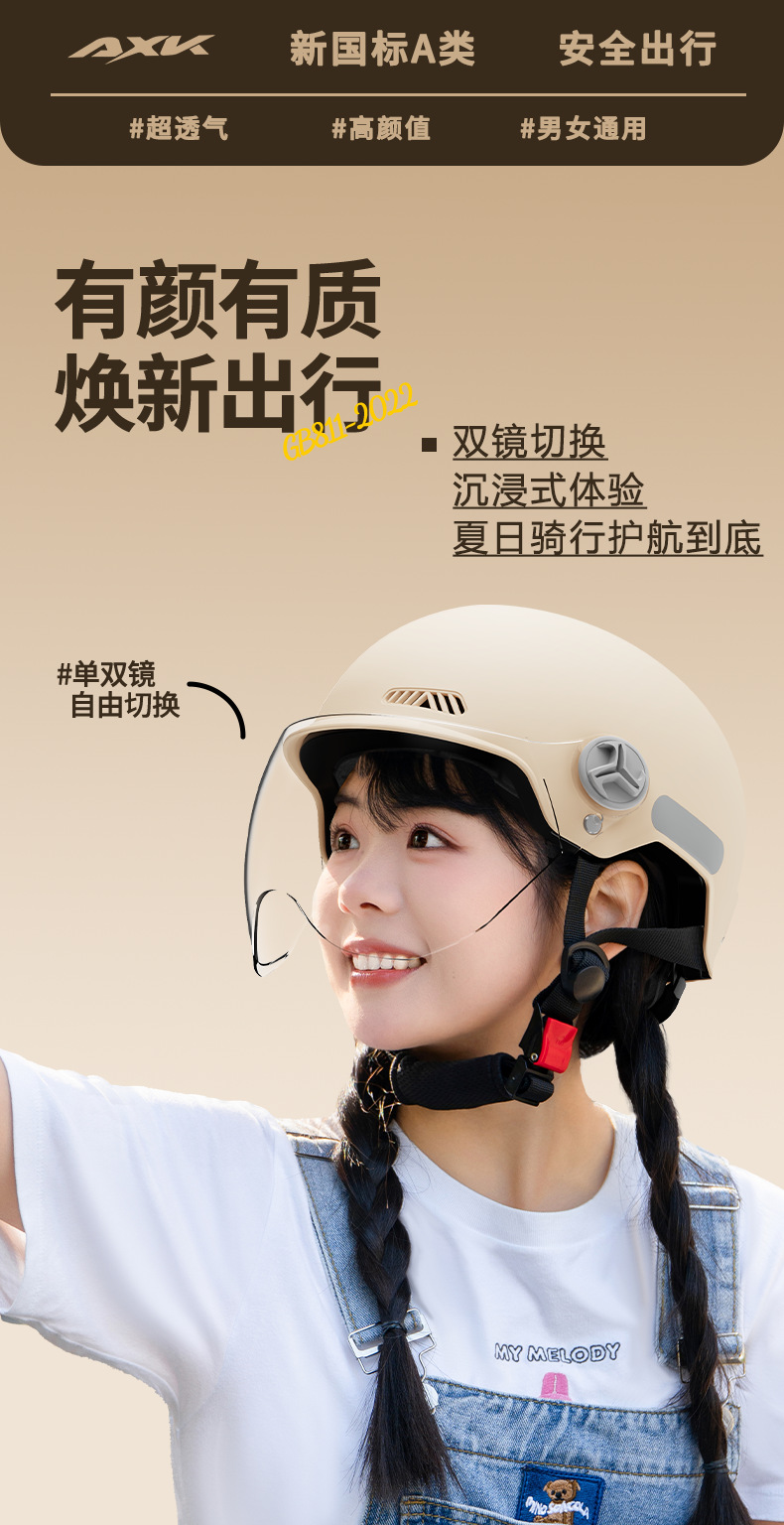 3C 인증 전기 자동차 헬멧 남자와 여자 여름 자외선 차단제 새로운 국가 표준 오토바이 하프 헬멧 사계절 유니버설 헬멧