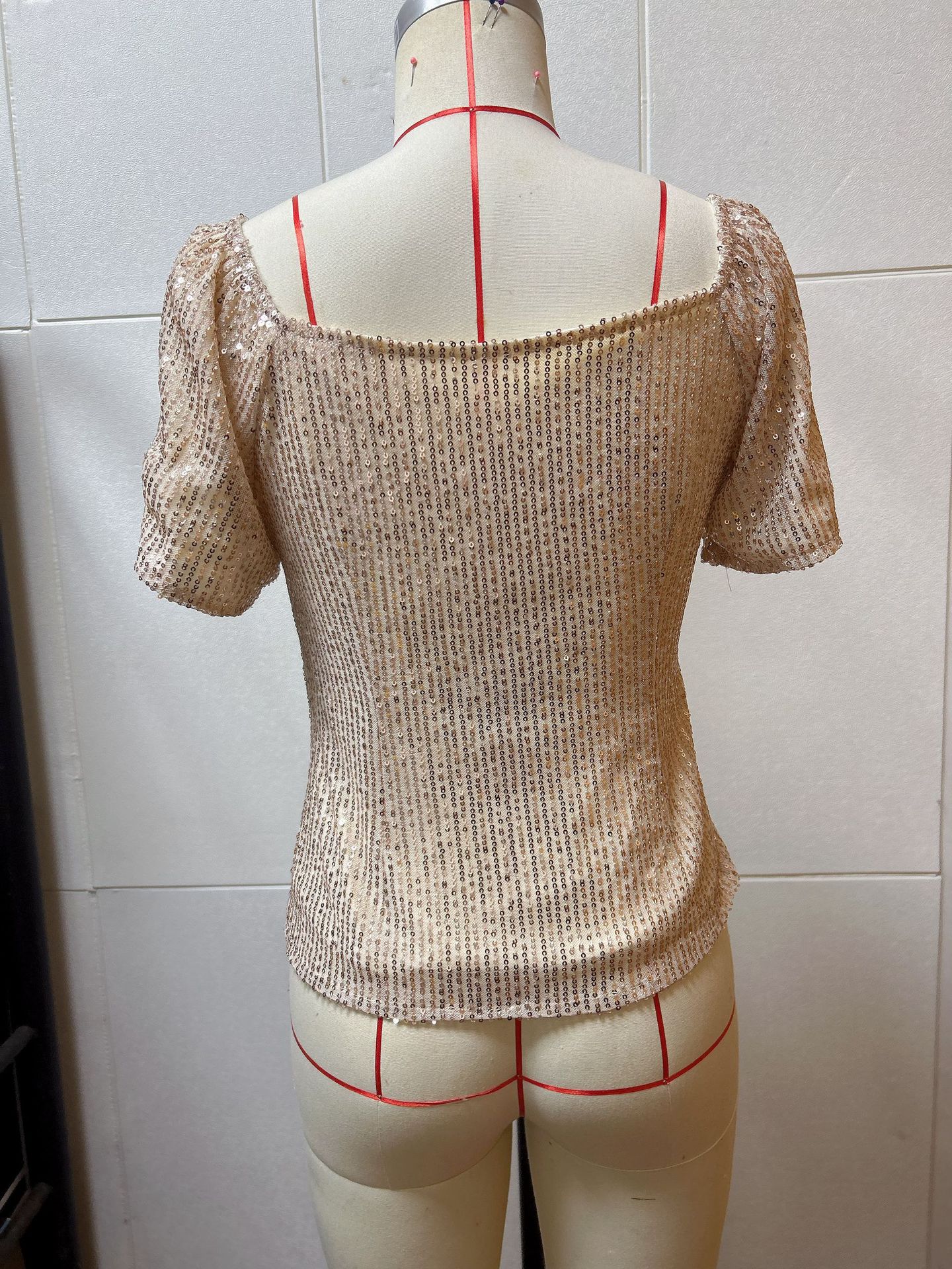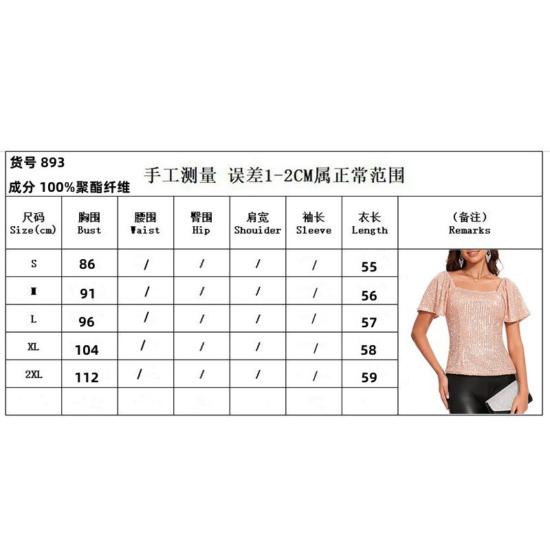 아마존 2025 유럽과 미국의 대외 무역 국경 여성 스퀘어 칼라 패션 짧은 소매 스팽글 버블 슬리브 패션 다용도 셔츠스토어 가기
