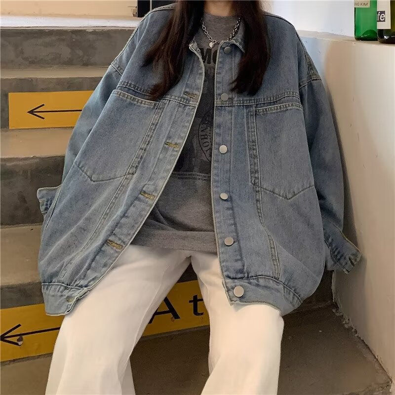 가을과 겨울 한국 스타일 2024 새로운 느슨한 대형 포켓 중간 길이 데님 코트 여성 학생 올 매치 재킷 탑