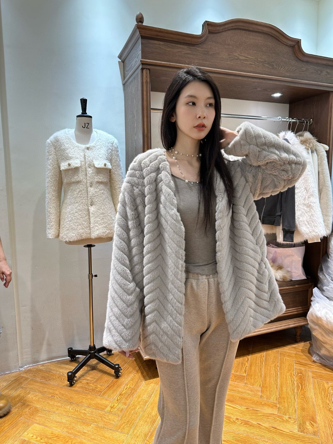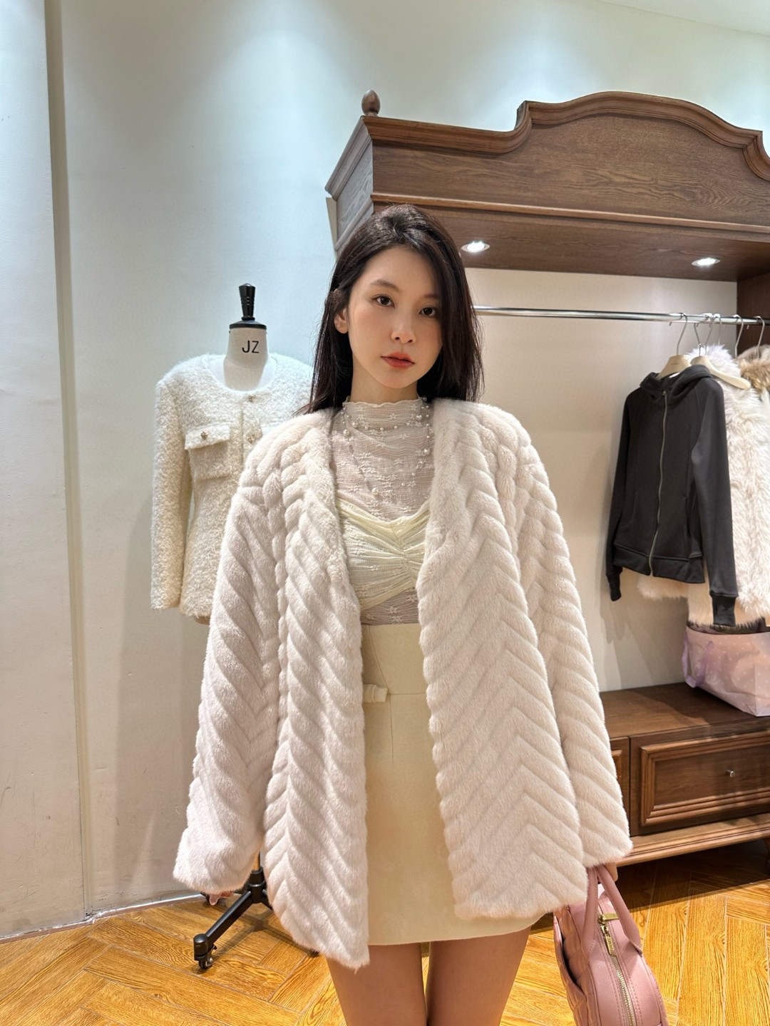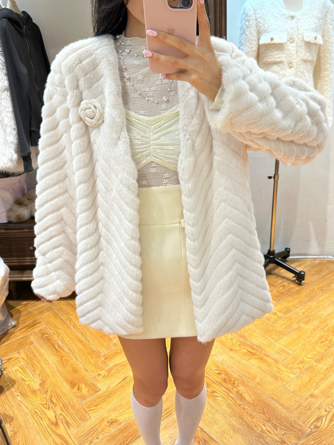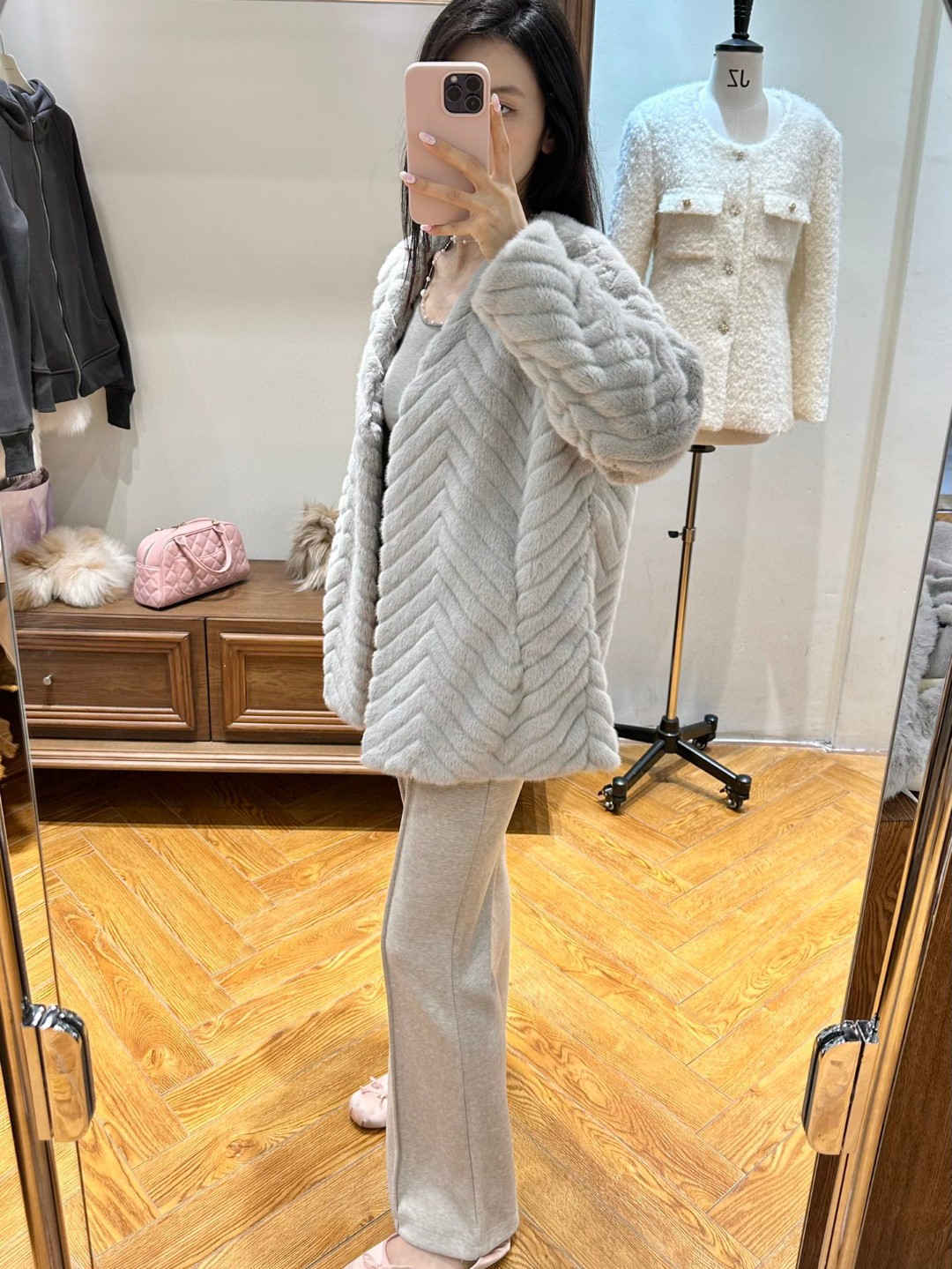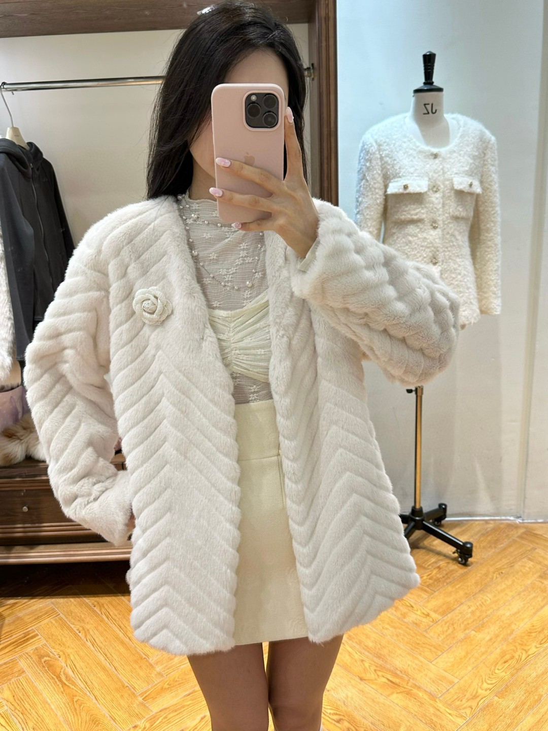 부드러운 화이트 핏 벨트 친환경 모방 밍크 헤어 슬림 V-넥 겨울 올 매치 모피 코트 여성용 2024 겨울복스토어 가기