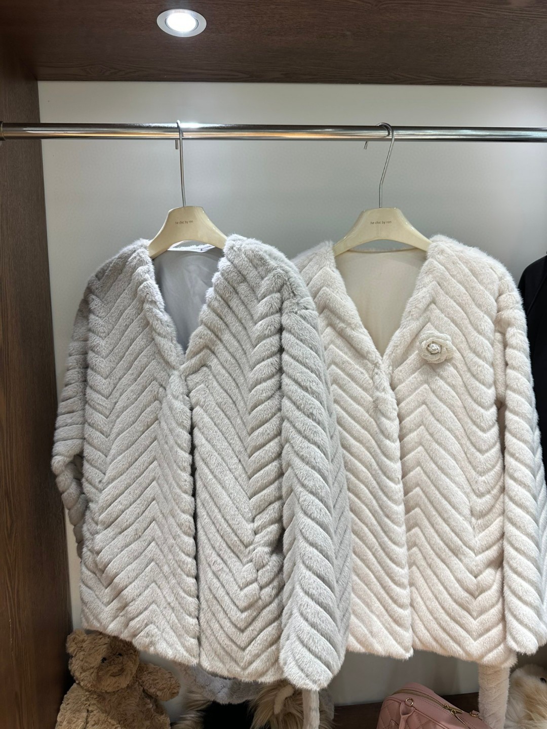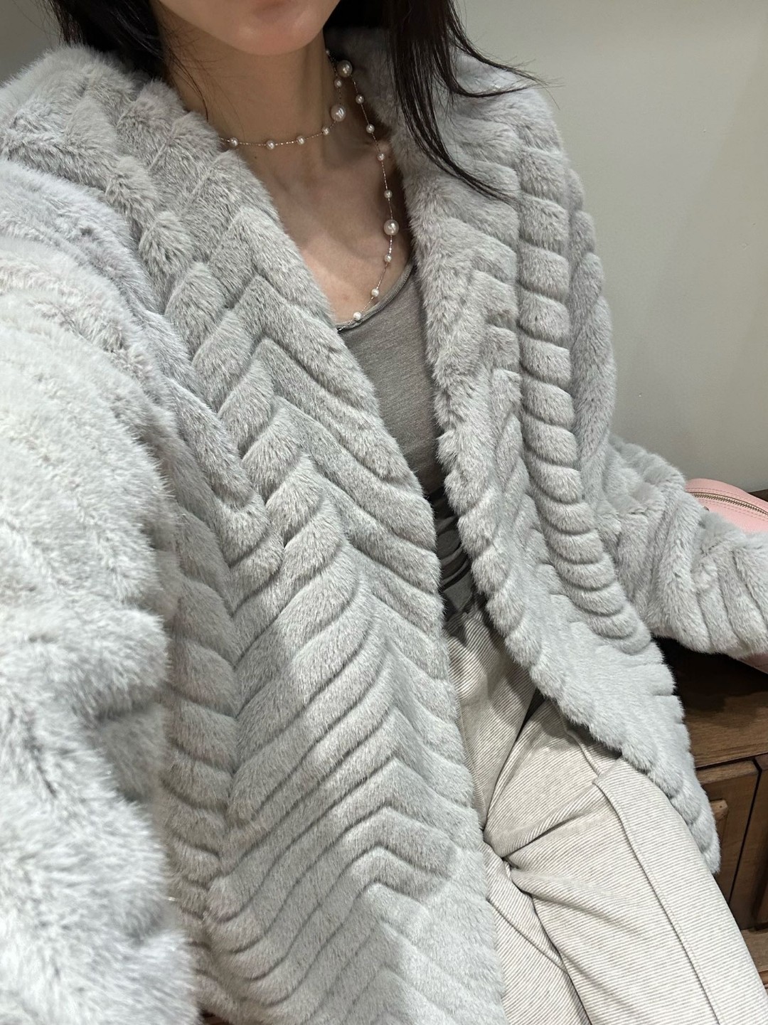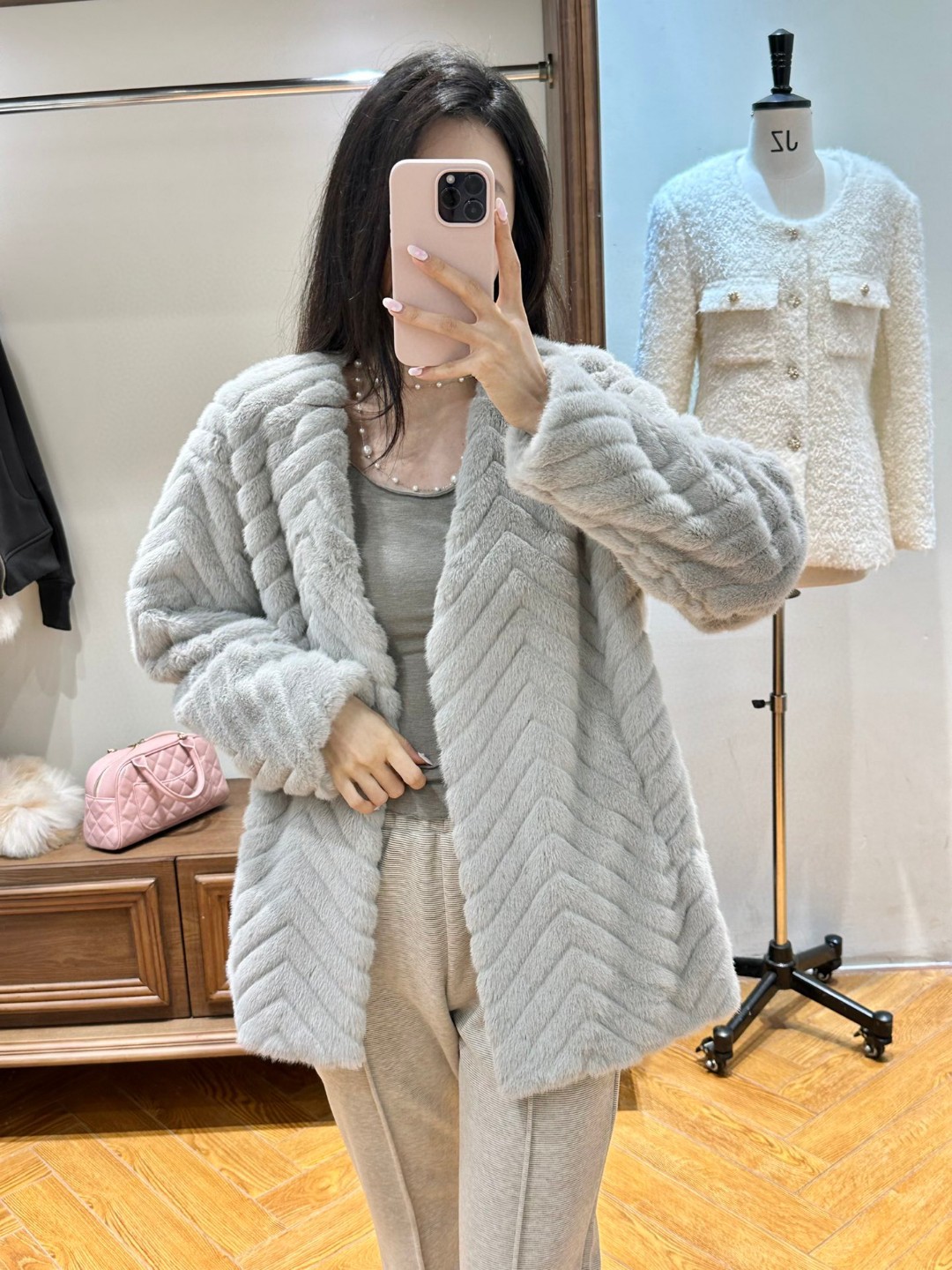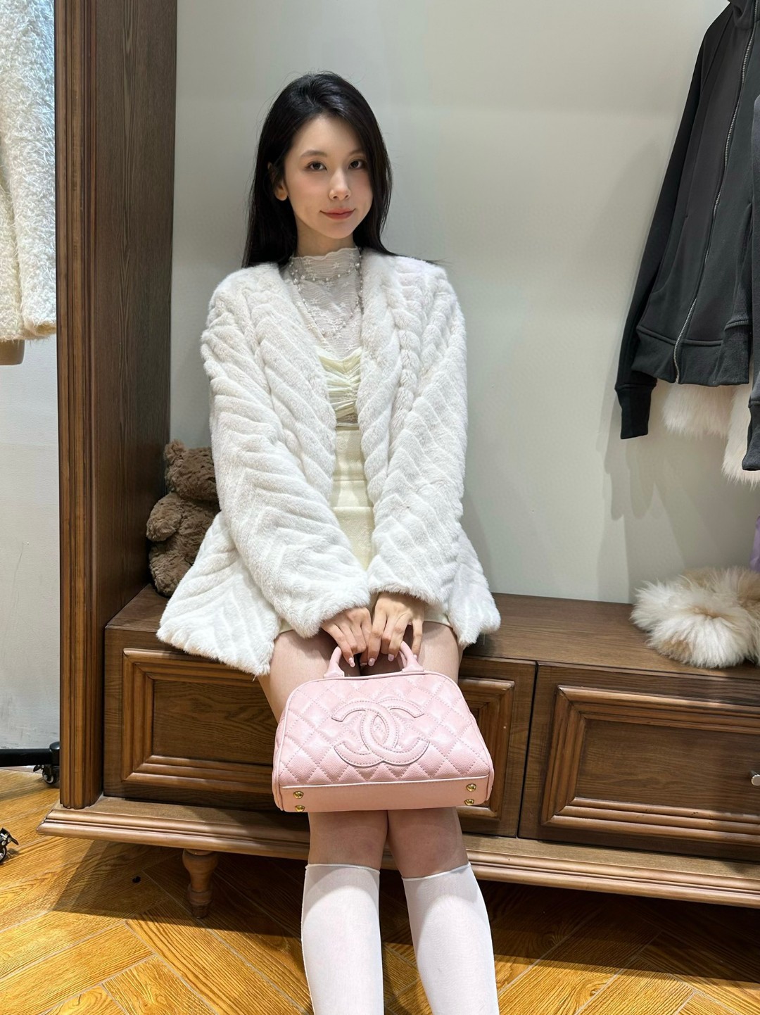 부드러운 화이트 핏 벨트 친환경 모방 밍크 헤어 슬림 V-넥 겨울 올 매치 모피 코트 여성용 2024 겨울복스토어 가기