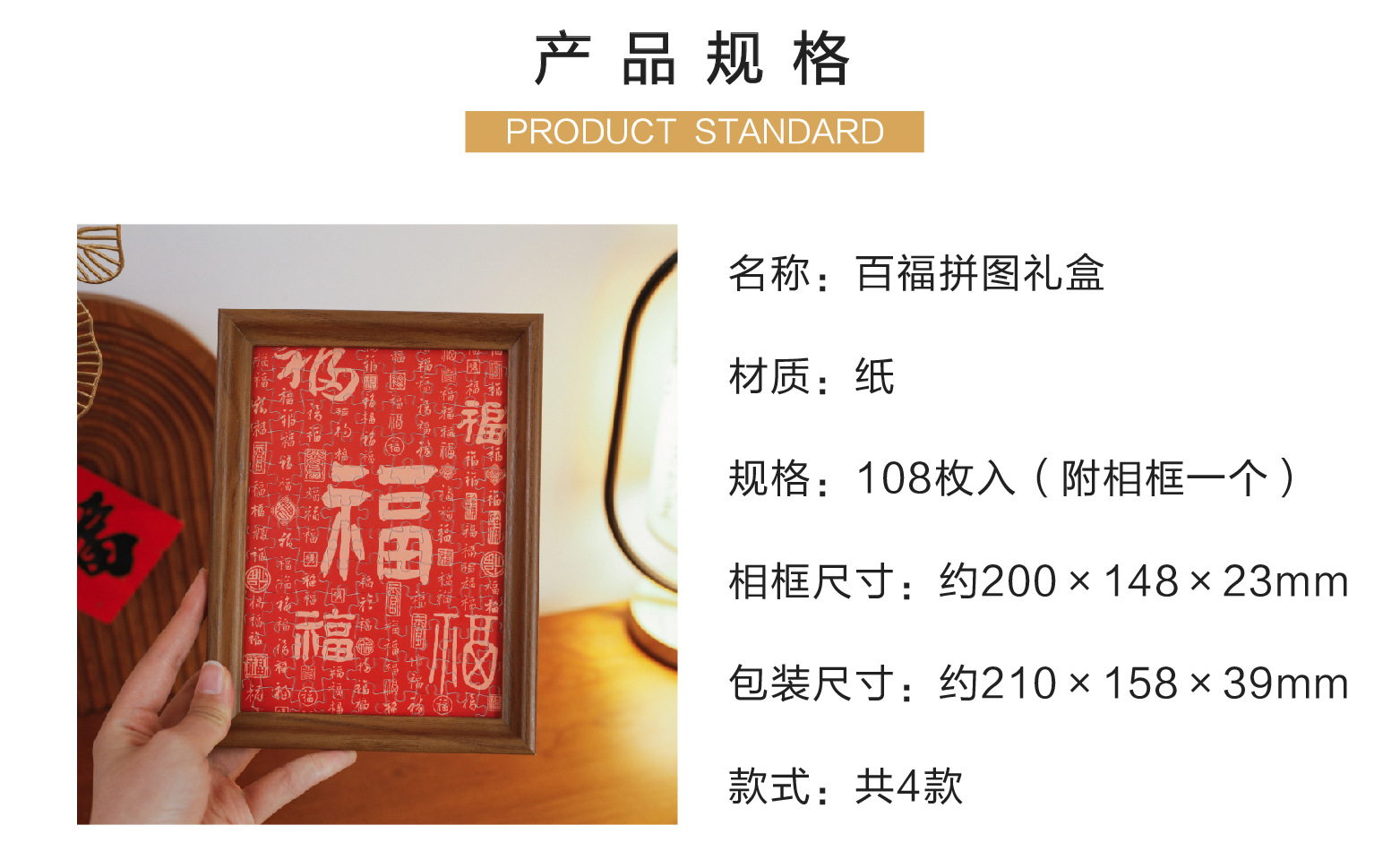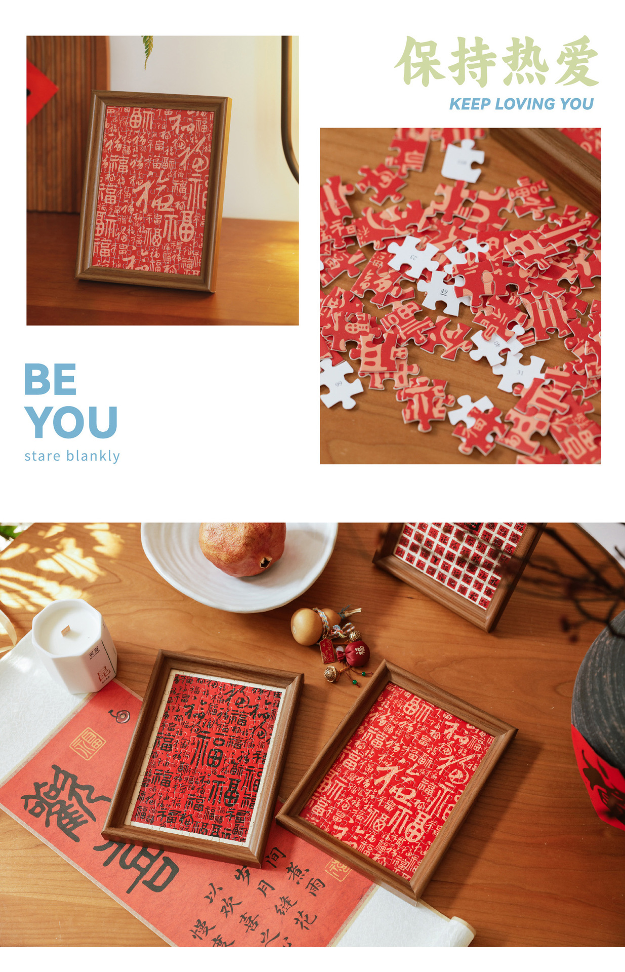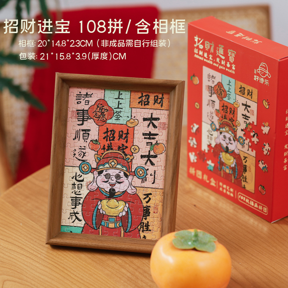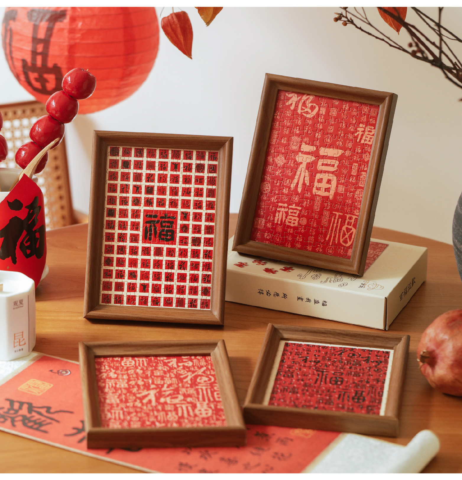 액자 사진 프레임 중국 스타일 서예 DIY 새해 선물 바탕 화면 장식품으로 바이푸 린먼 퍼즐 선물 상자 세트