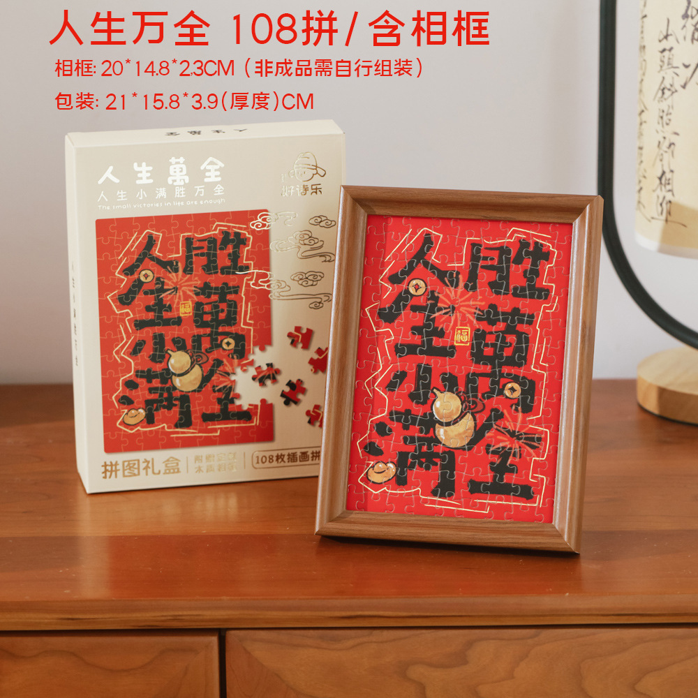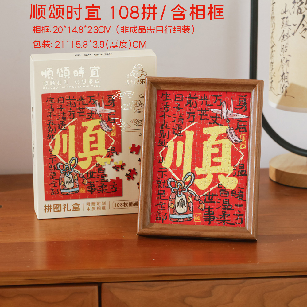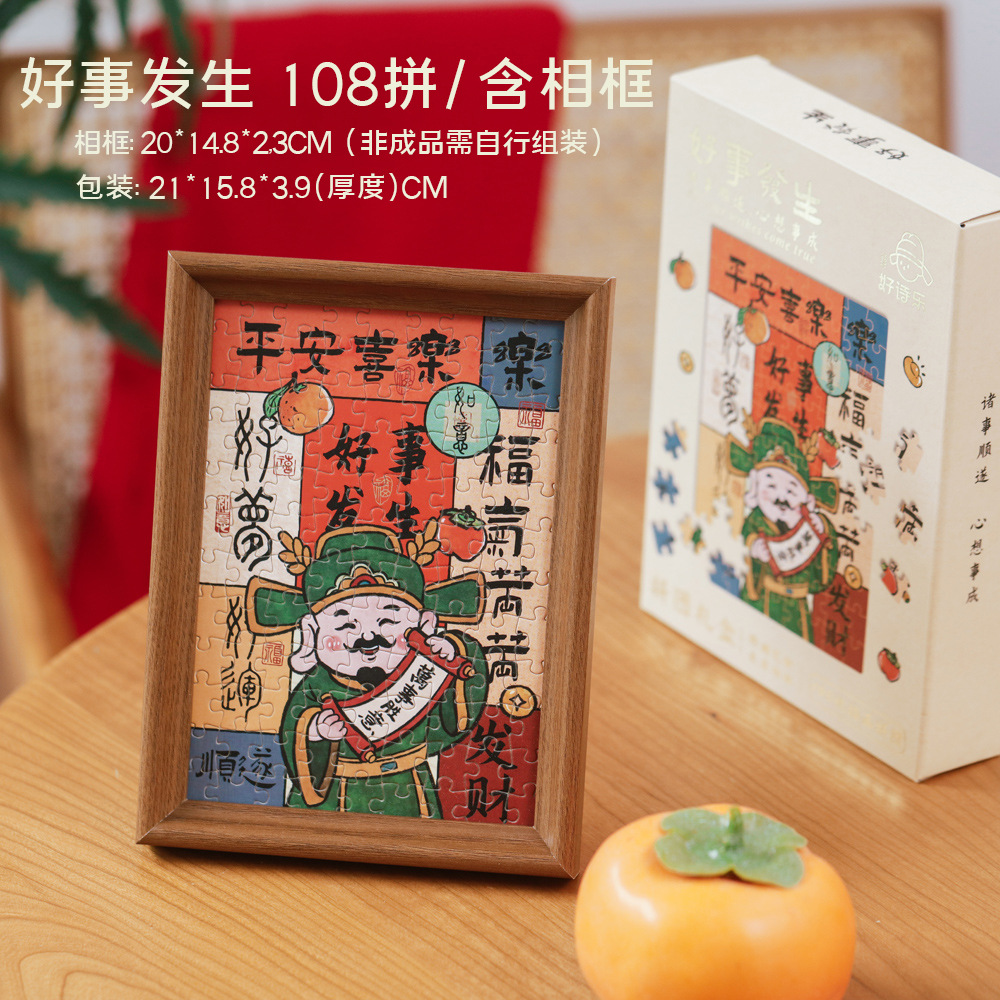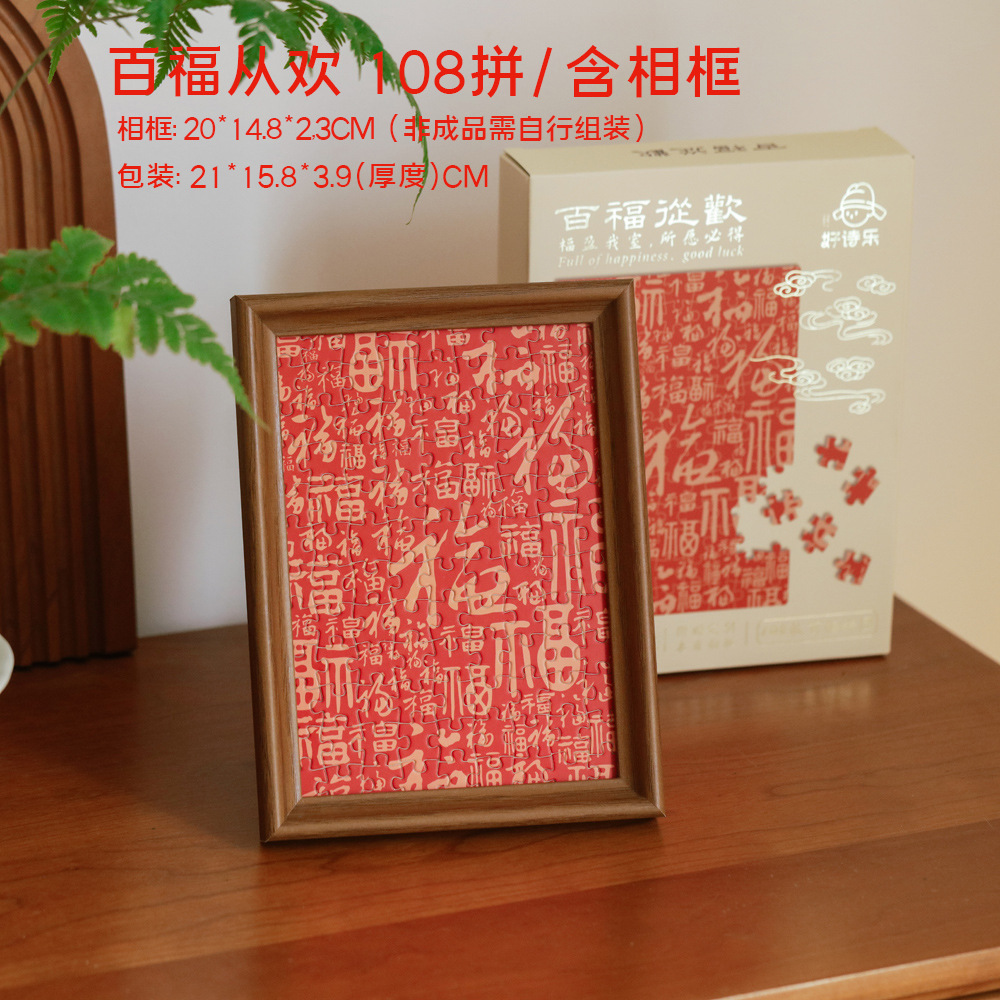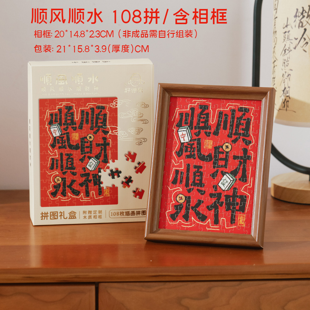 액자 사진 프레임 중국 스타일 서예 DIY 새해 선물 바탕 화면 장식품으로 바이푸 린먼 퍼즐 선물 상자 세트스토어 가기