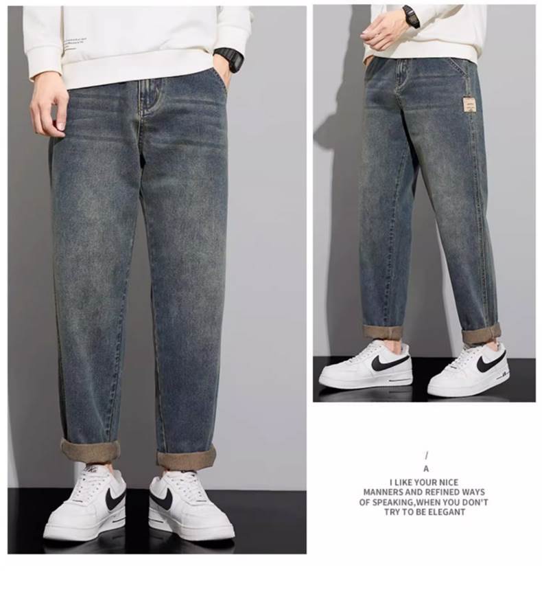 청바지 남성용 스트레이트 루즈 2024 가을과 겨울 트렌디 브랜드 아메리칸 스타일 레트로 테이퍼 캐주얼 남성용 트렌디 긴 바지스토어 가기