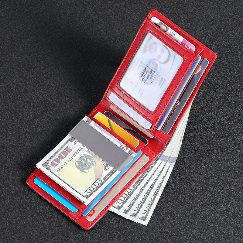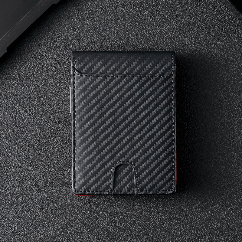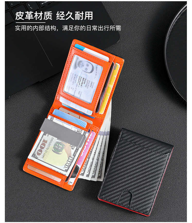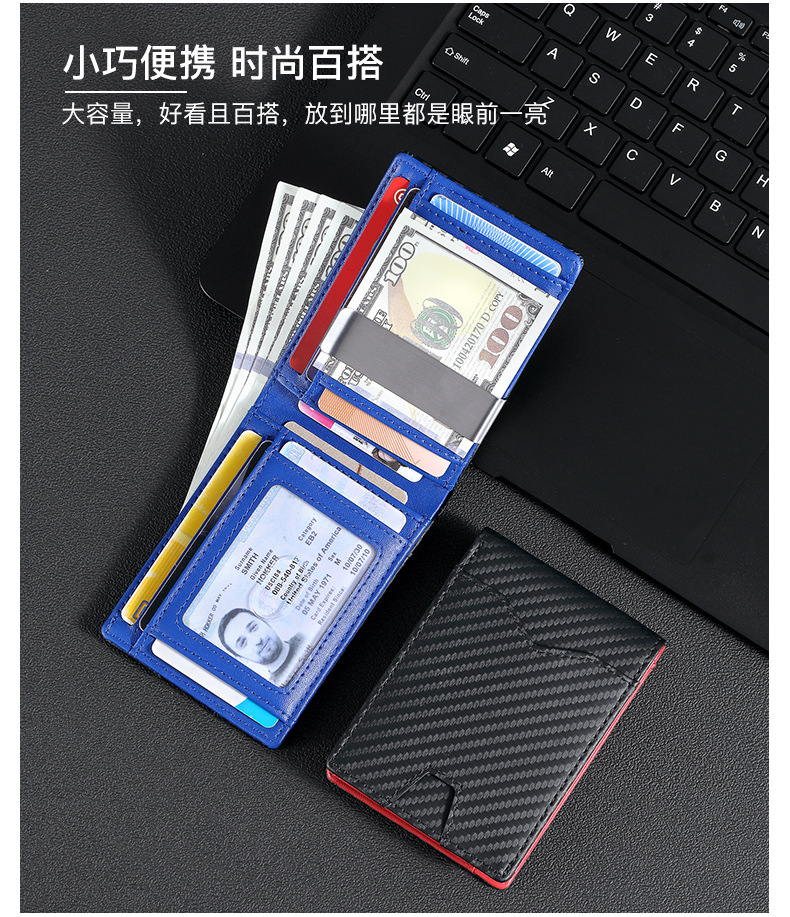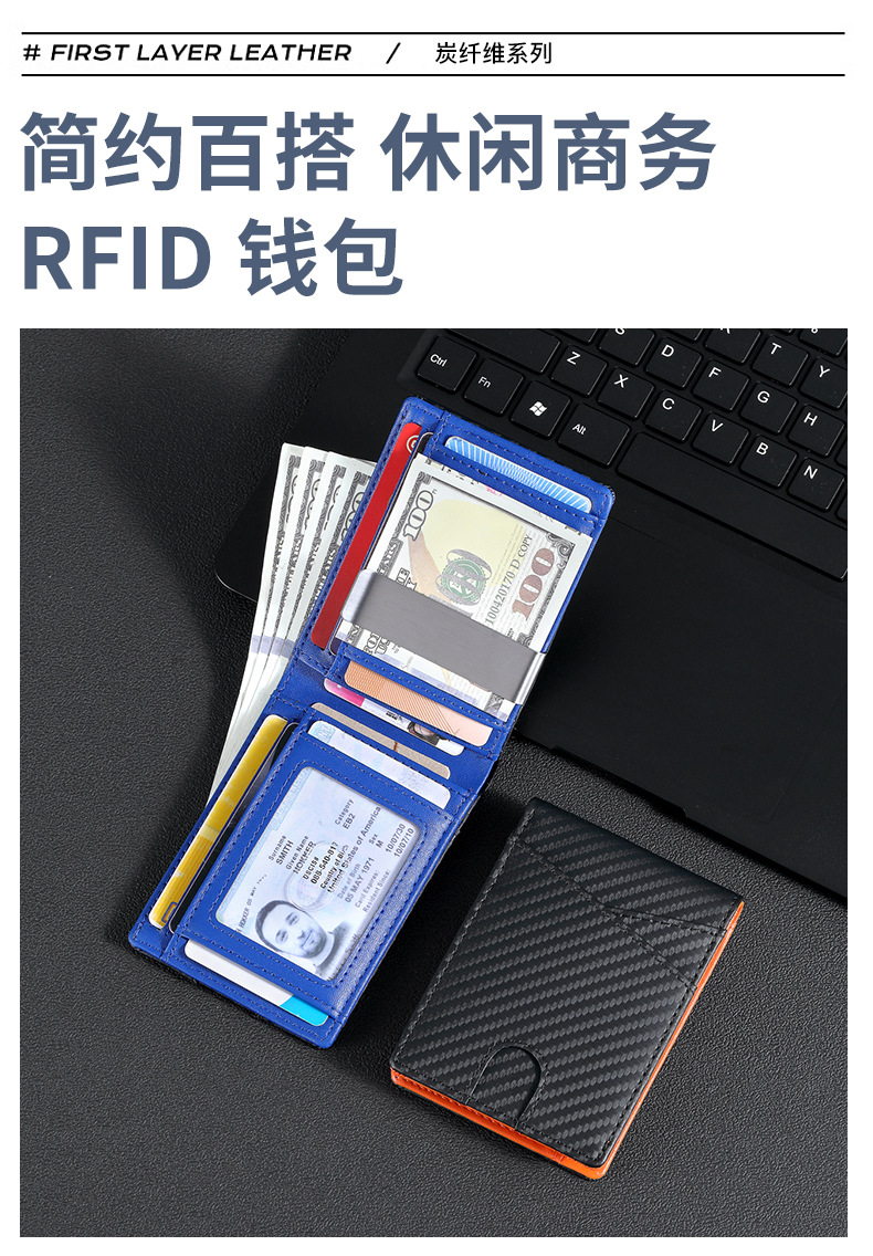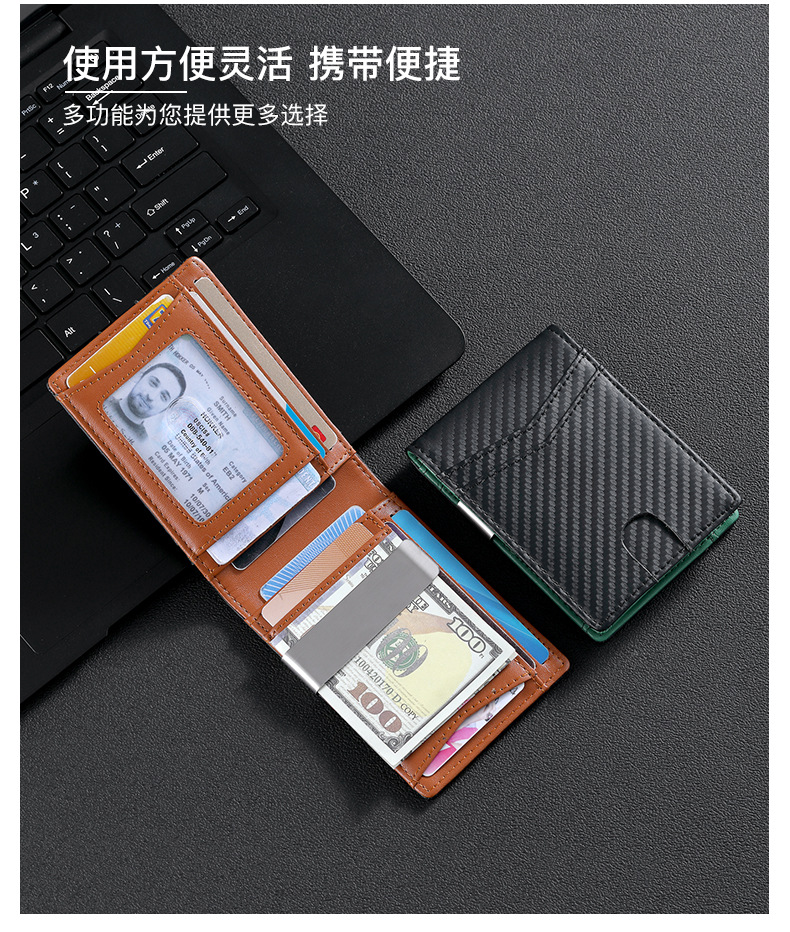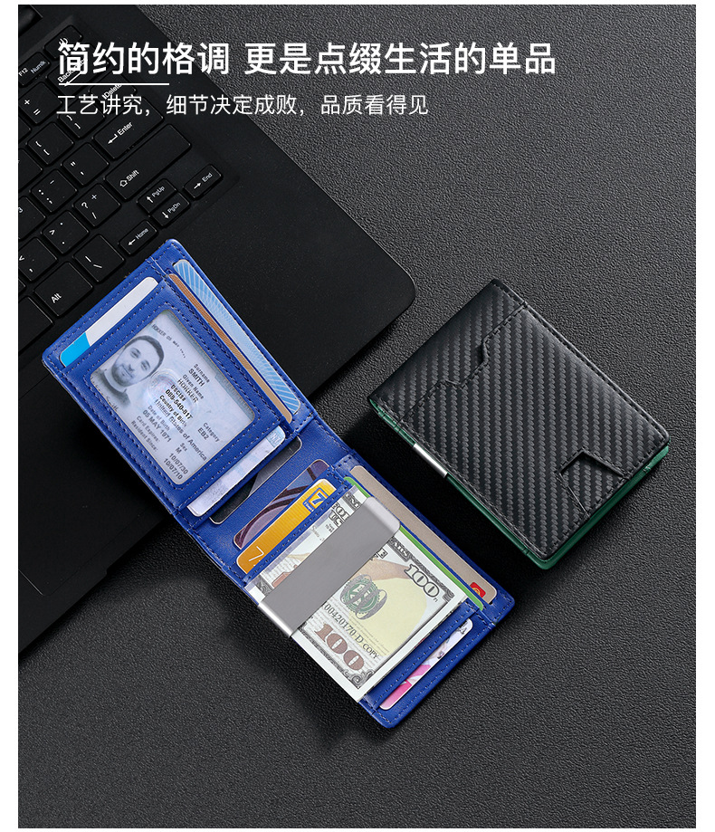 탄소 섬유 지갑 가죽 지갑 유럽과 미국 남성 지갑 rfid 달러 돈 가방 골드 클립 지갑 로고 그림