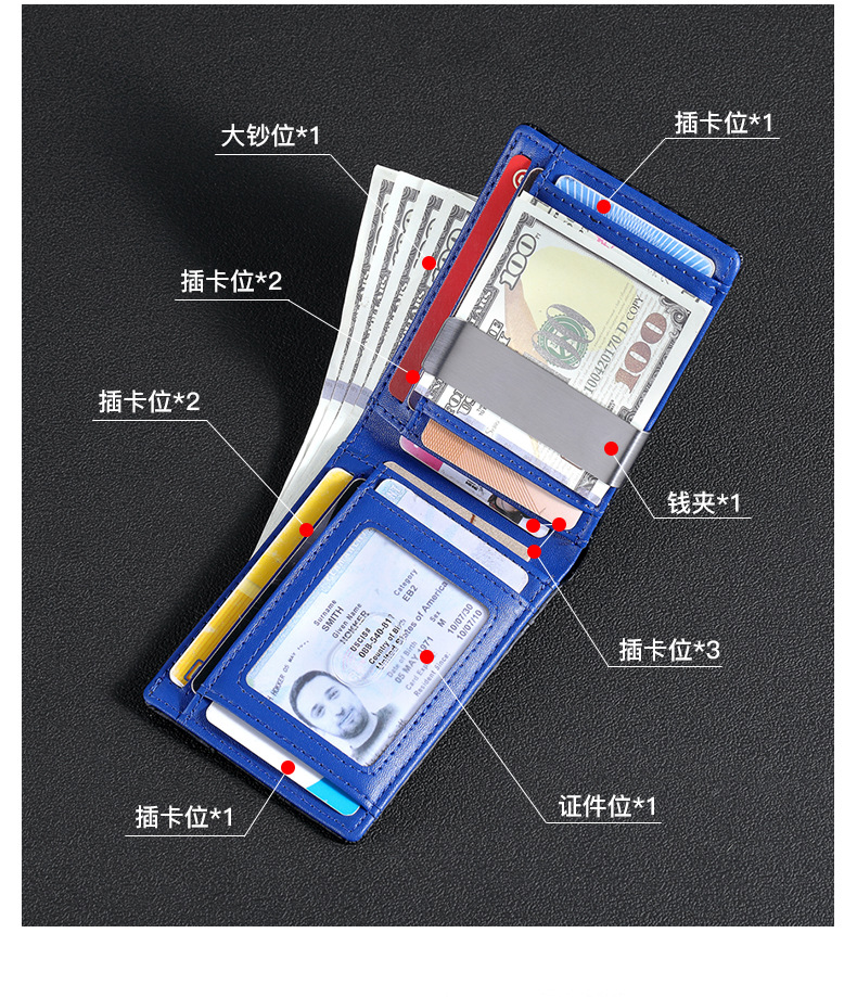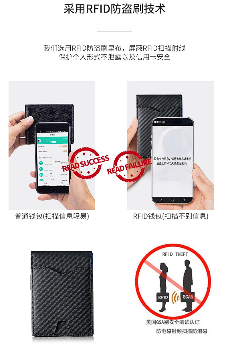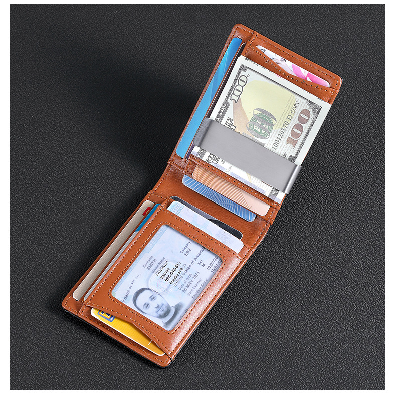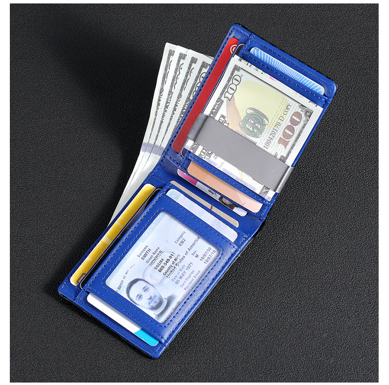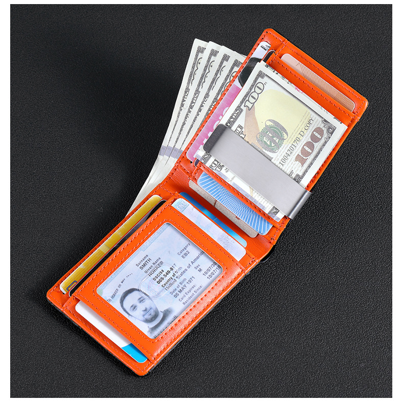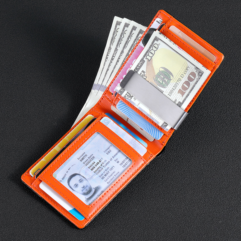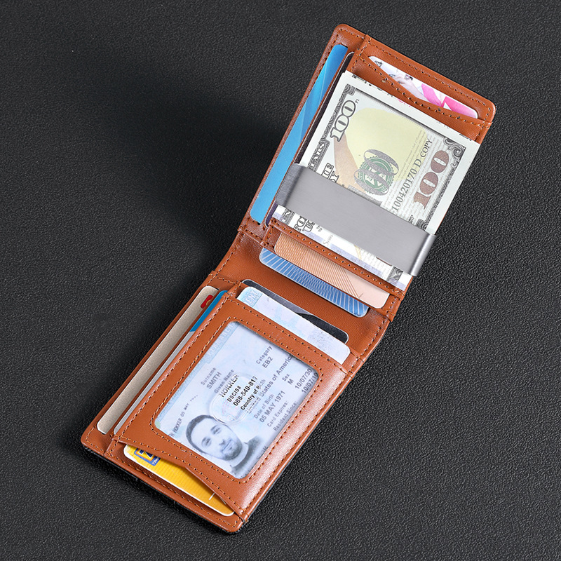 탄소 섬유 지갑 가죽 지갑 유럽과 미국 남성 지갑 rfid 달러 돈 가방 골드 클립 지갑 로고 그림