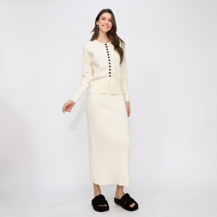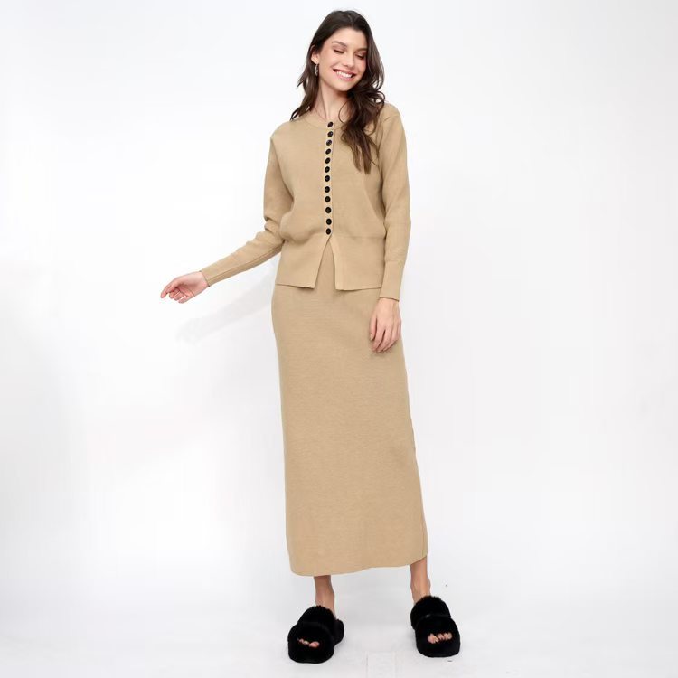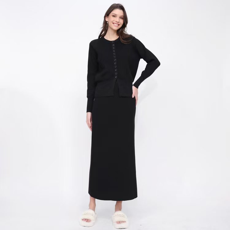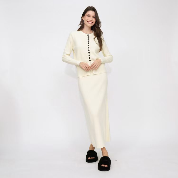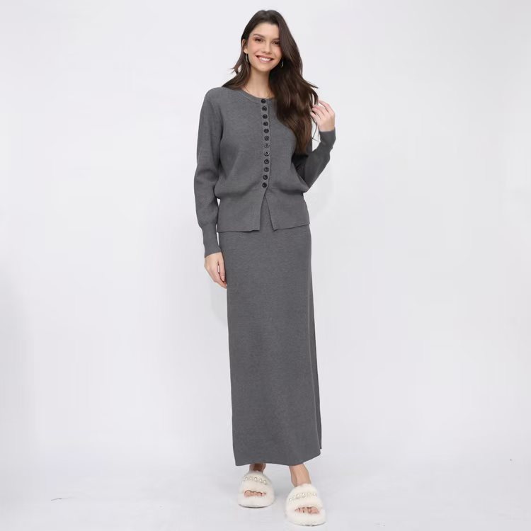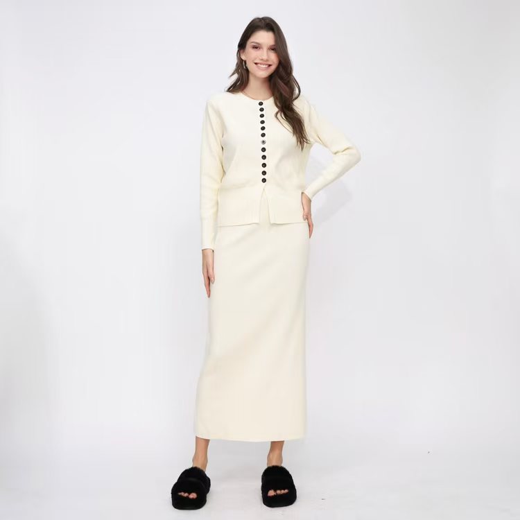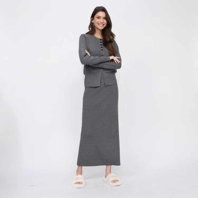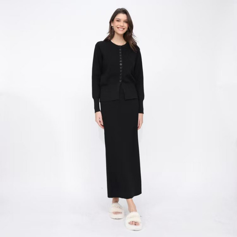 유럽 역 가을과 겨울 Xiaoxiang Cardigan 스커트 롱 스커트 2 피스 니트 스웨터 스커트는 완벽한 세트를 입고스토어 가기