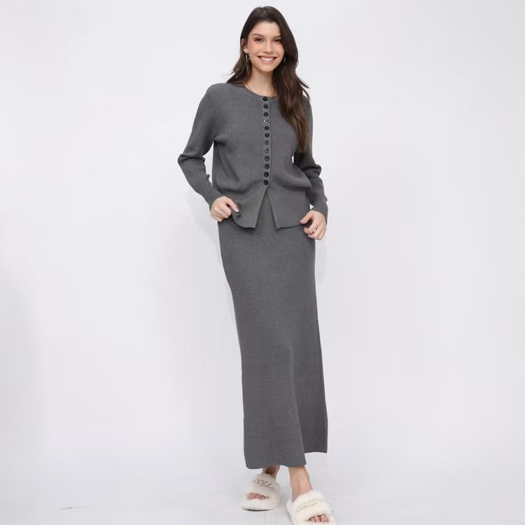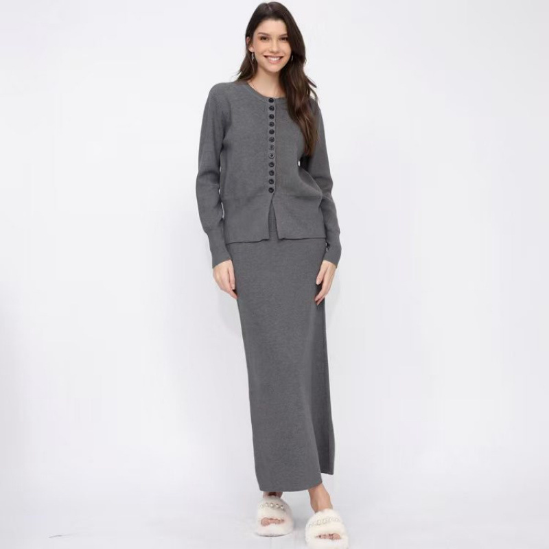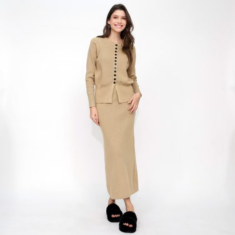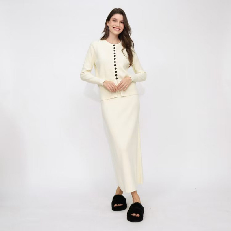 유럽 역 가을과 겨울 Xiaoxiang Cardigan 스커트 롱 스커트 2 피스 니트 스웨터 스커트는 완벽한 세트를 입고
